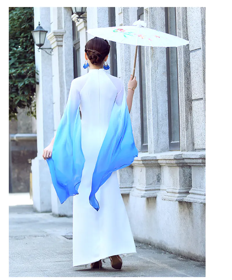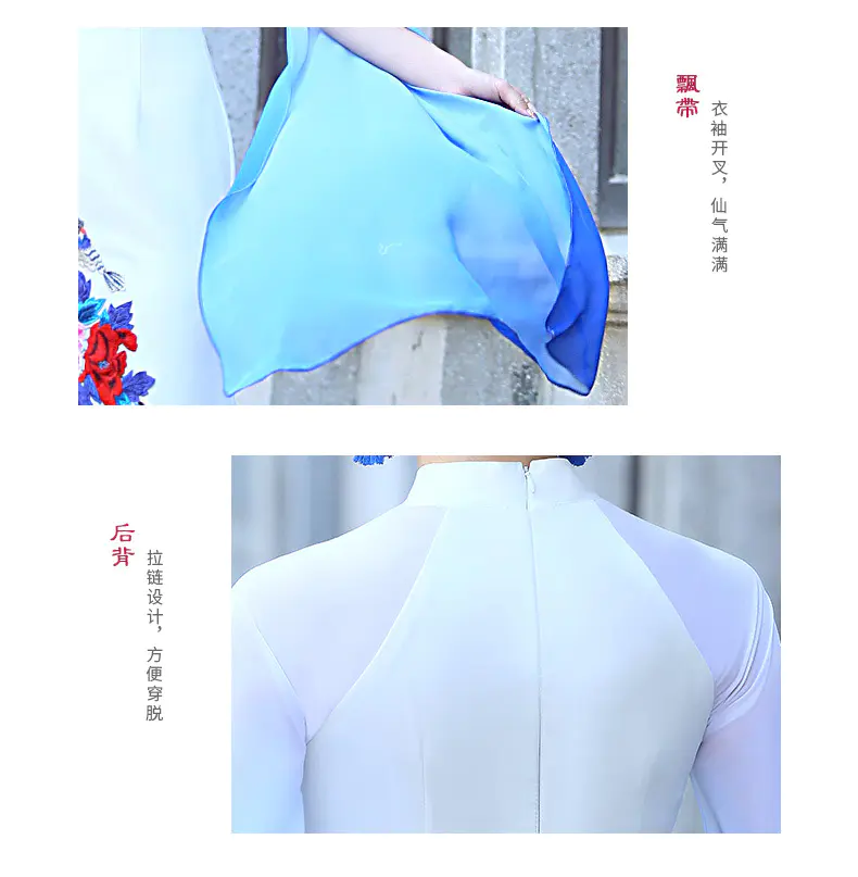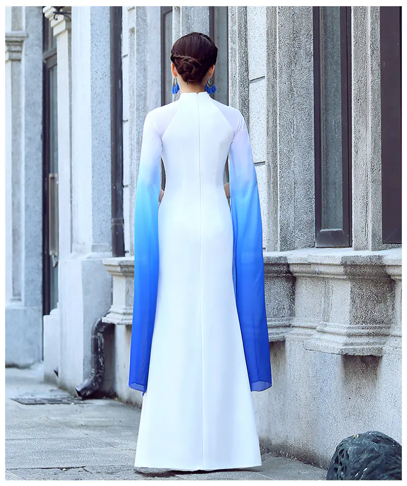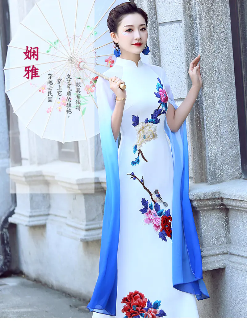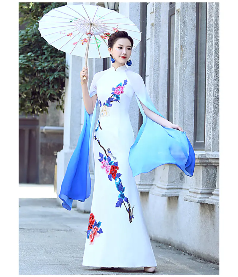 CJH-1221走秀复古优雅中国风大气舞台表演改良版演出服长款旗袍连衣裙