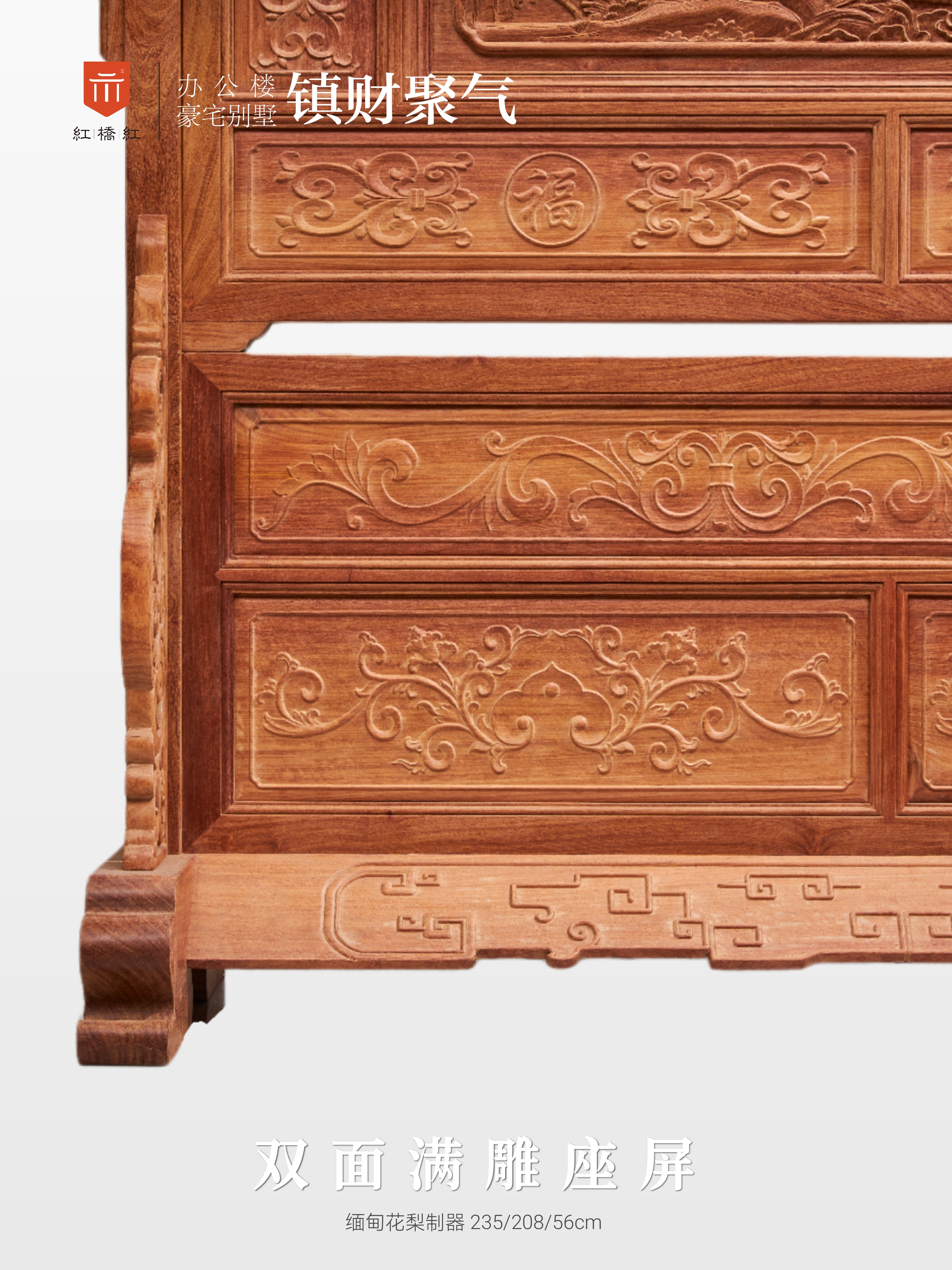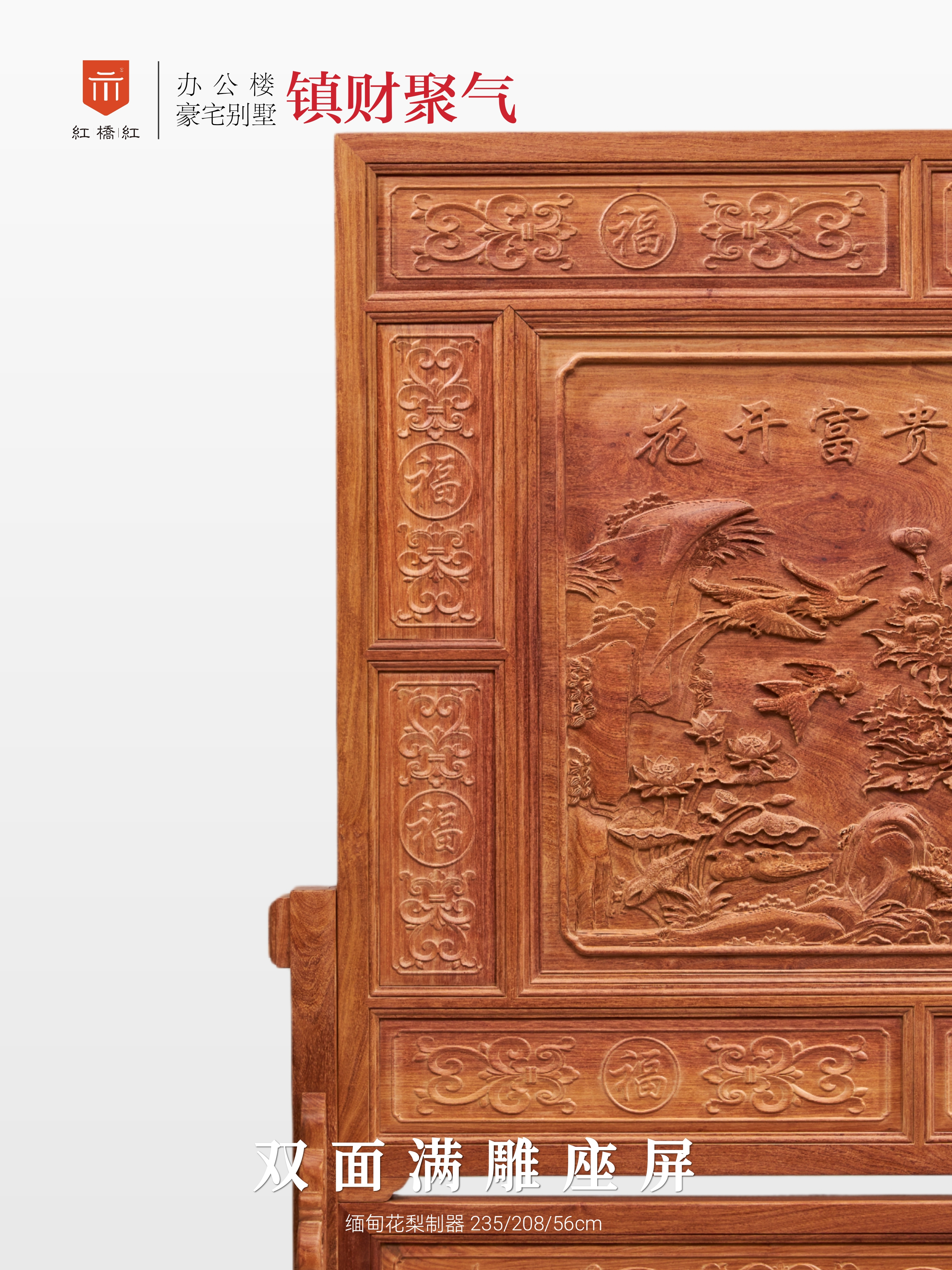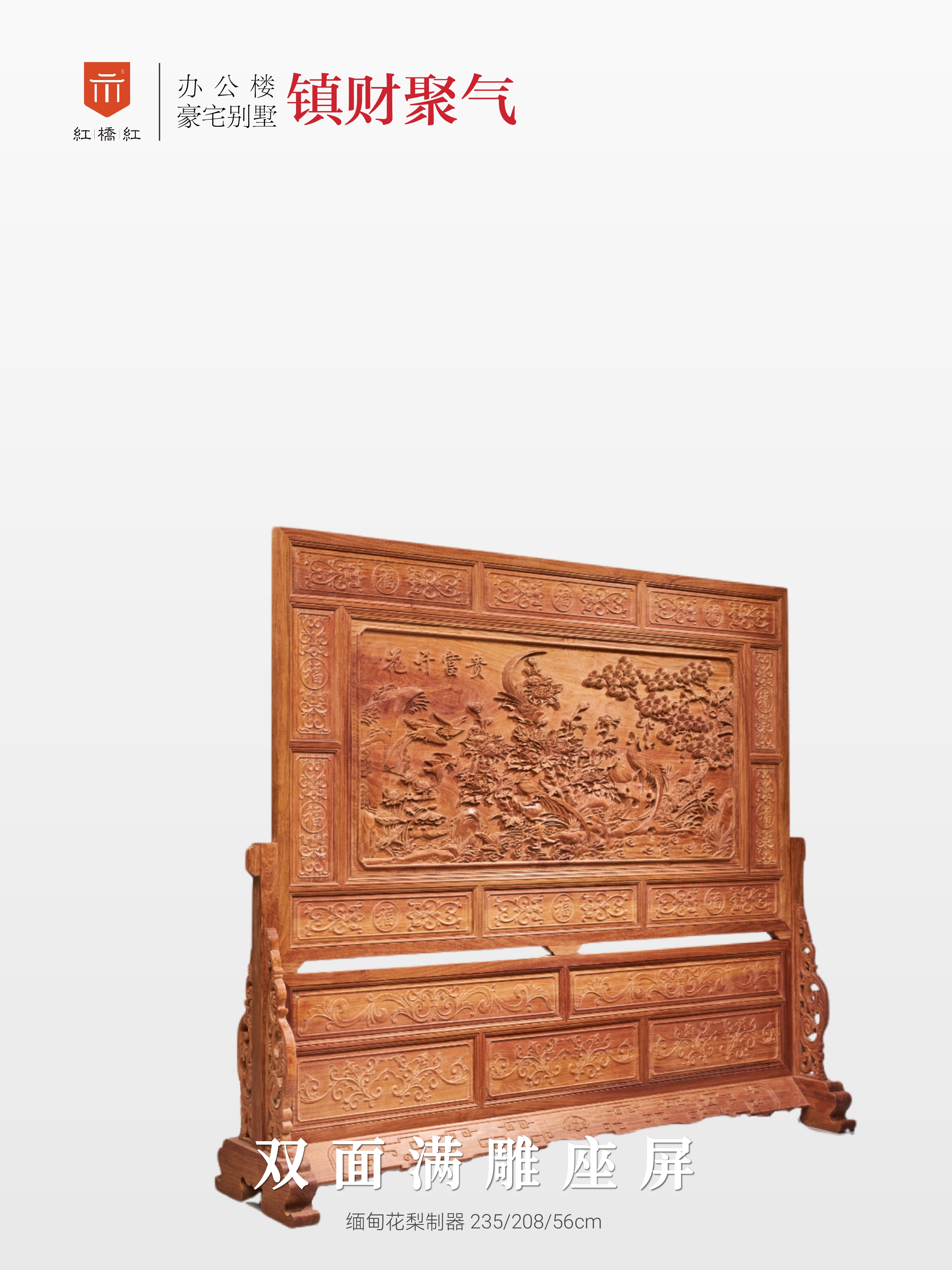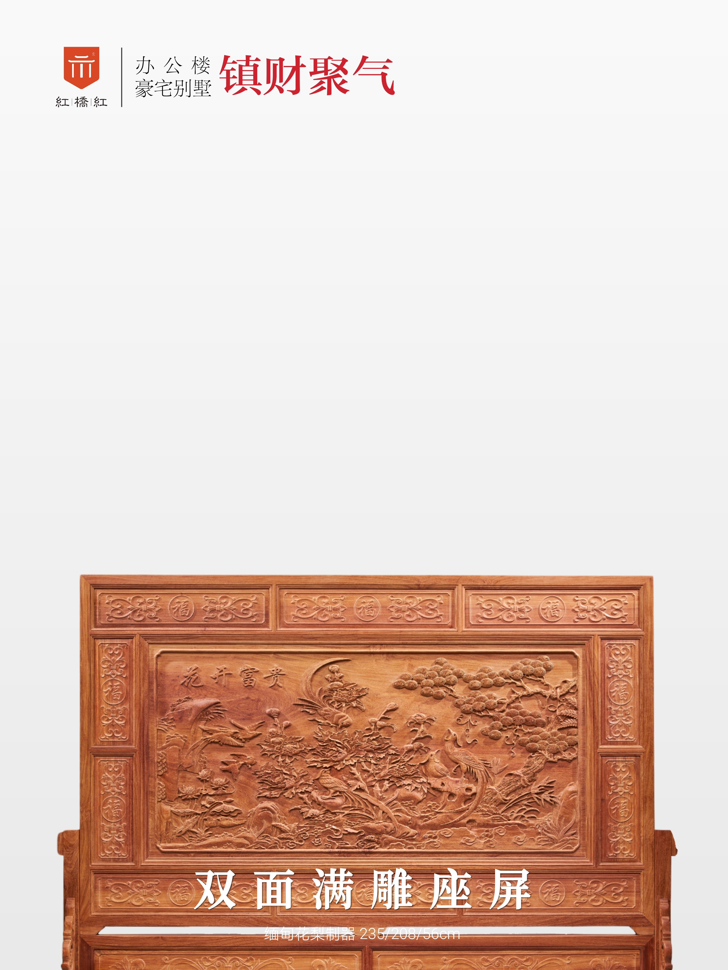 此款清式双面满雕大座屏,巨制重器,高浮雕,工甚靡,吉祥纹饰满布,镇宅藏风,气派非凡。