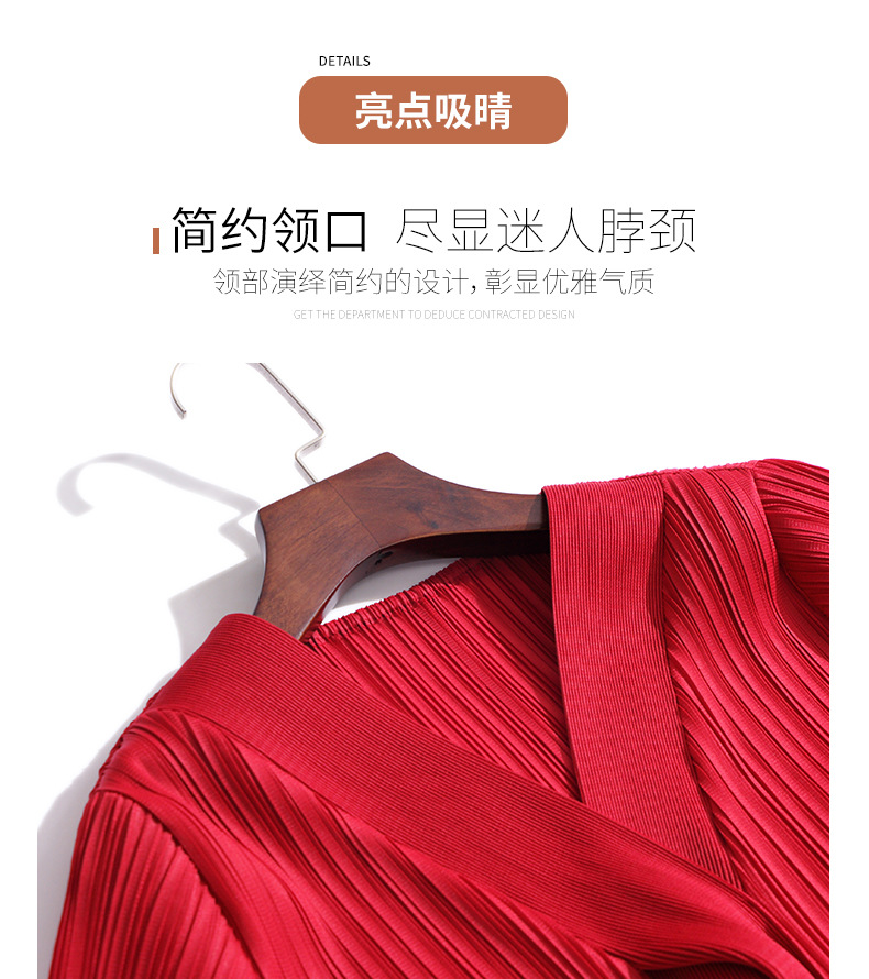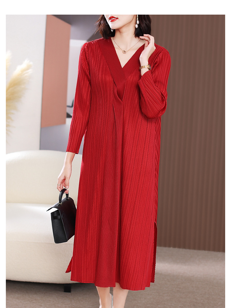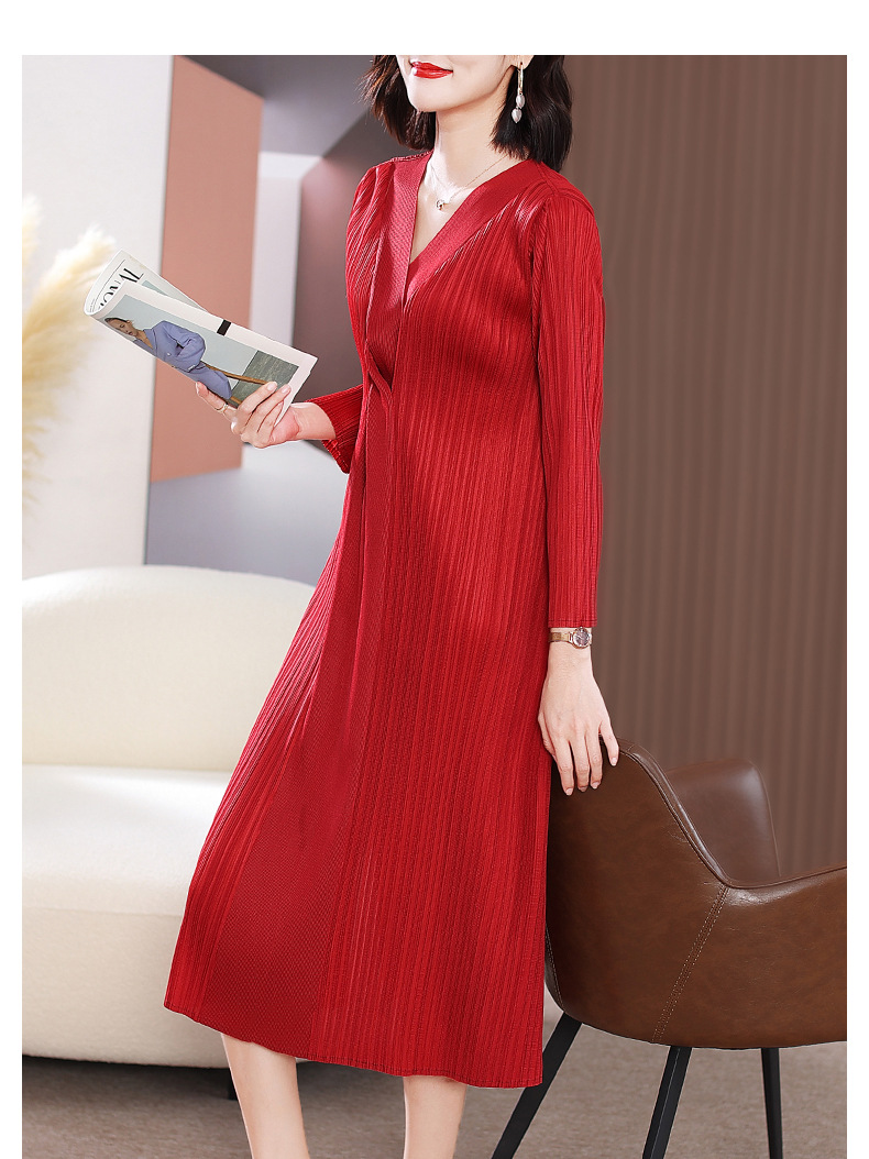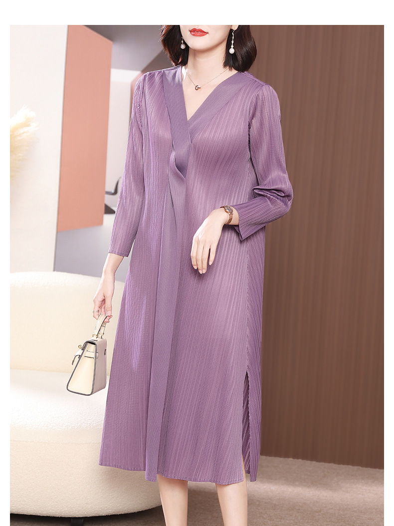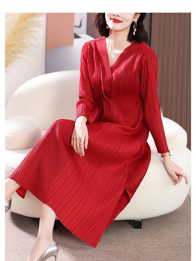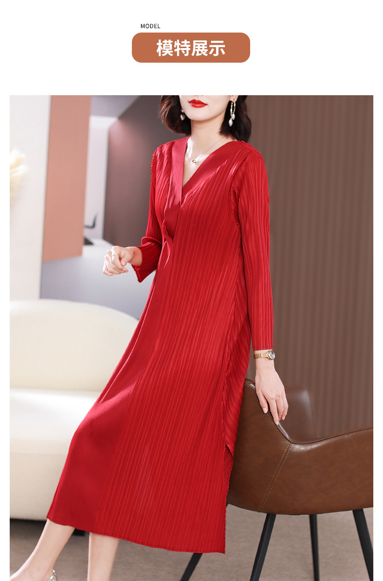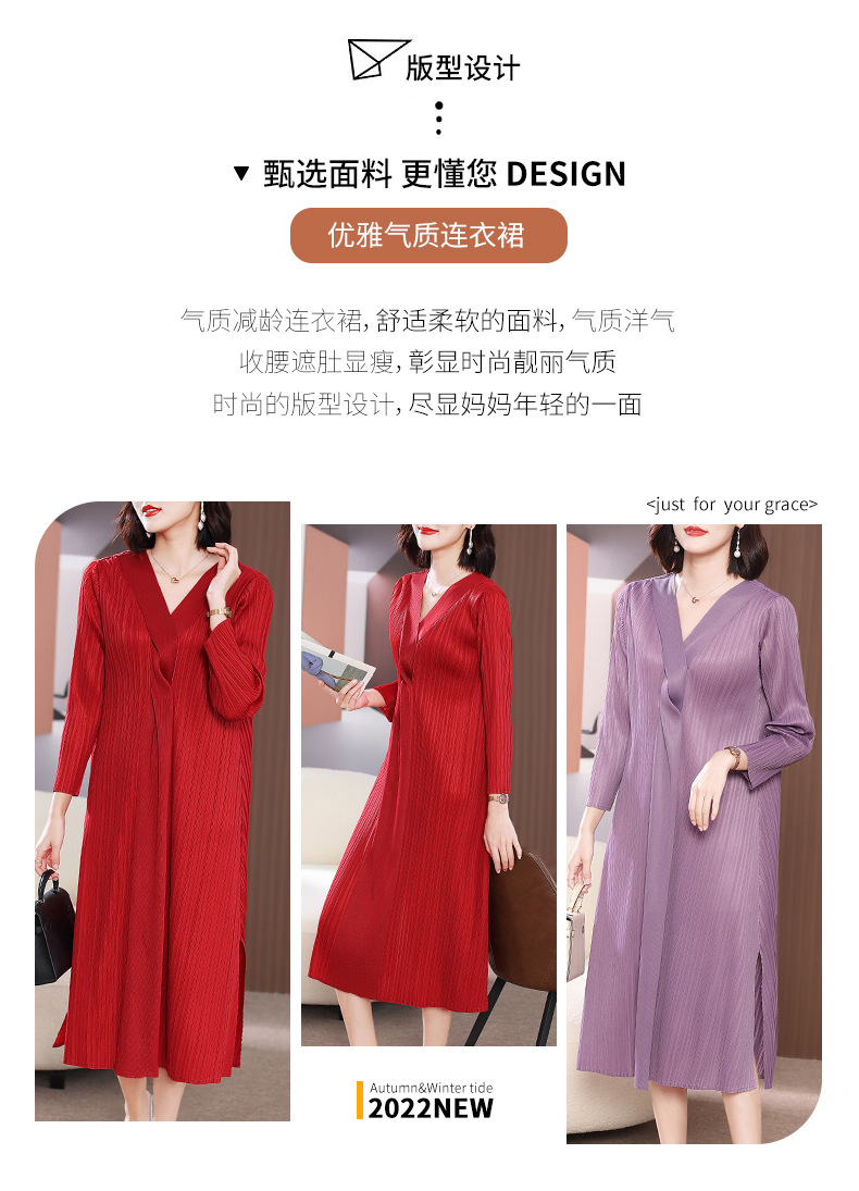 XSL-E4191 高端褶皱气质V领连衣裙2023春装新款时尚妈妈装显瘦胖mm大码女装