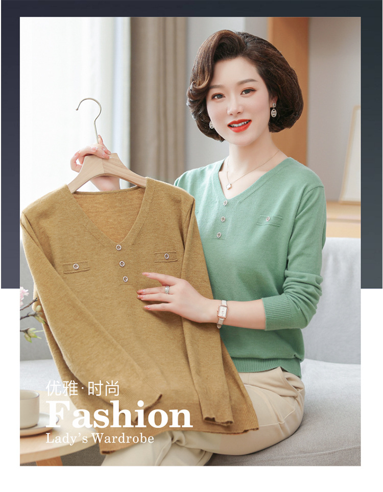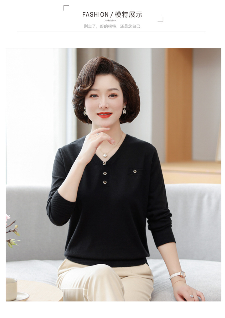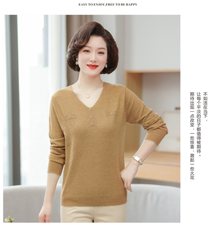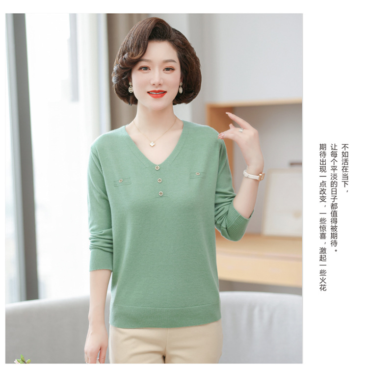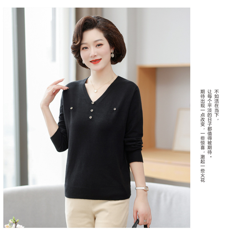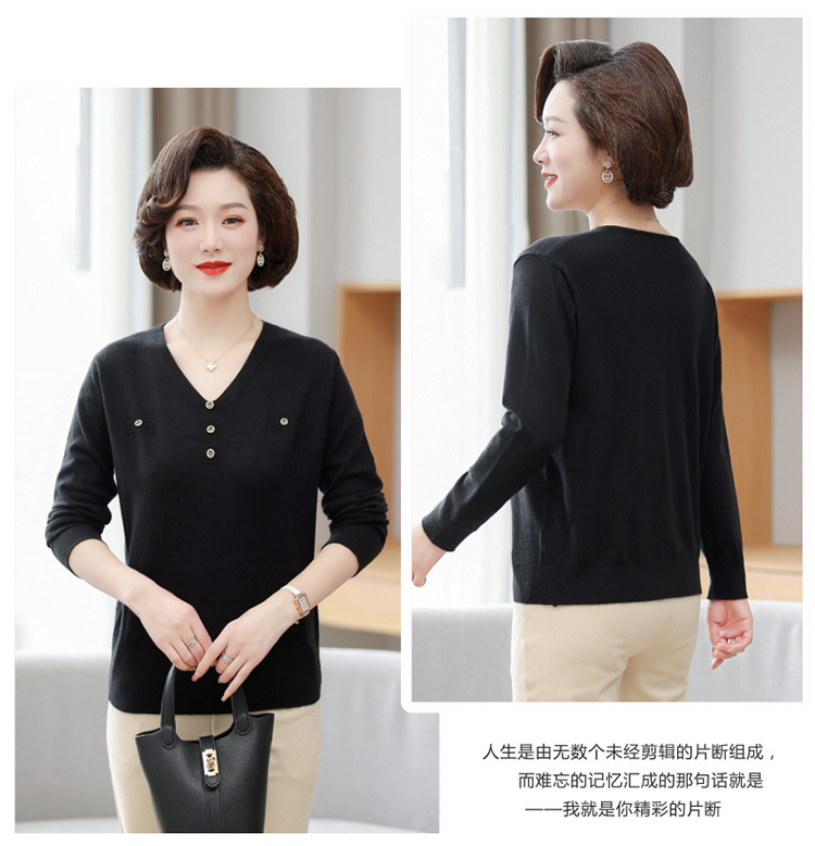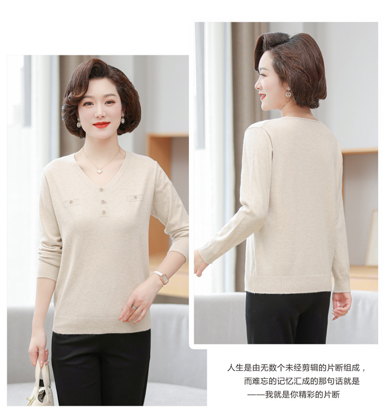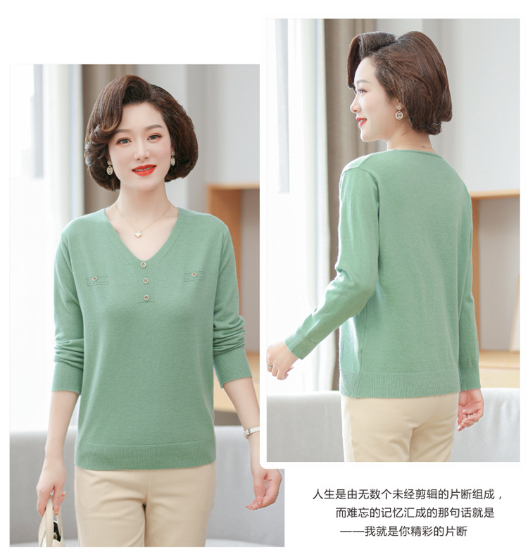 LY1232中年女装V领毛衣薄妈妈装春装套头针织衫中老年人打底衫宽松休闲