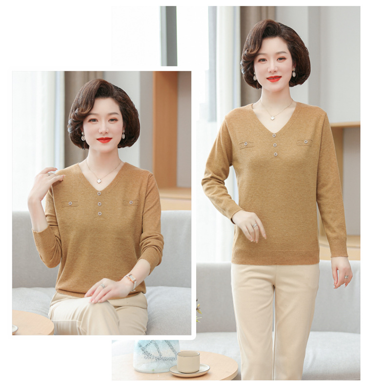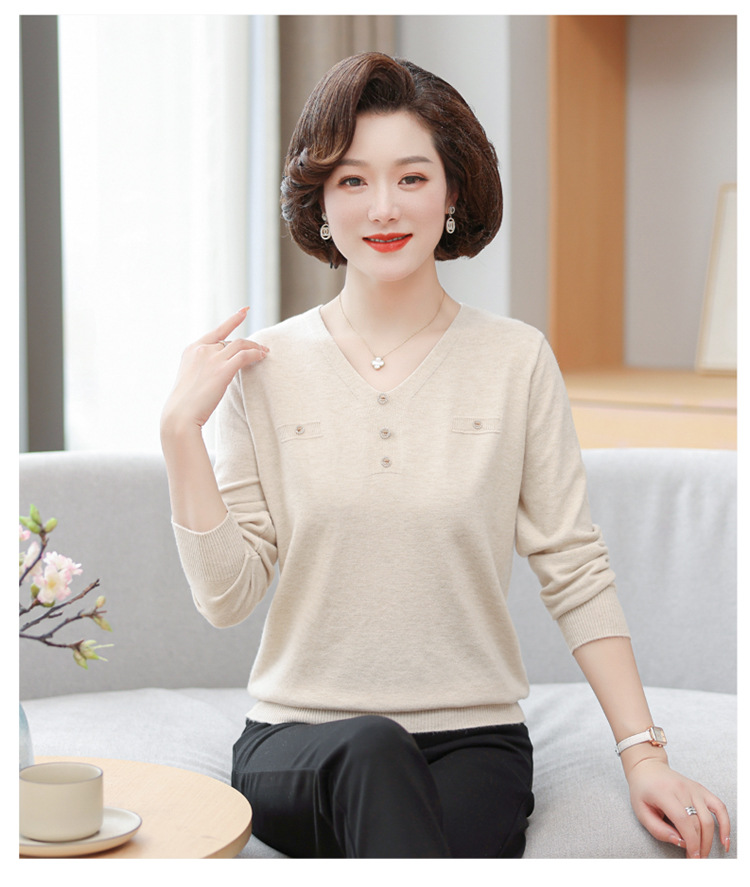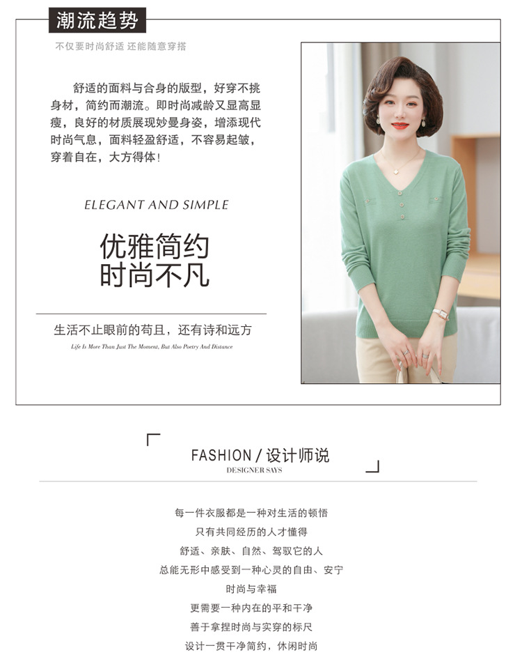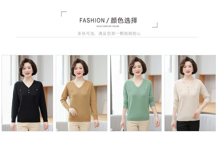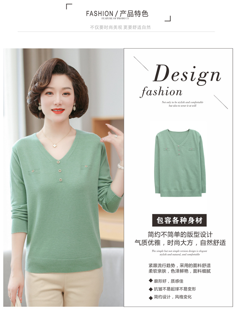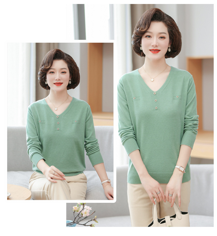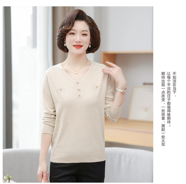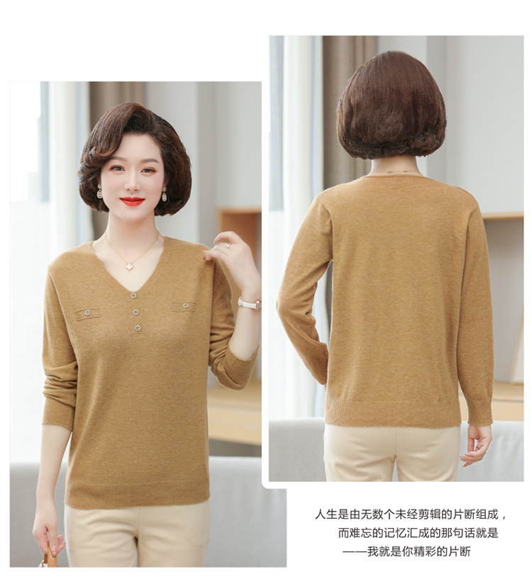 LY1232中年女装V领毛衣薄妈妈装春装套头针织衫中老年人打底衫宽松休闲