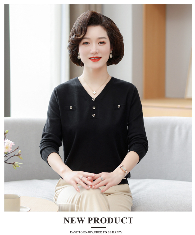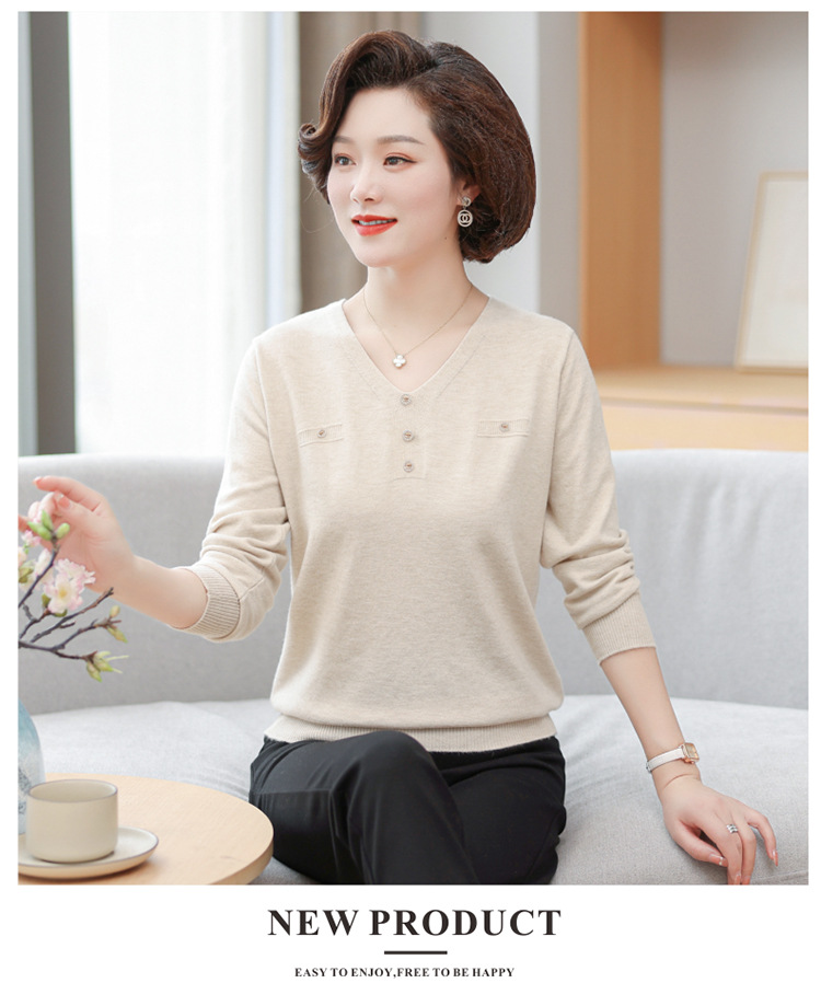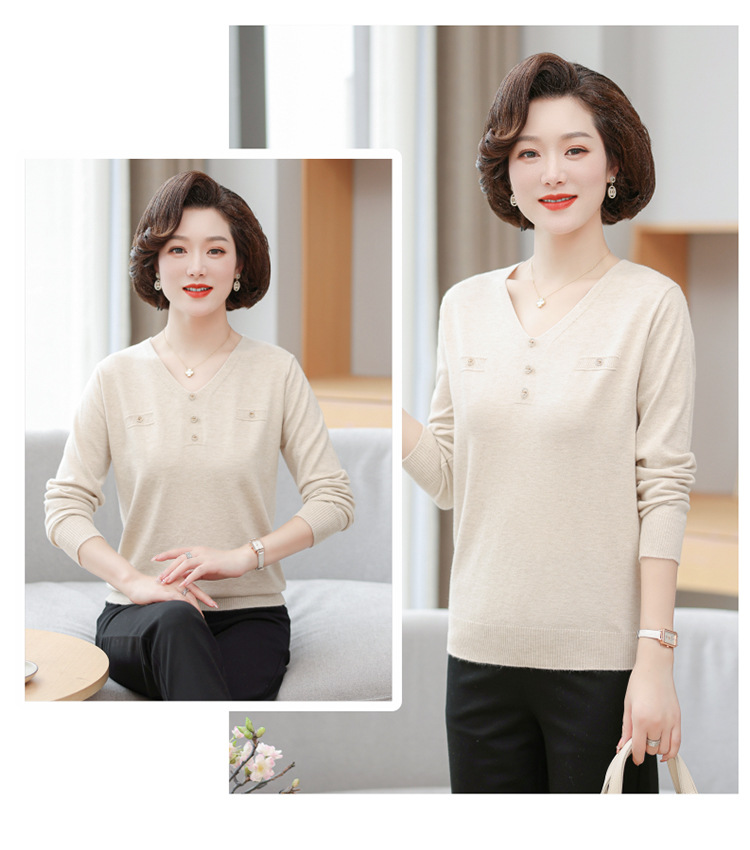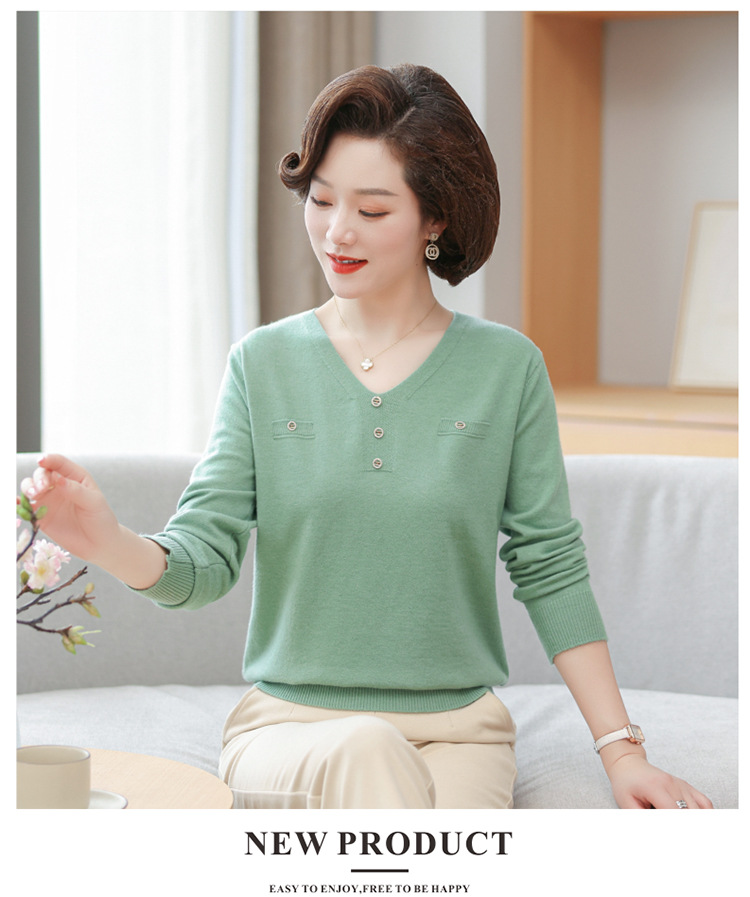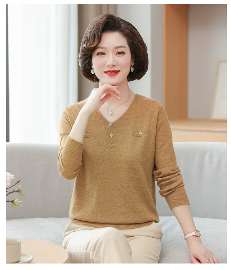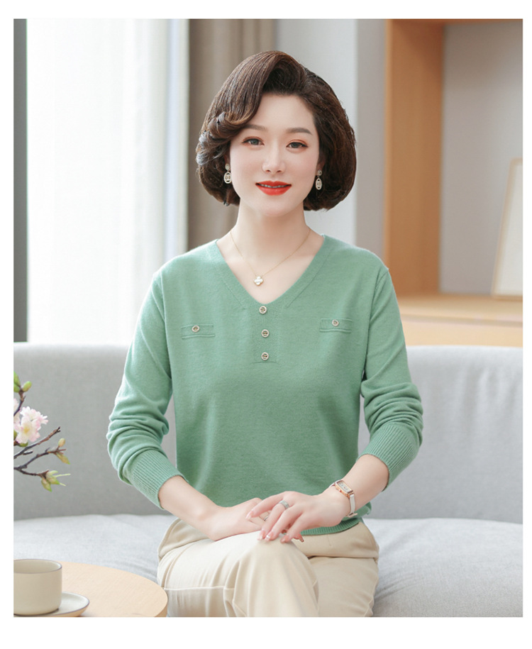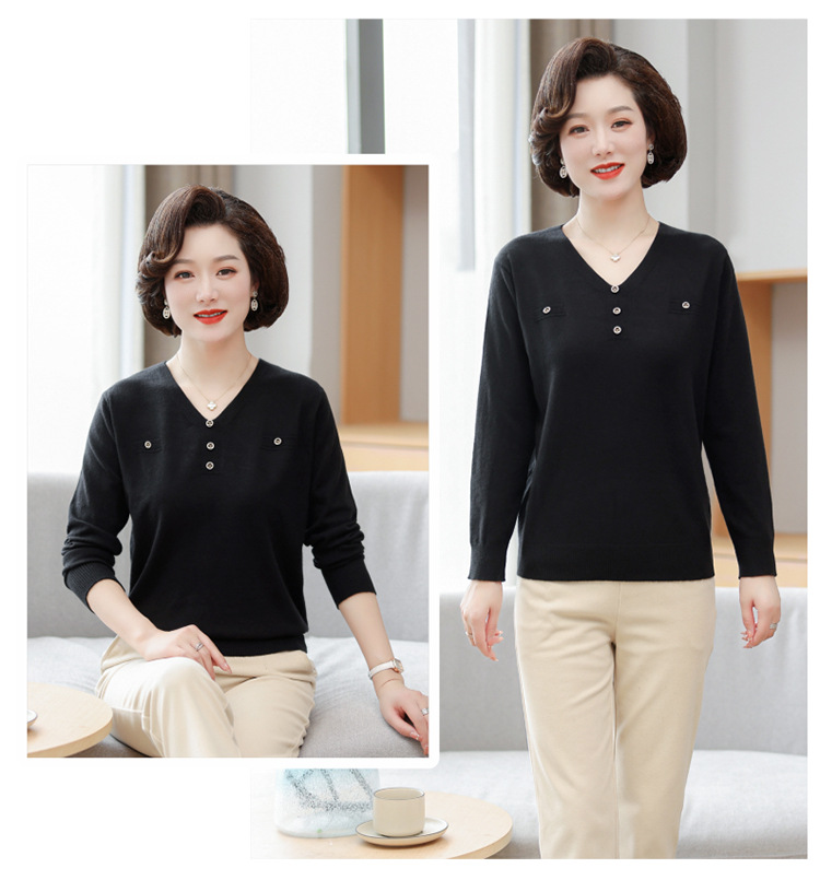 LY1232中年女装V领毛衣薄妈妈装春装套头针织衫中老年人打底衫宽松休闲