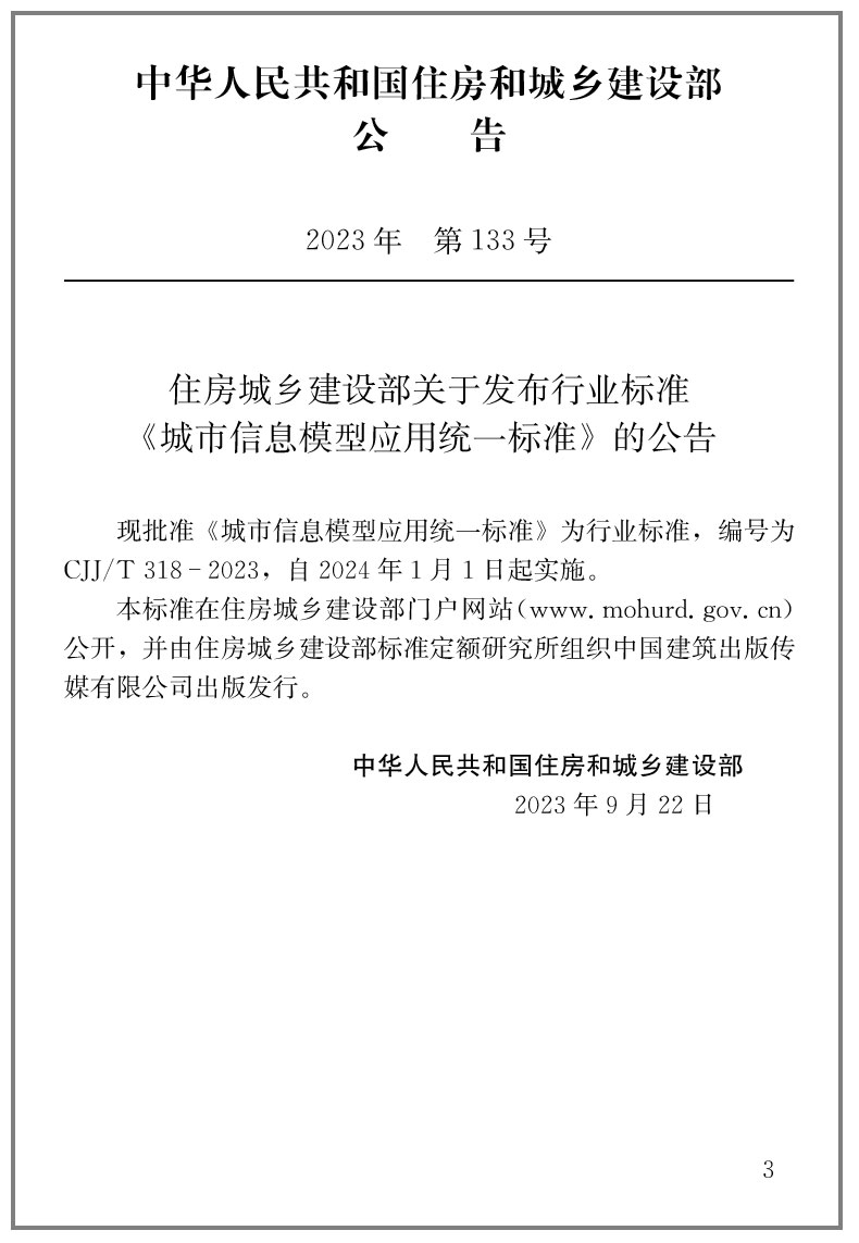 书名:城市信息模型应用统一标准 CJJ/T318-2023