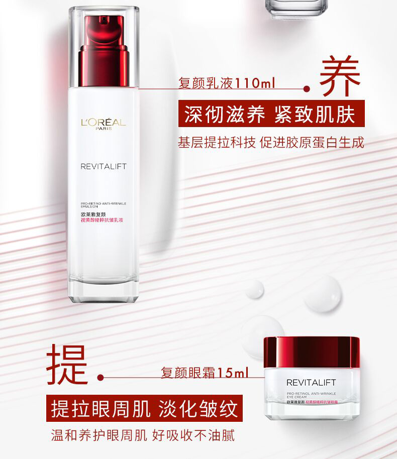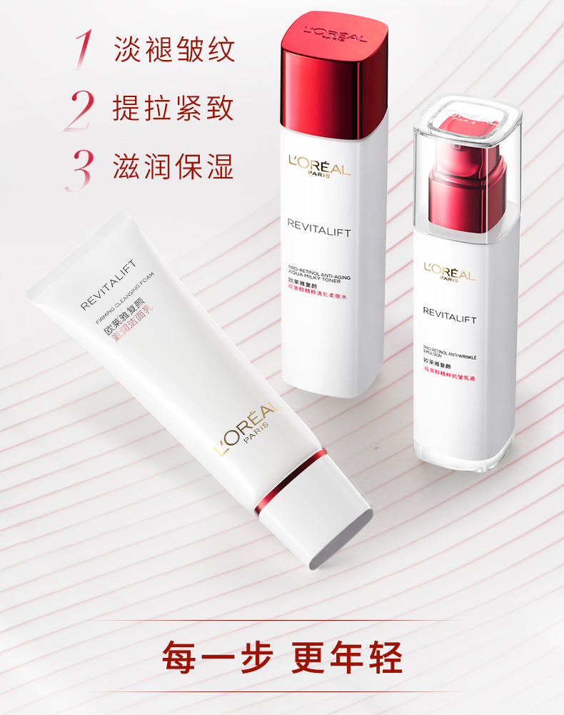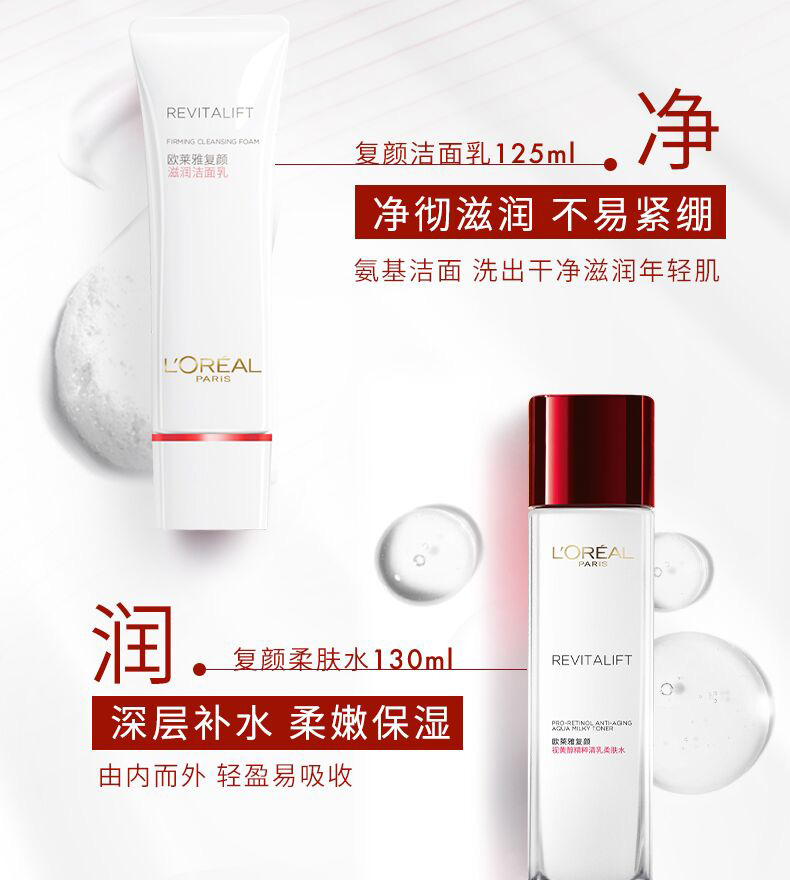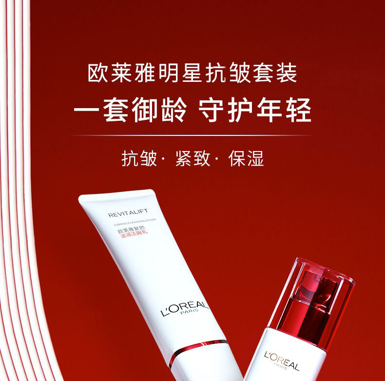 【特惠】欧莱雅复颜经典抗皱4件套(洁面125ml+柔肤水175ml+紧致乳50ml+抗皱霜25ml)