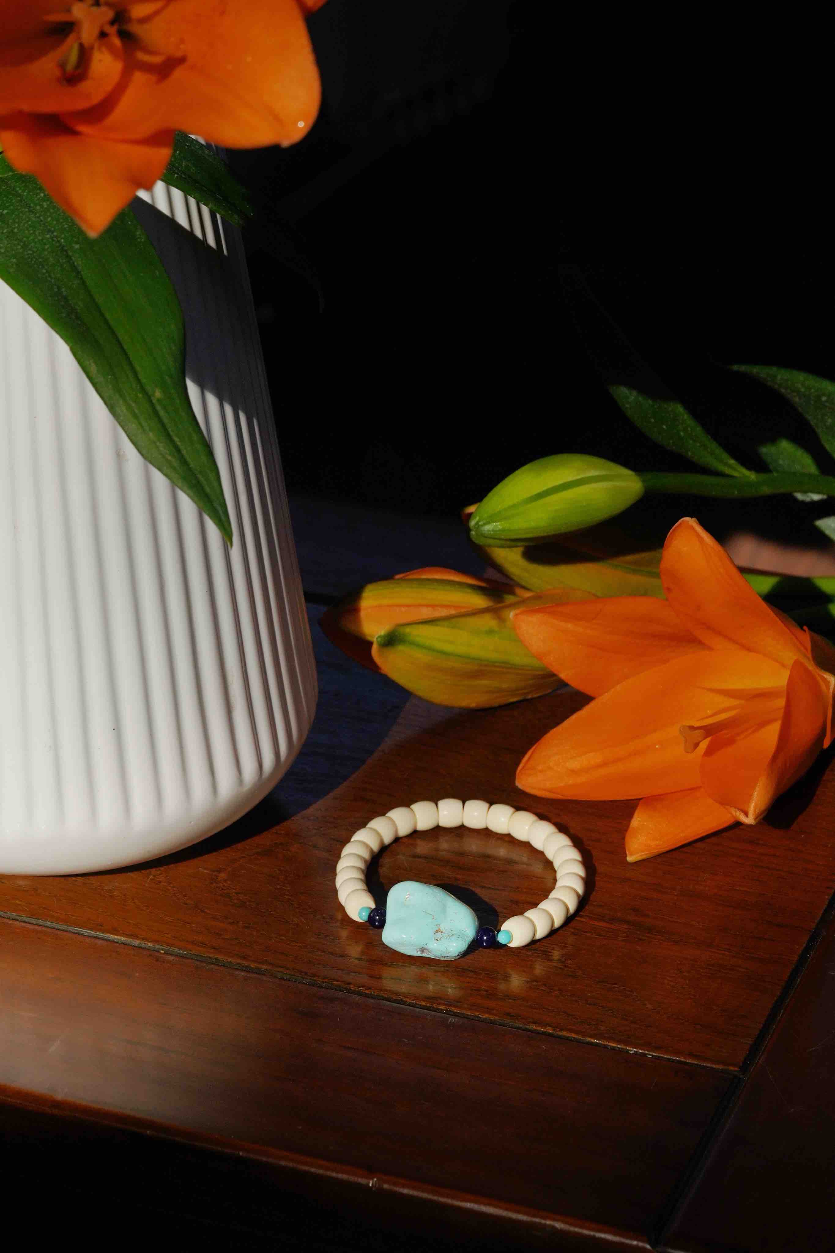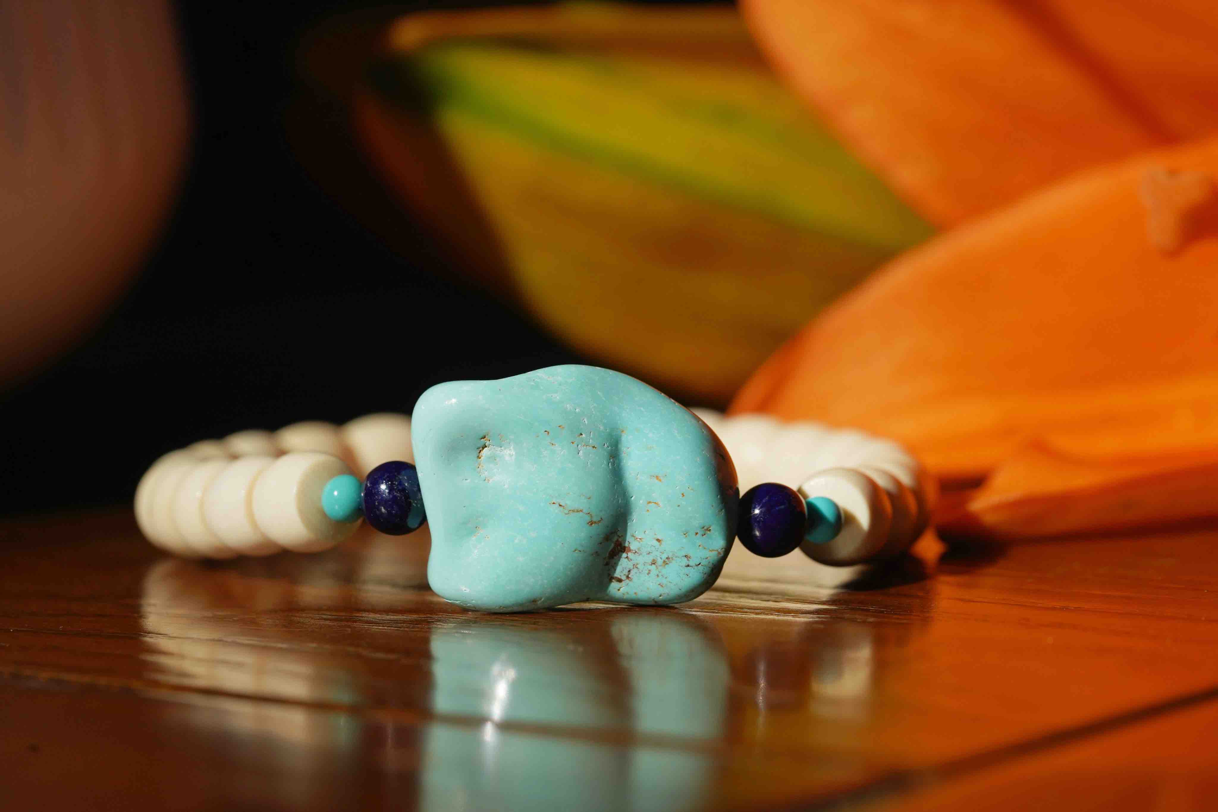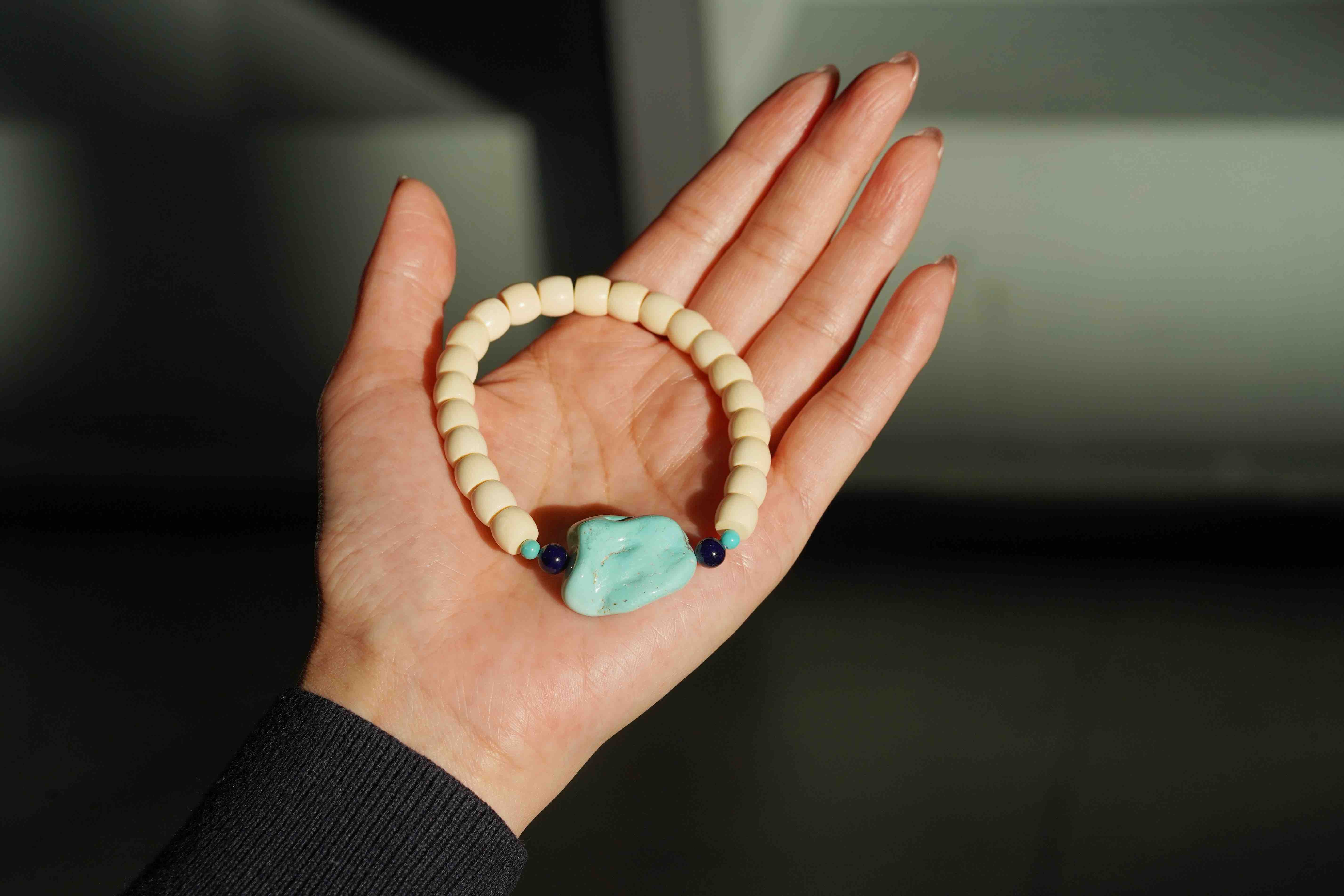 绿松猛犸牙手串