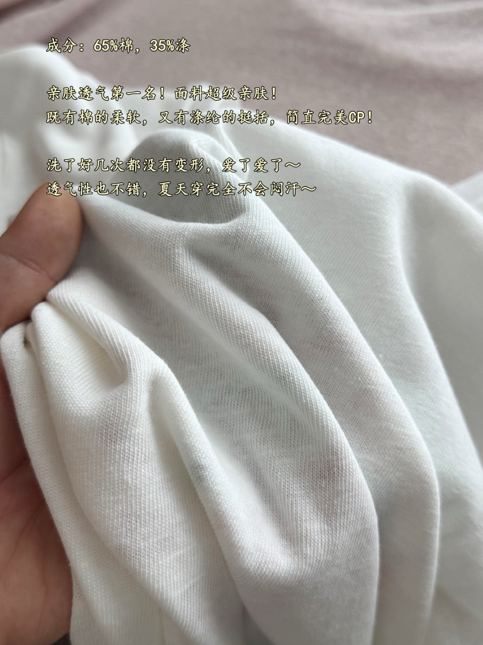 亲肤透气第一名!面料超级亲肤!既有棉的柔软,又有涤纶的挺括,洗了好几次都没有变形,爱了爱了~透气性也不错,夏天穿完全不会闷汗