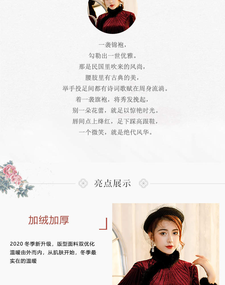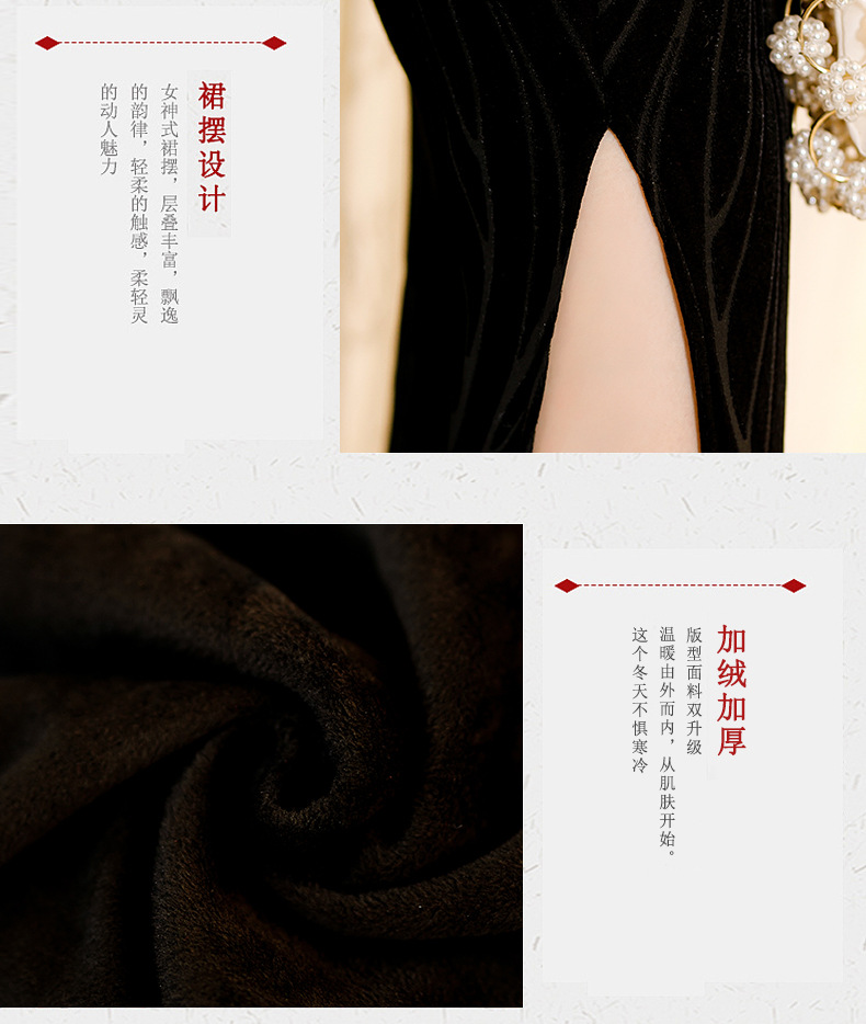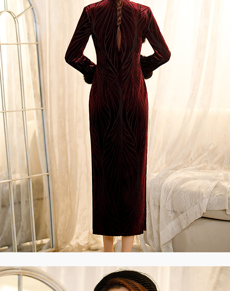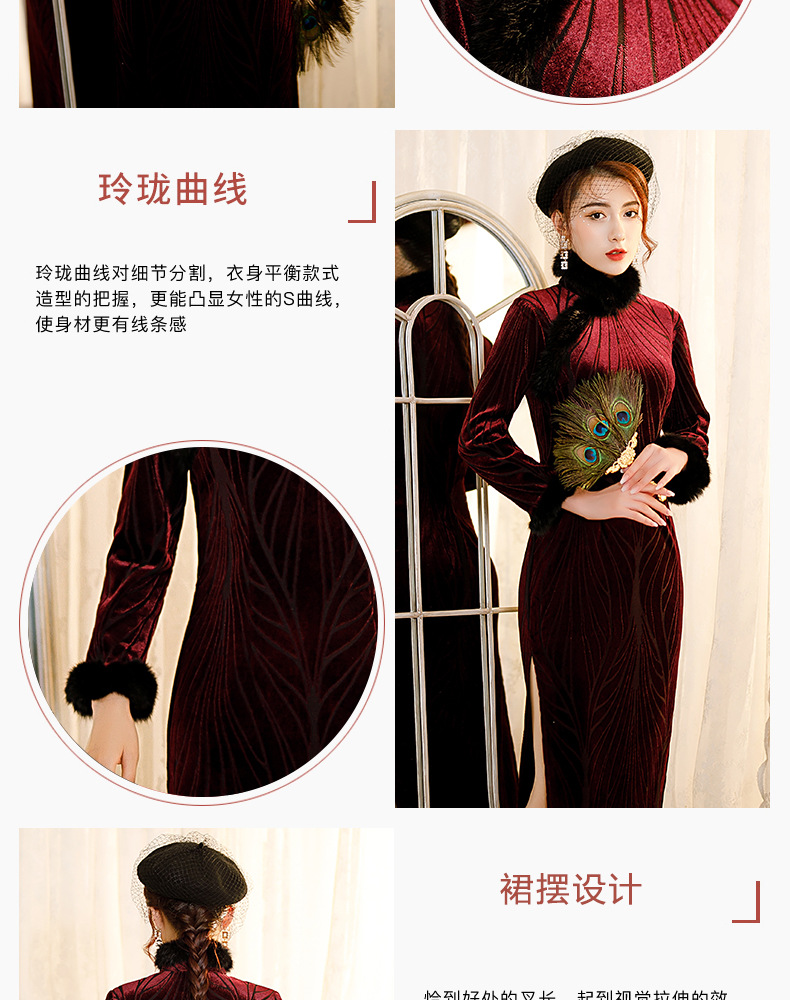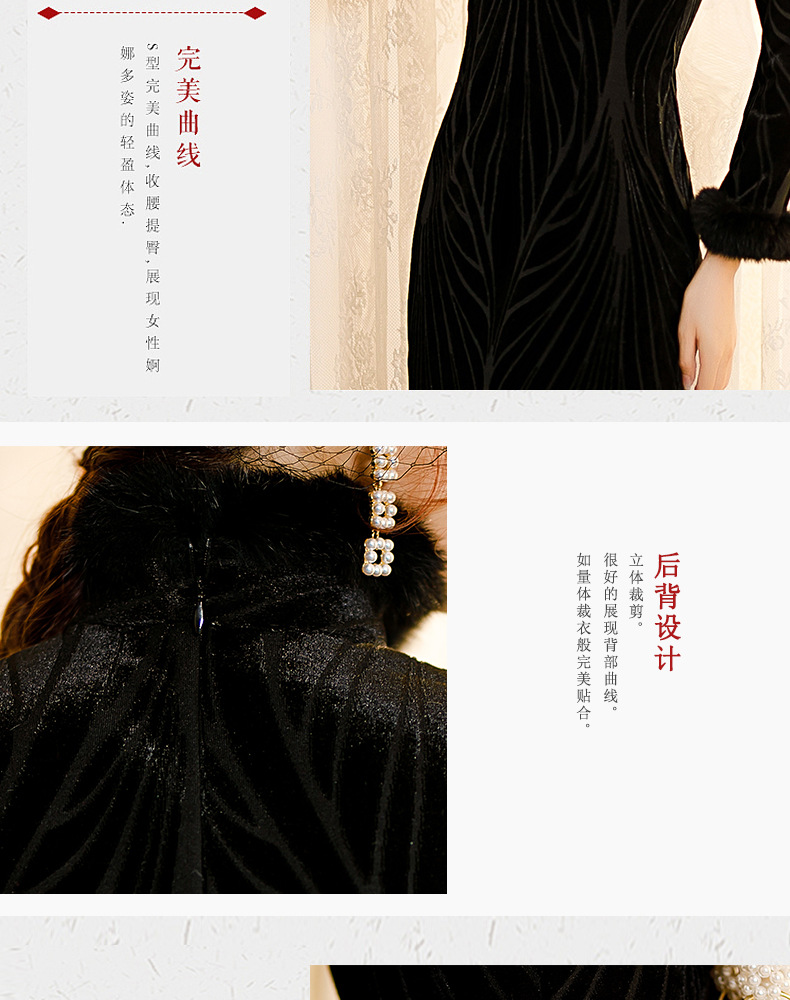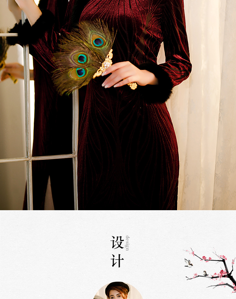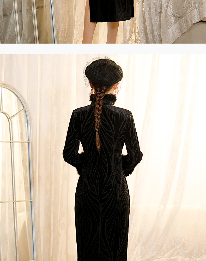 HQ-JYC-056加绒加厚绣花毛领优雅气质改良旗袍复古中国风连衣裙