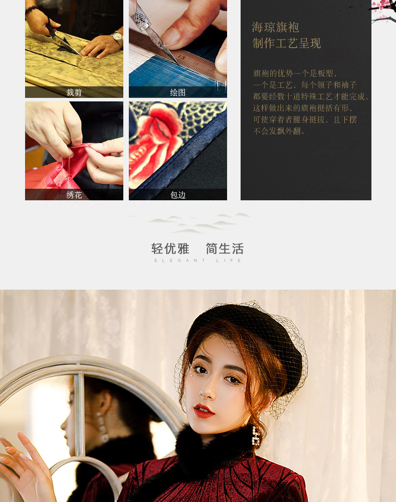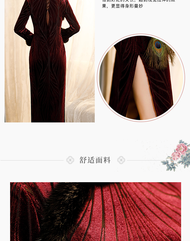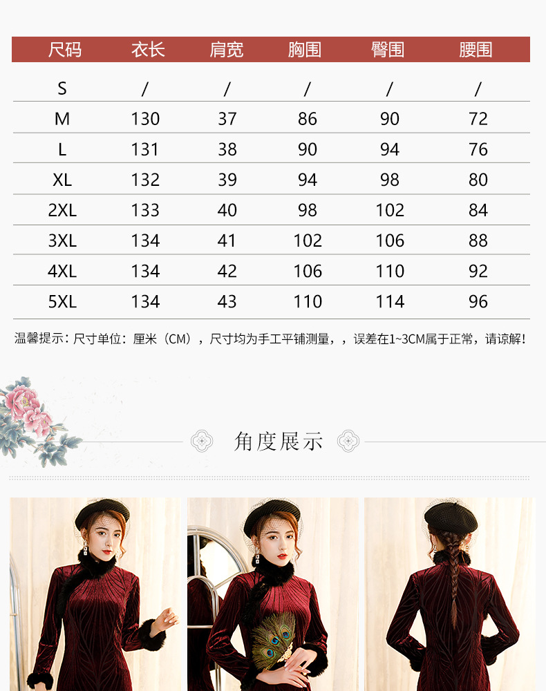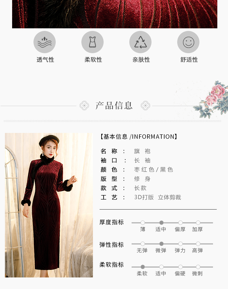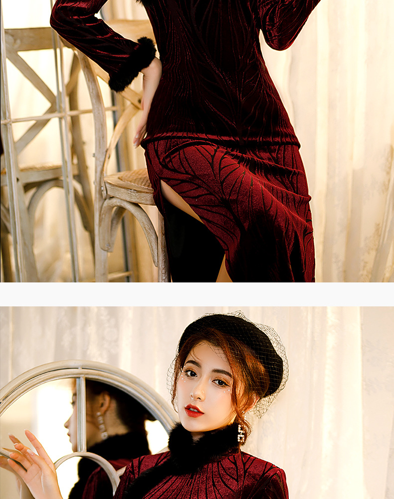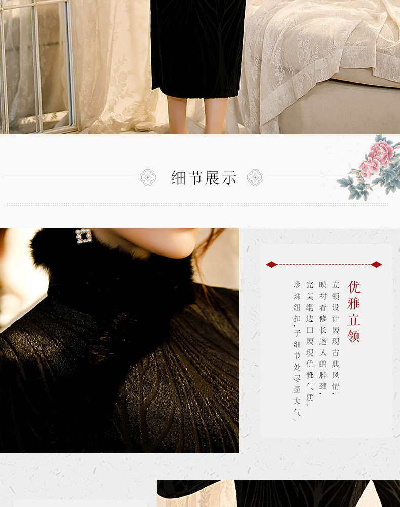 HQ-JYC-056加绒加厚绣花毛领优雅气质改良旗袍复古中国风连衣裙