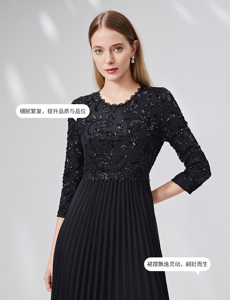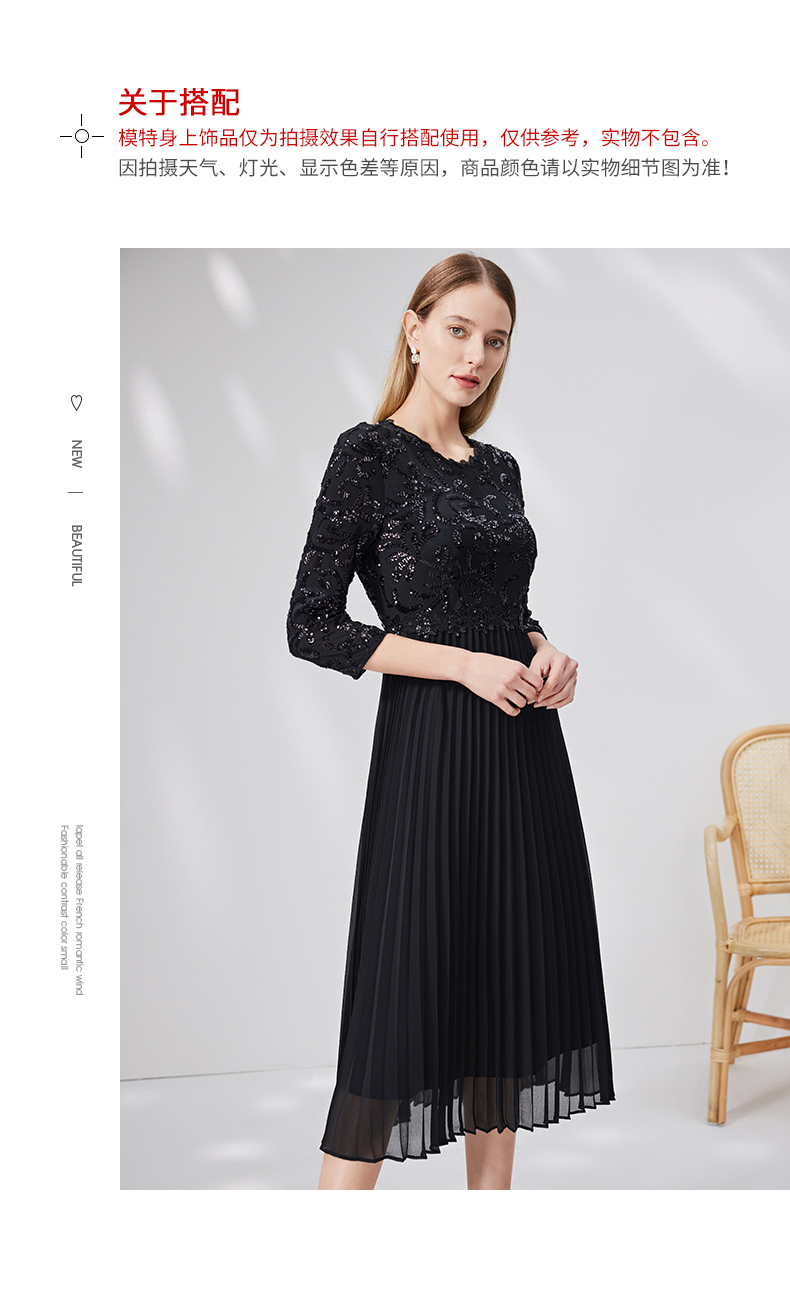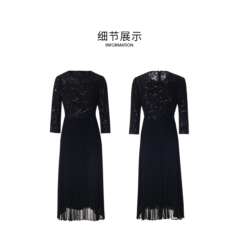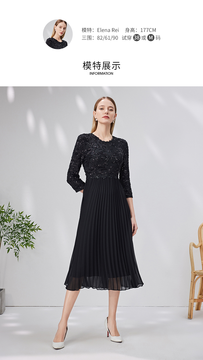 EITIE爱特爱新款优雅气质镂空蕾丝收腰A字喇叭袖连衣裙女A2007411