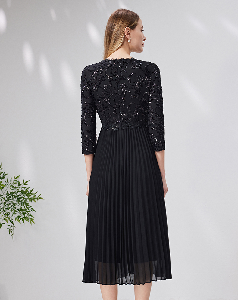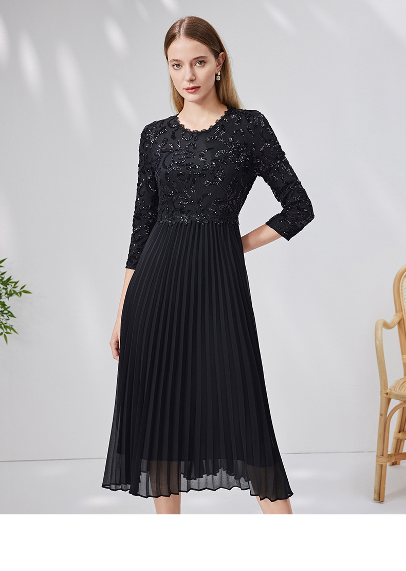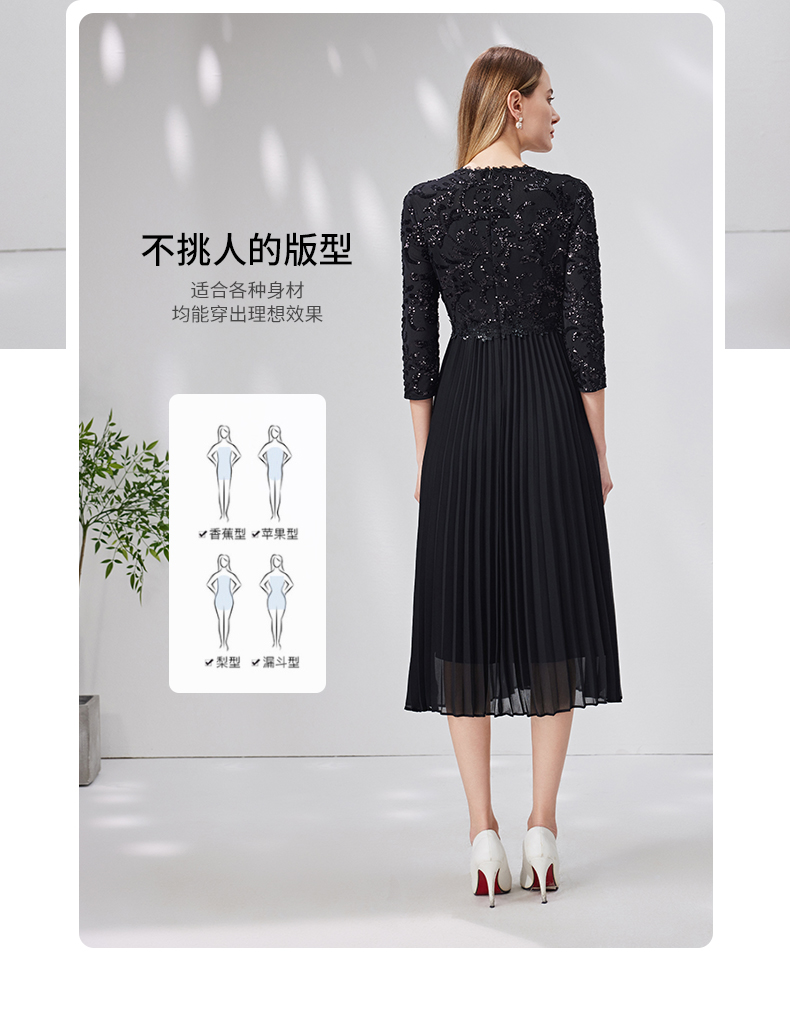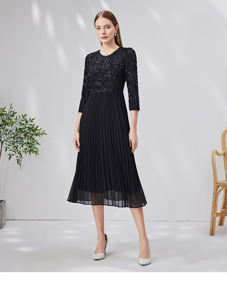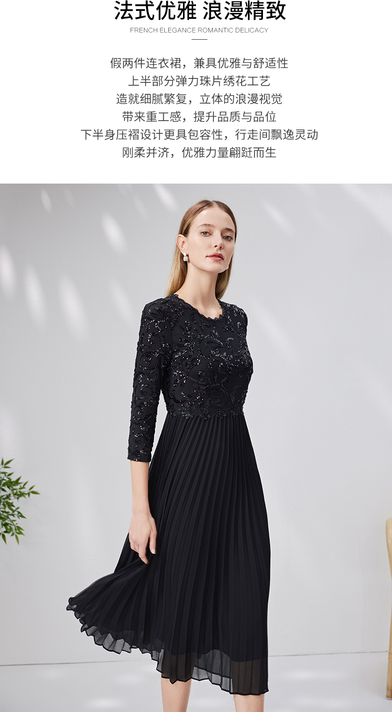 EITIE爱特爱新款优雅气质镂空蕾丝收腰A字喇叭袖连衣裙女A2007411