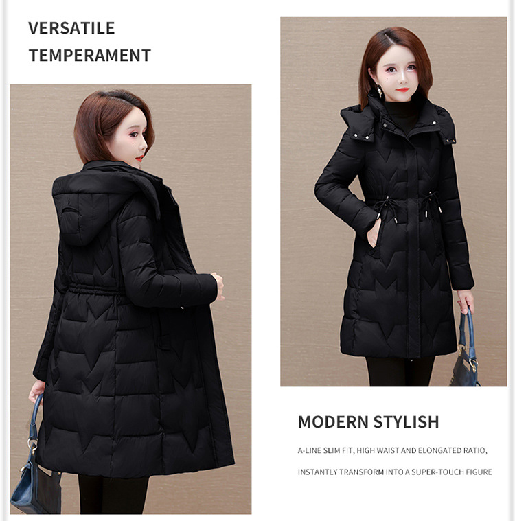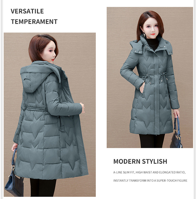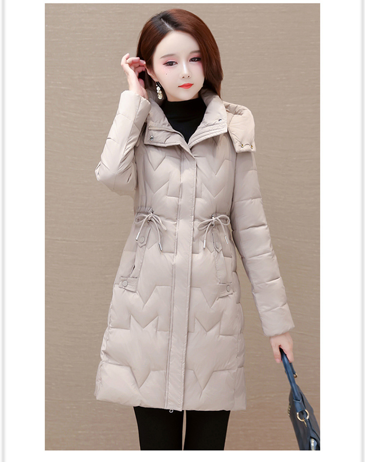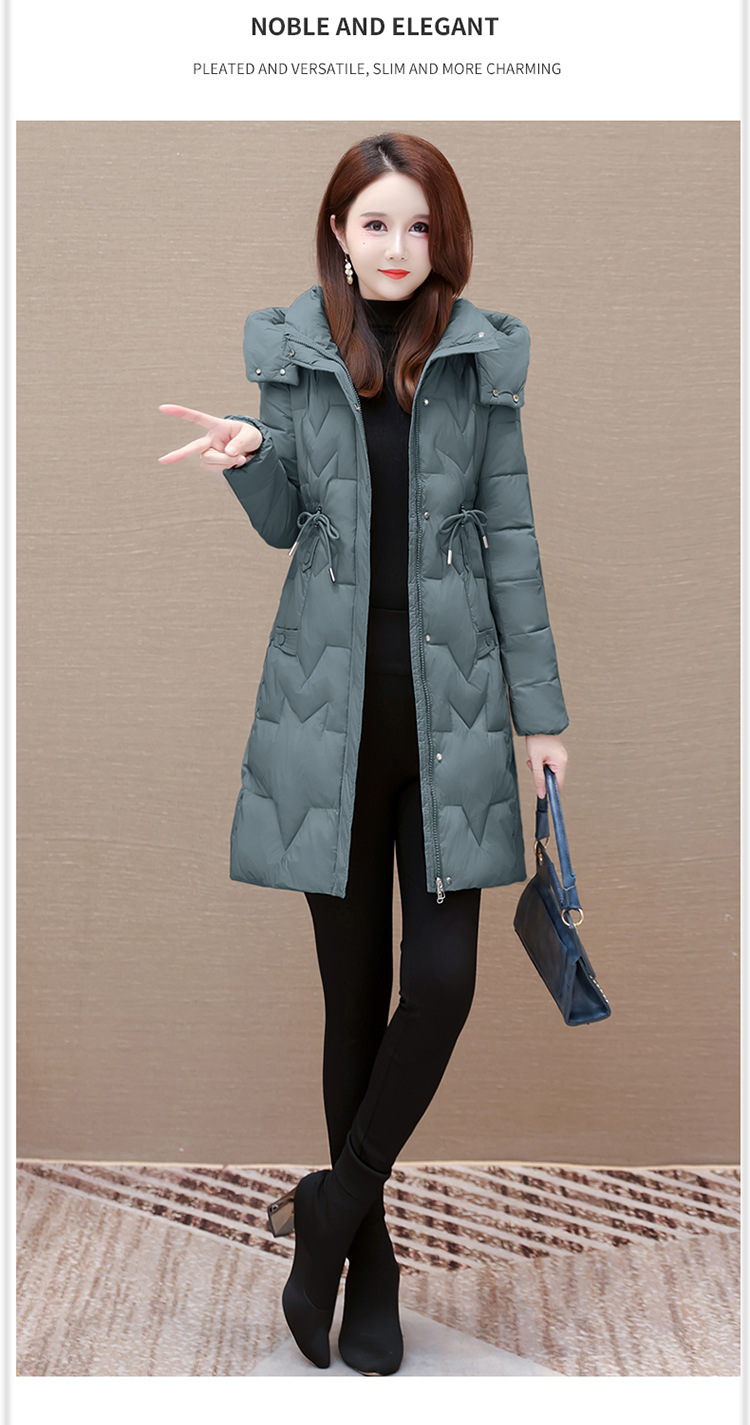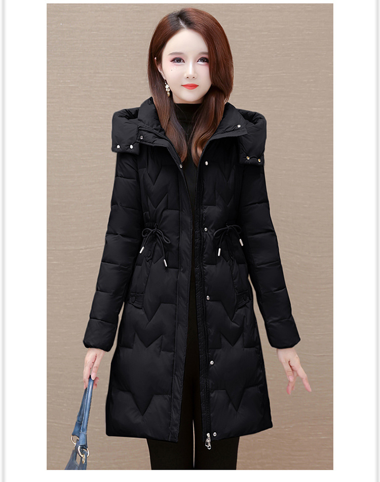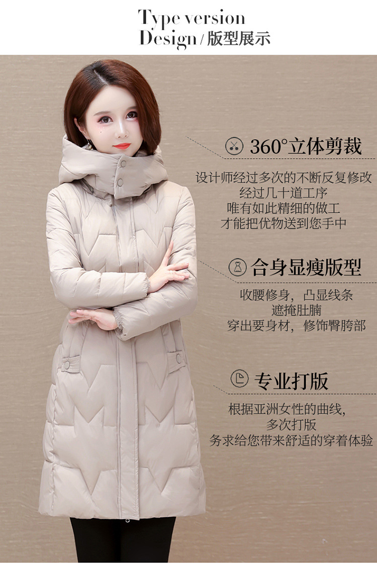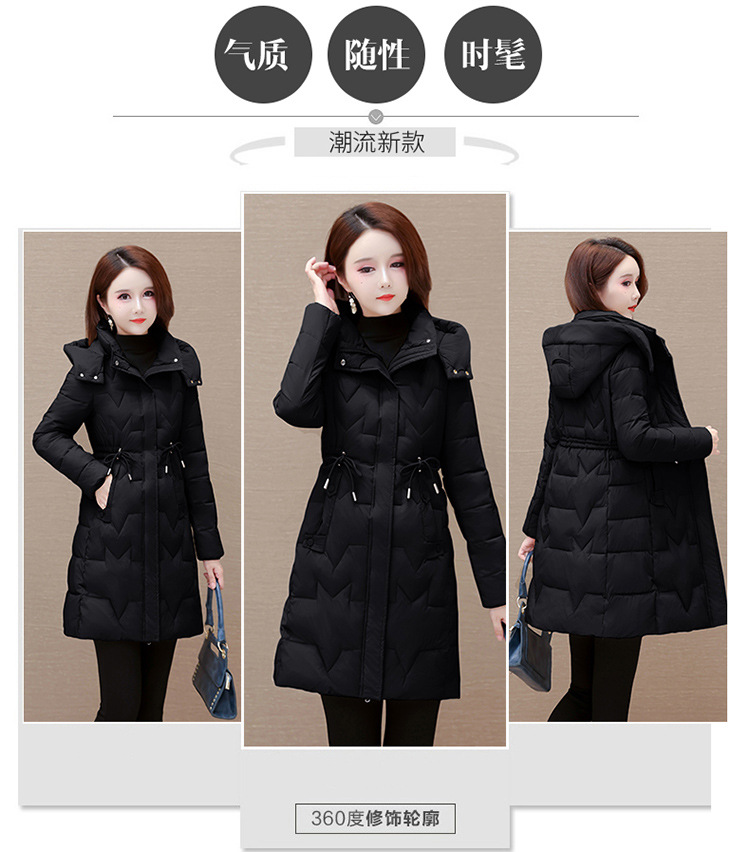修身时尚,中长款大码保暖冬款长袖连帽气质休闲外套QYM-XQD-38D8053-L