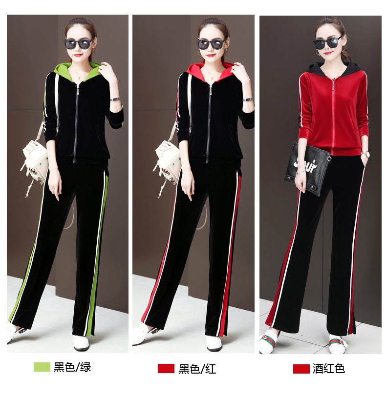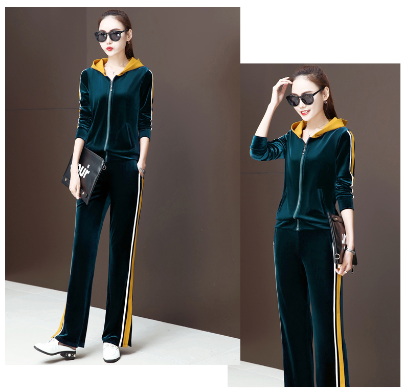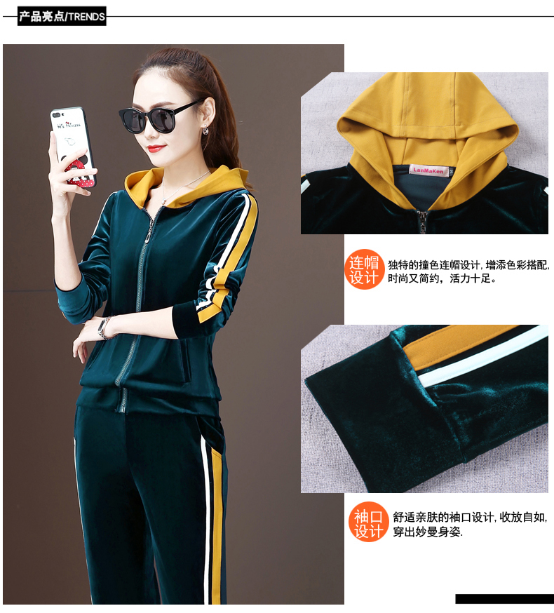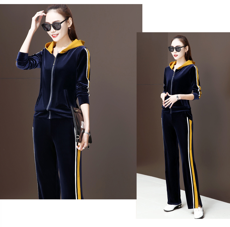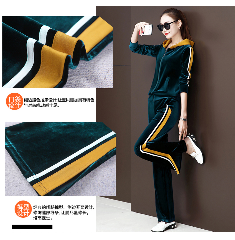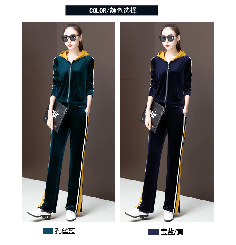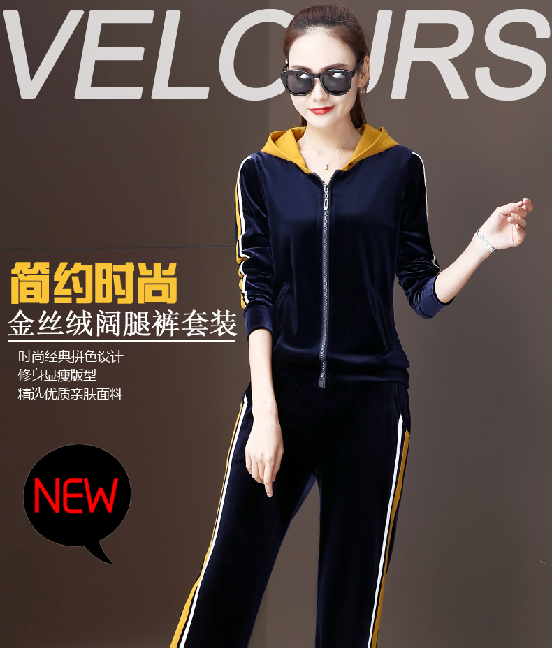 SP-SJG-96888-JZ新款时尚气质休闲金丝绒连帽上衣阔腿裤两件套