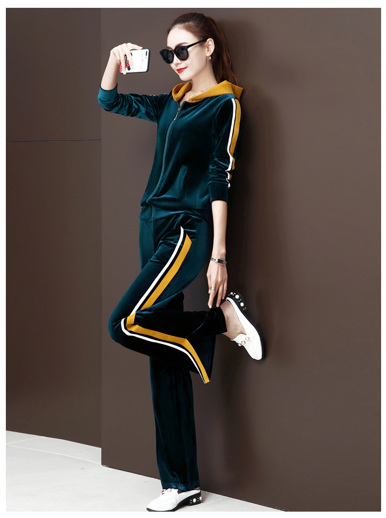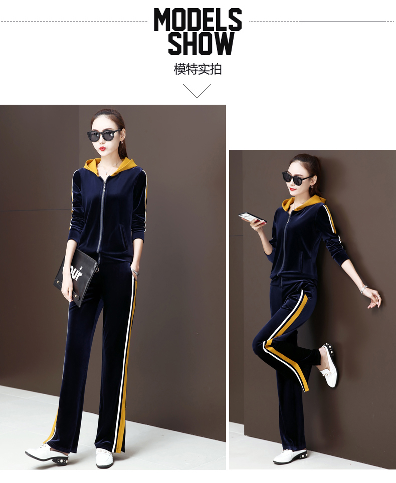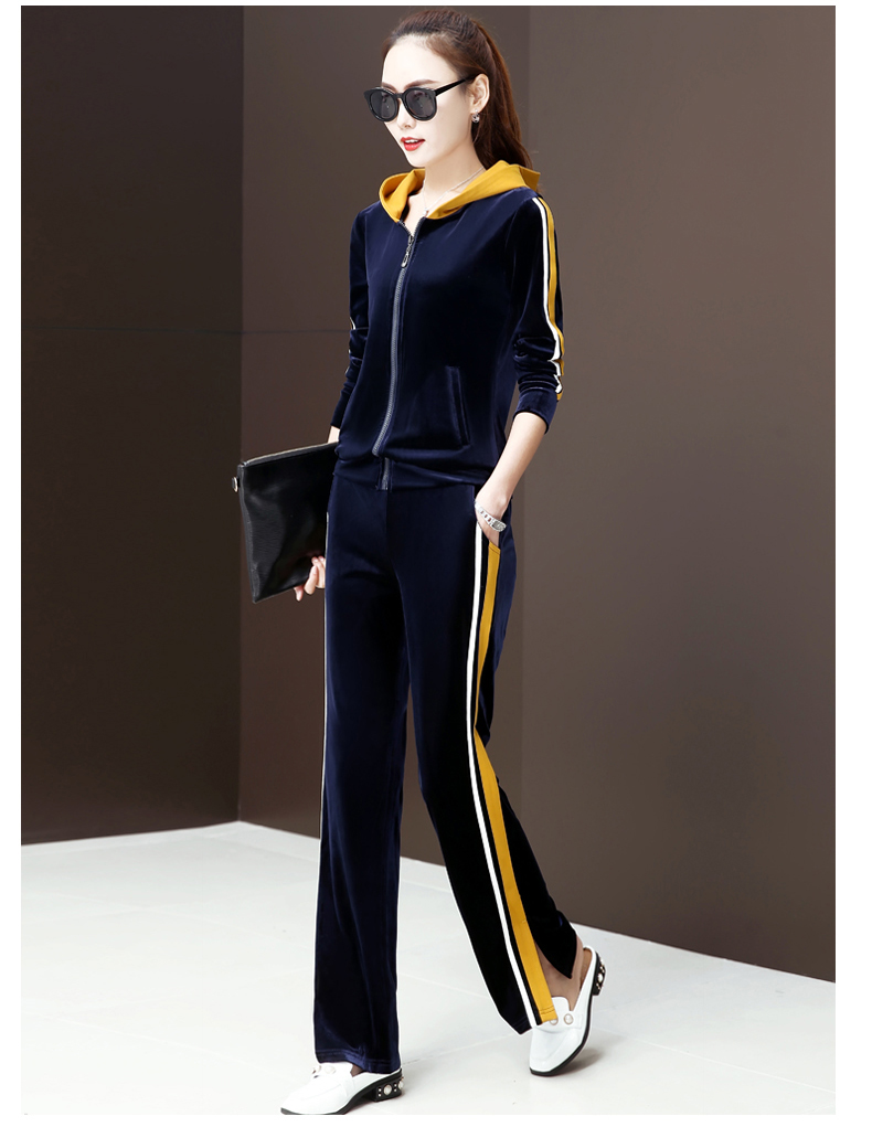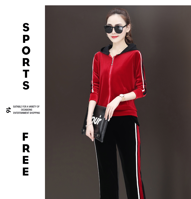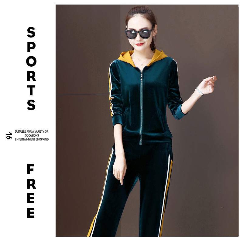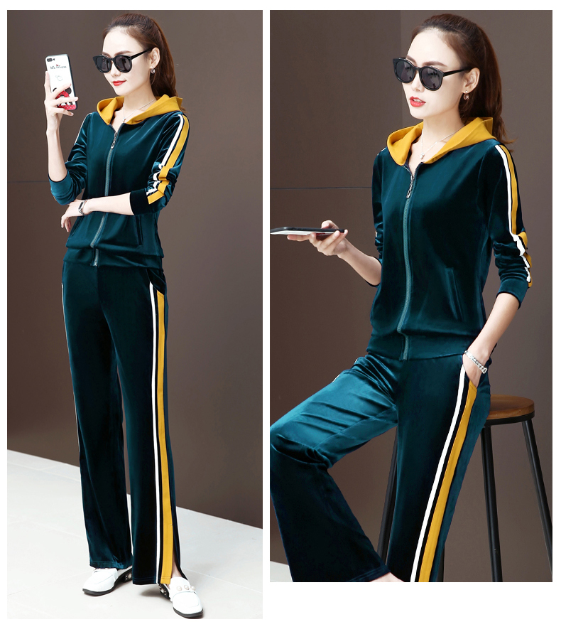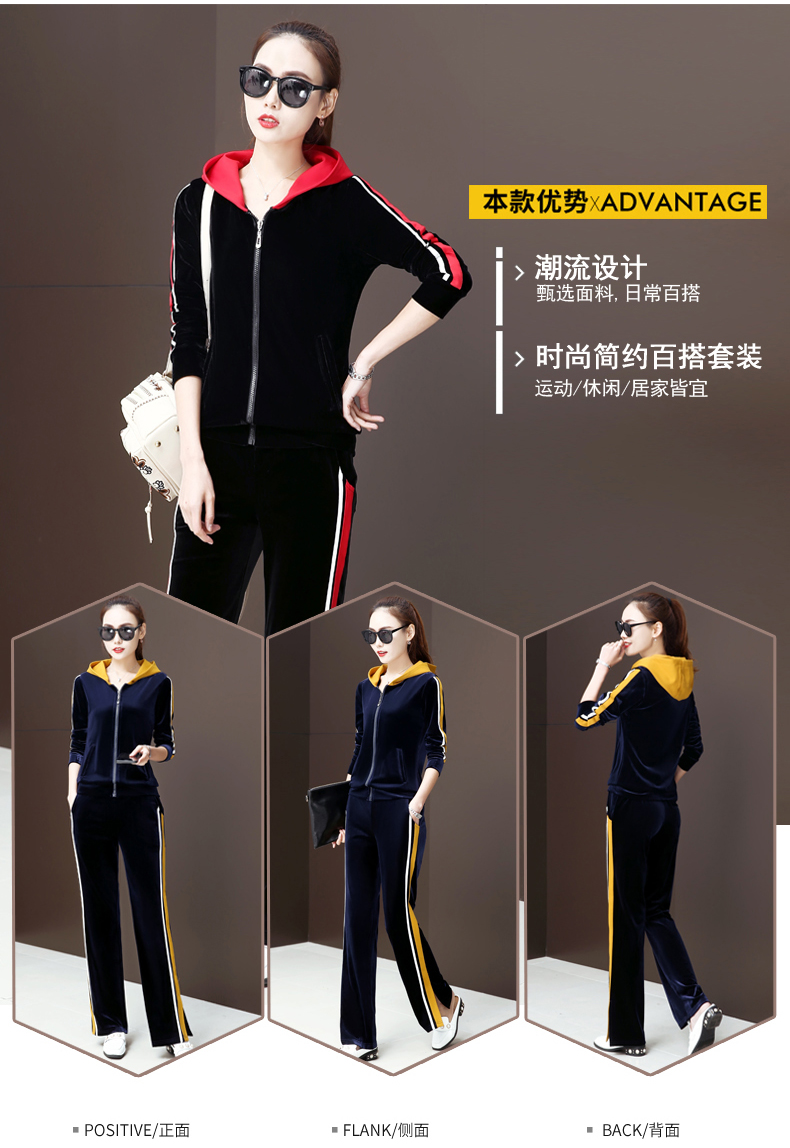 SP-SJG-96888-JZ新款时尚气质休闲金丝绒连帽上衣阔腿裤两件套
