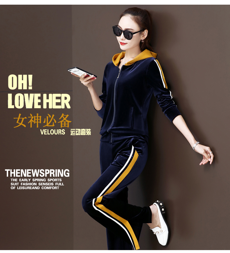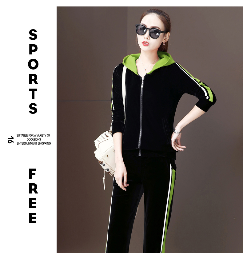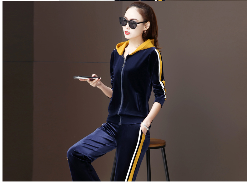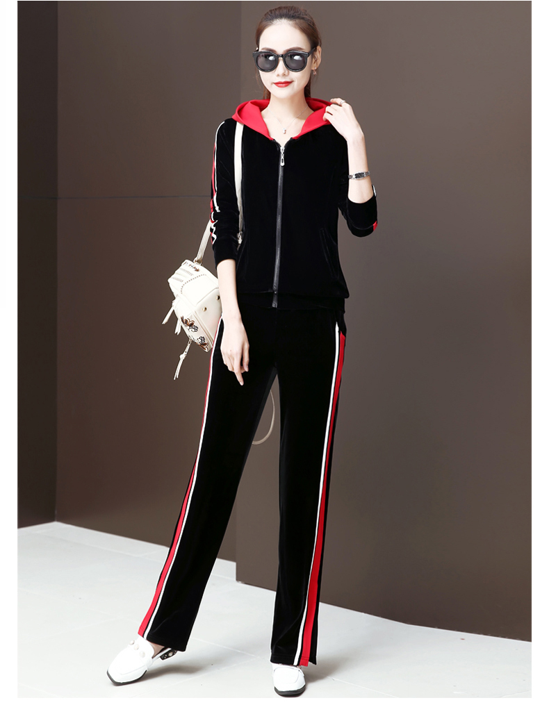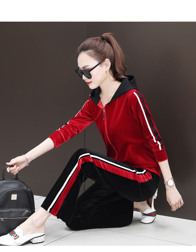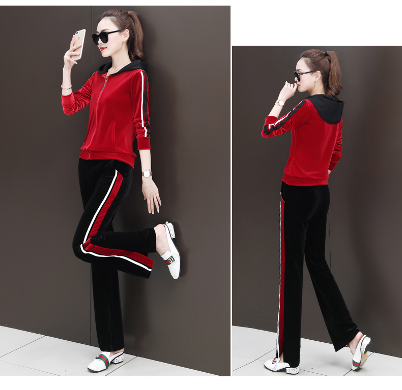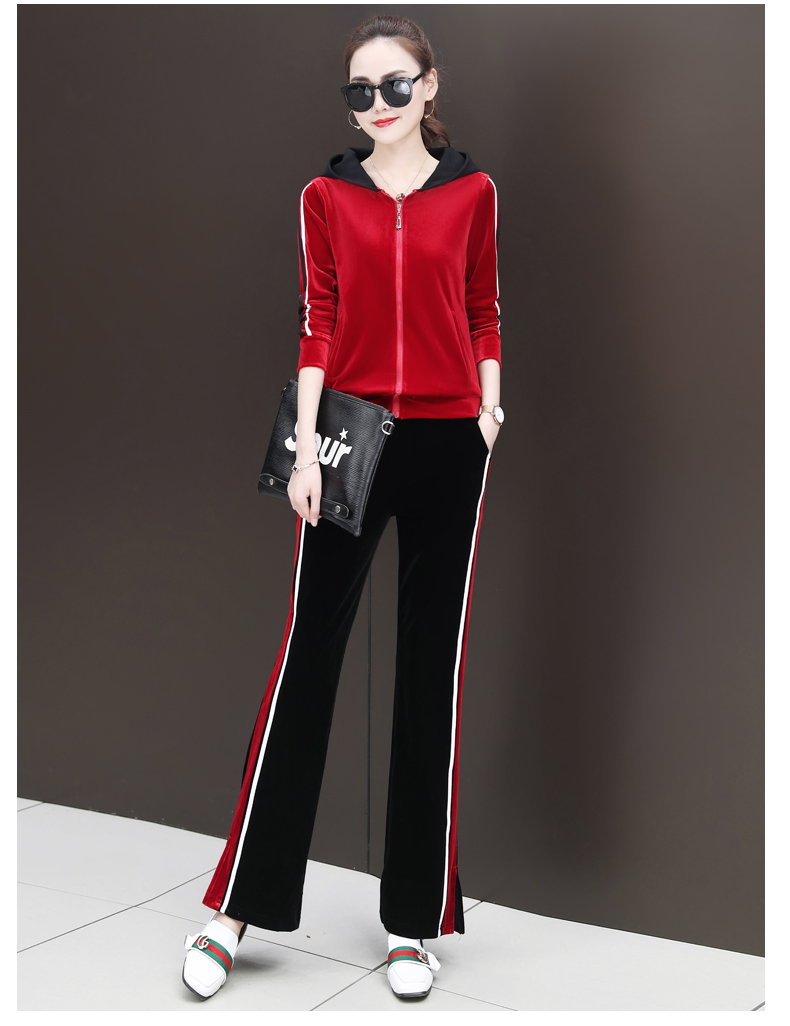 SP-SJG-96888-JZ新款时尚气质休闲金丝绒连帽上衣阔腿裤两件套