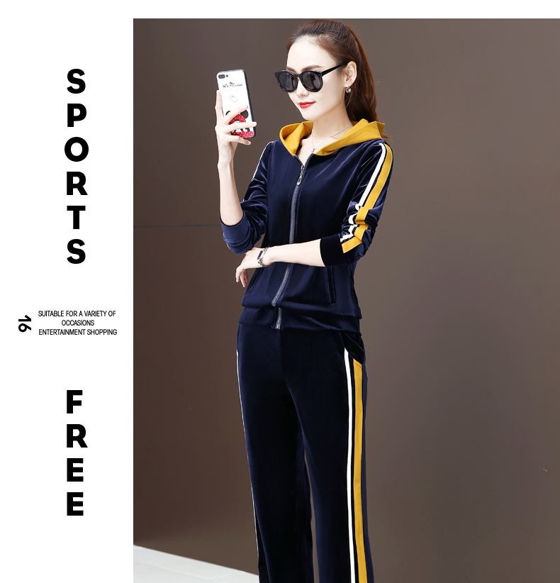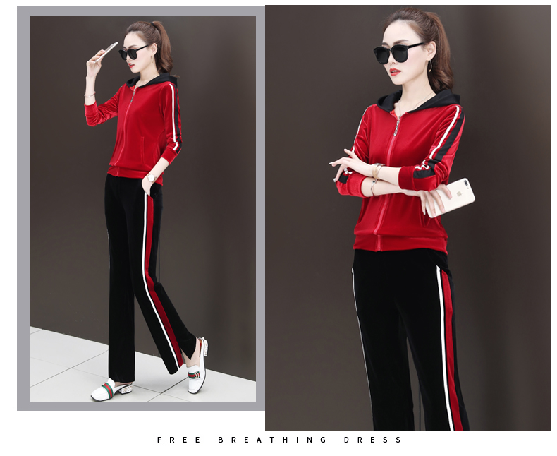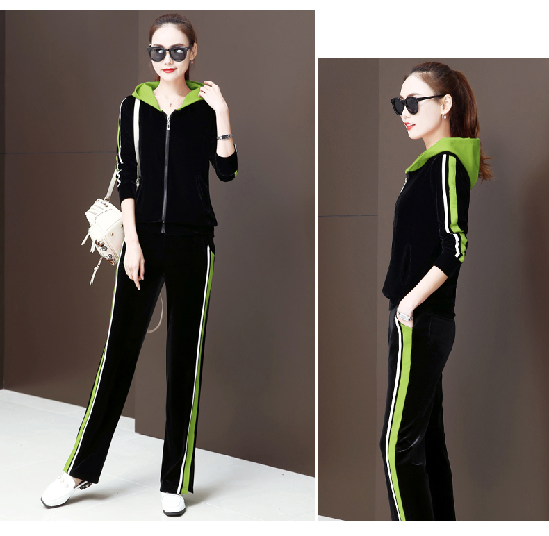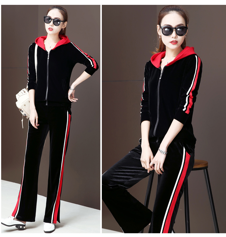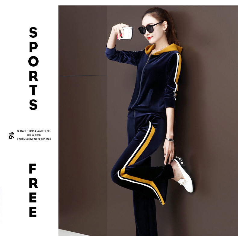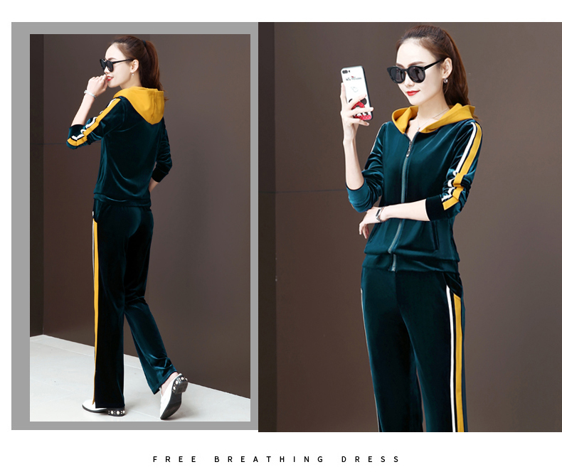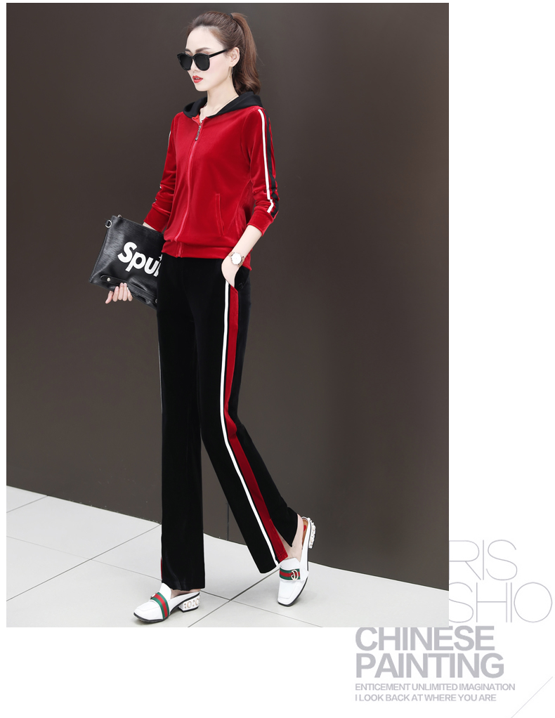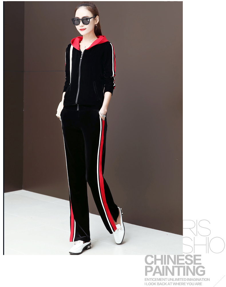 SP-SJG-96888-JZ新款时尚气质休闲金丝绒连帽上衣阔腿裤两件套