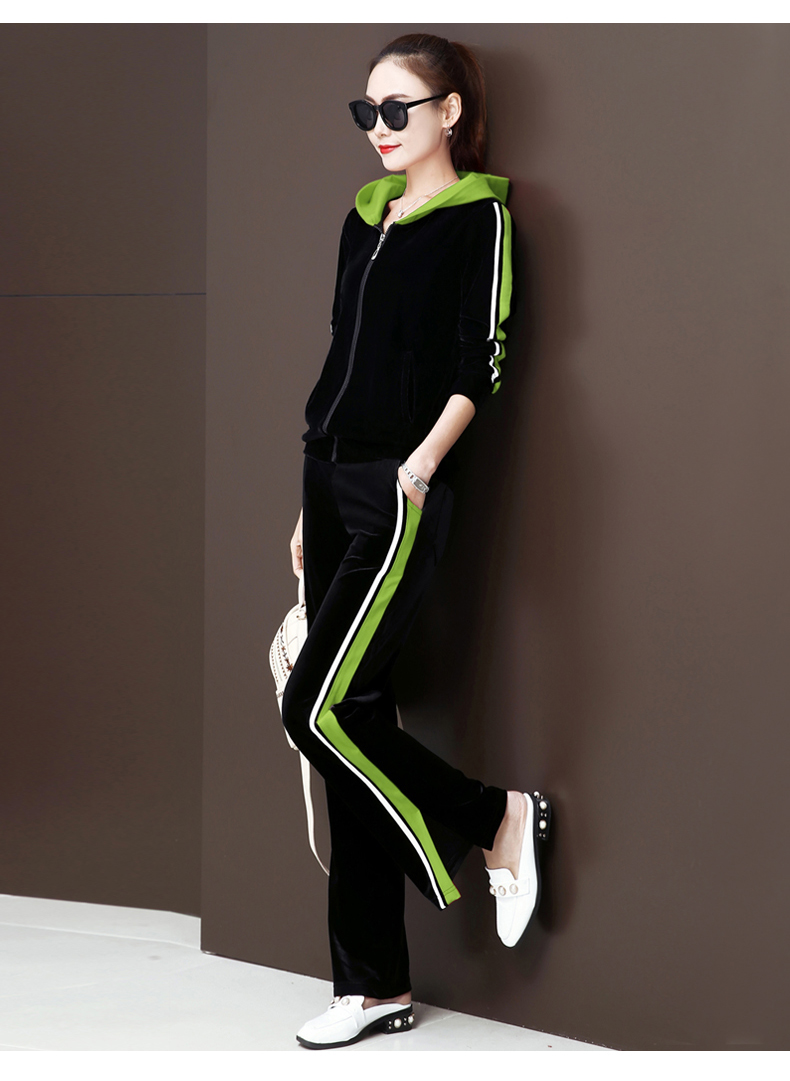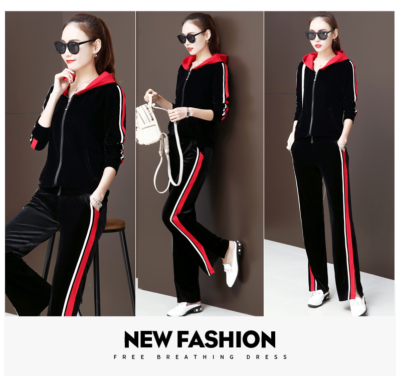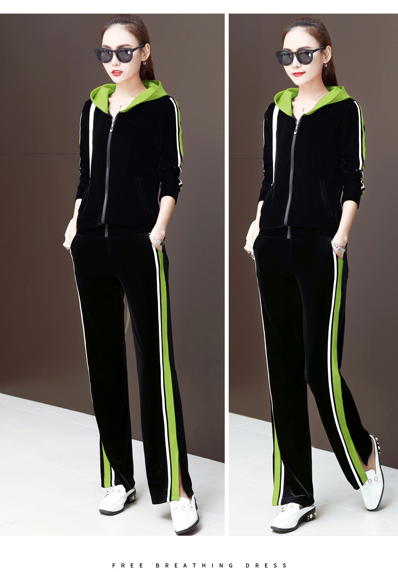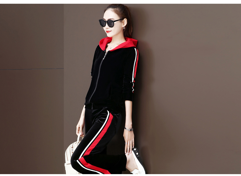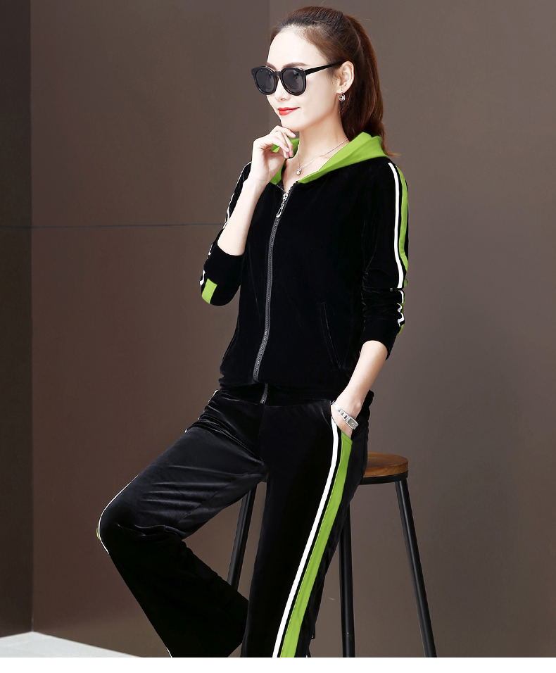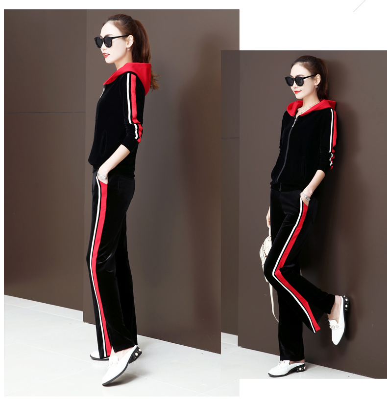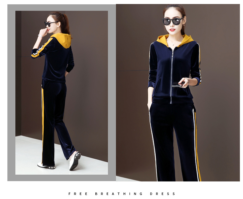 SP-SJG-96888-JZ新款时尚气质休闲金丝绒连帽上衣阔腿裤两件套