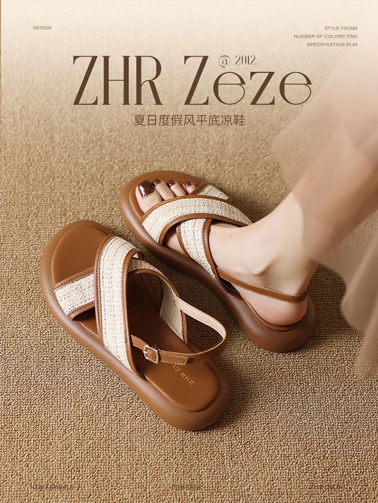 ZHR则则舒适优雅凉鞋2025新款夏季仙女休闲百搭软底气质透气凉鞋