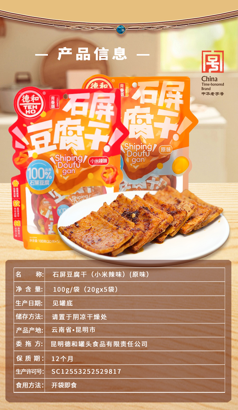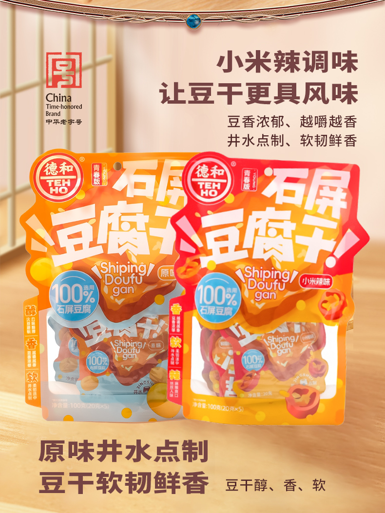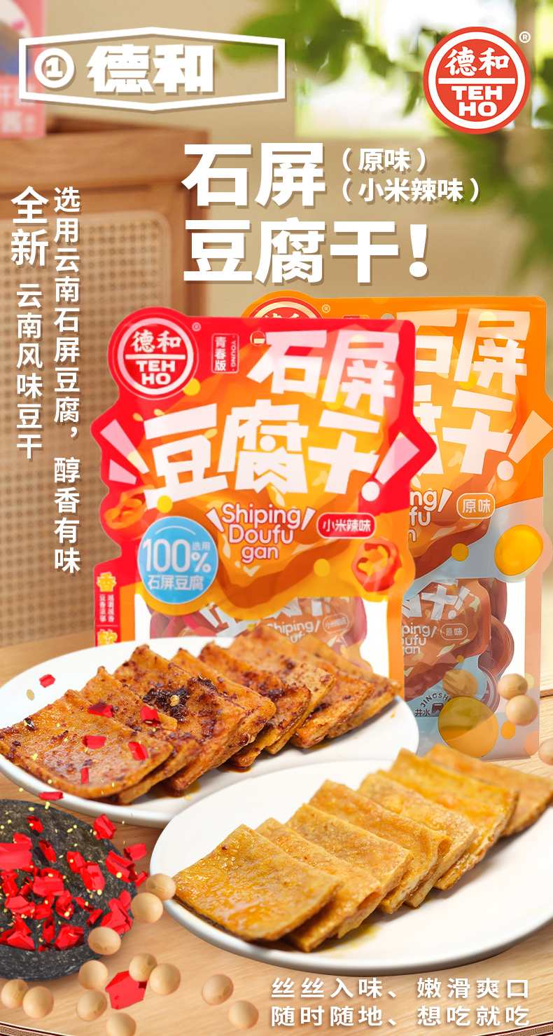 德和 石屏豆腐干 原味/小米辣味 100g/袋(20g*5片)休闲零食 #零食