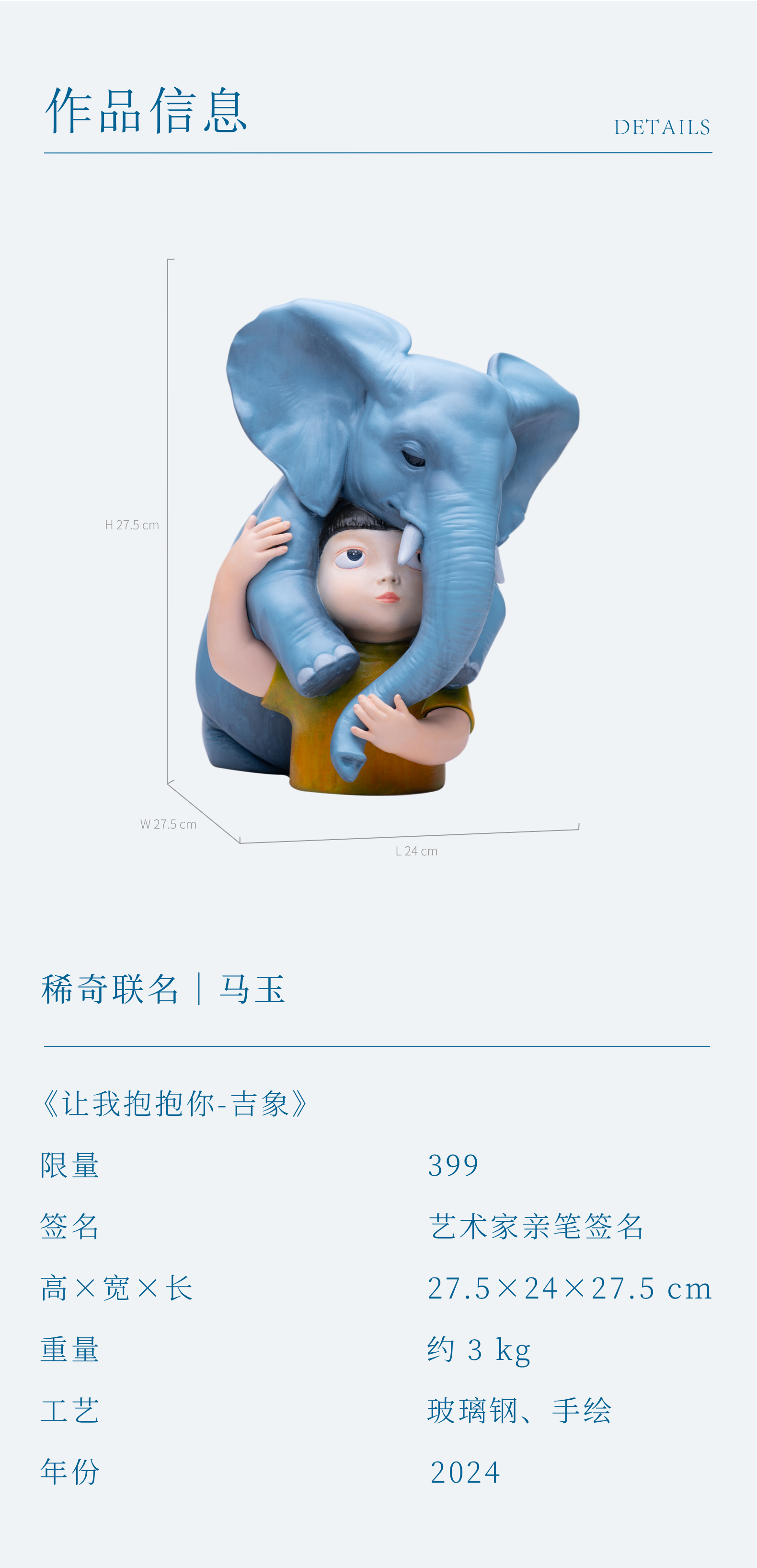稀奇艺术X马玉 联名款《讓我抱抱你-吉象》限量版艺术雕塑艺术家亲笔签名限量399件