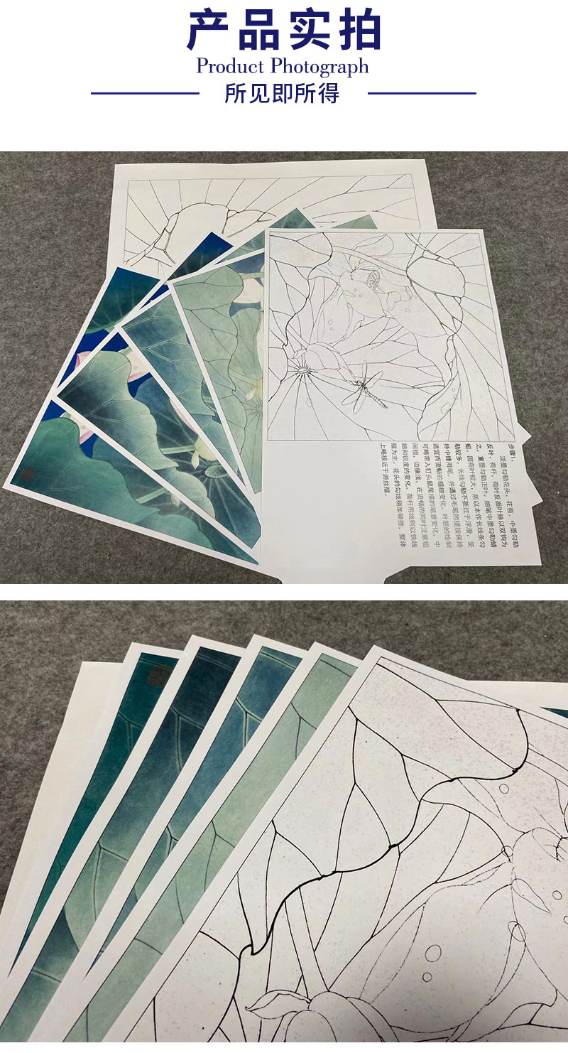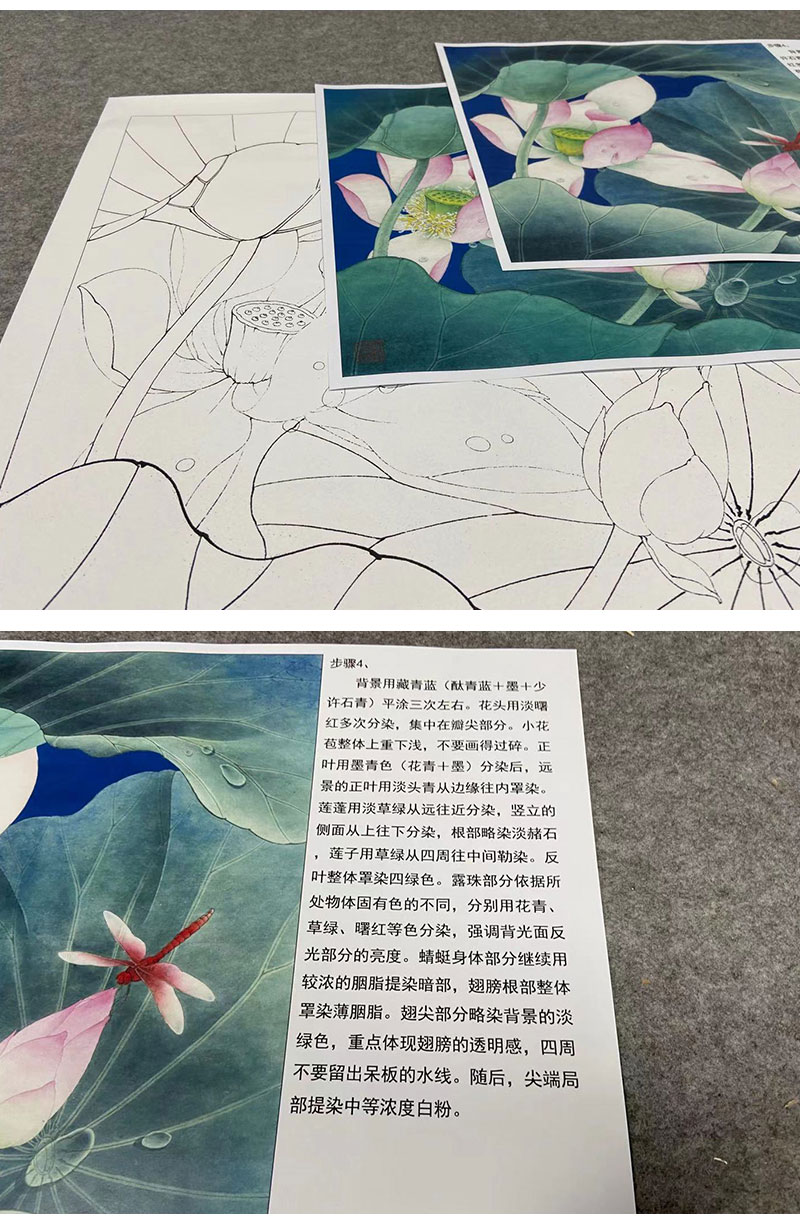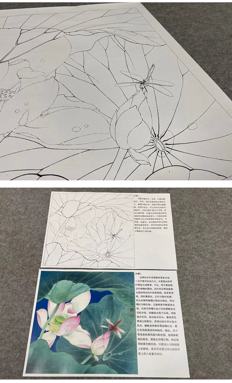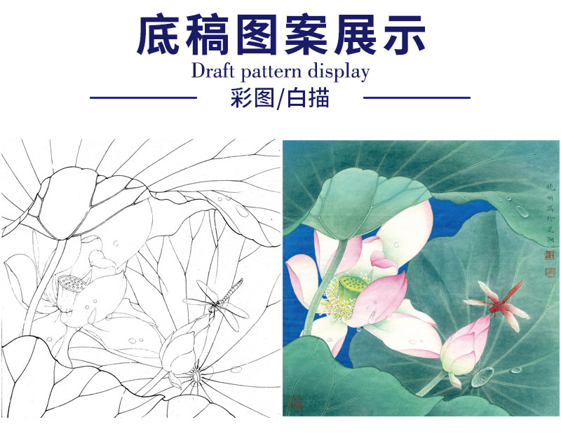 【有步骤、大彩图】李晓明工笔画白描底稿斗方小品《心莲若梦》荷花蜻蜓初学者临摹花鸟线稿KE08