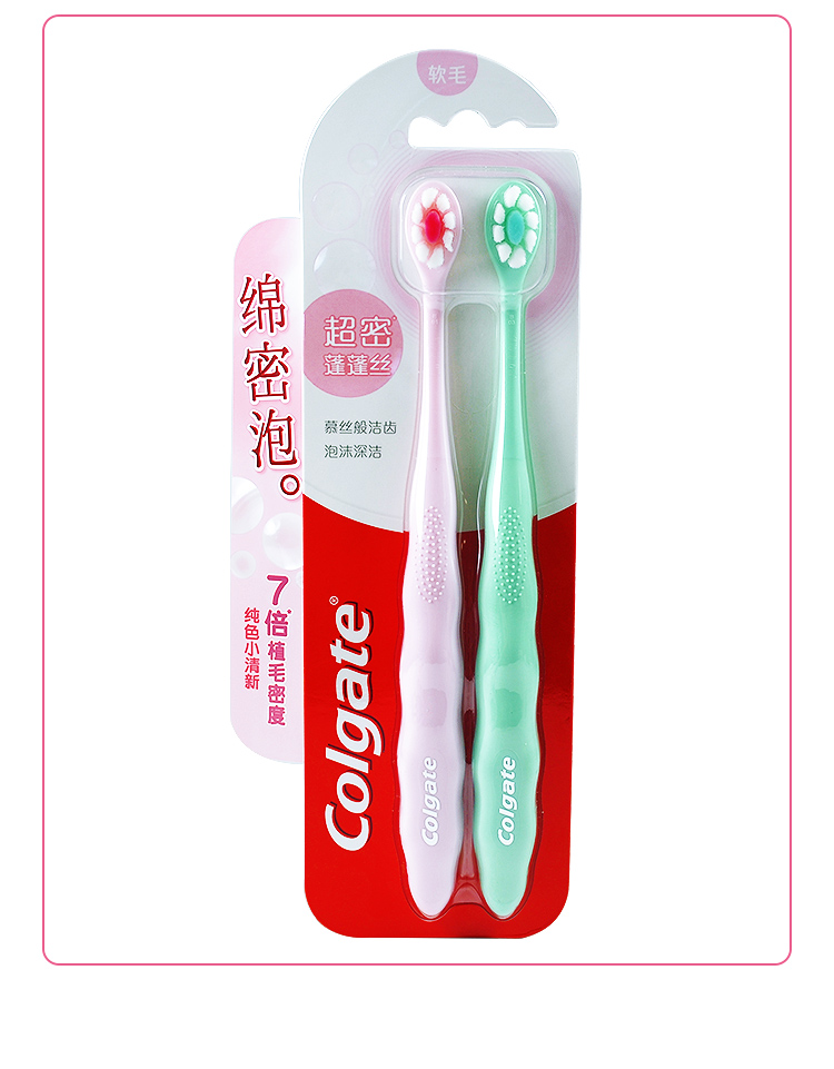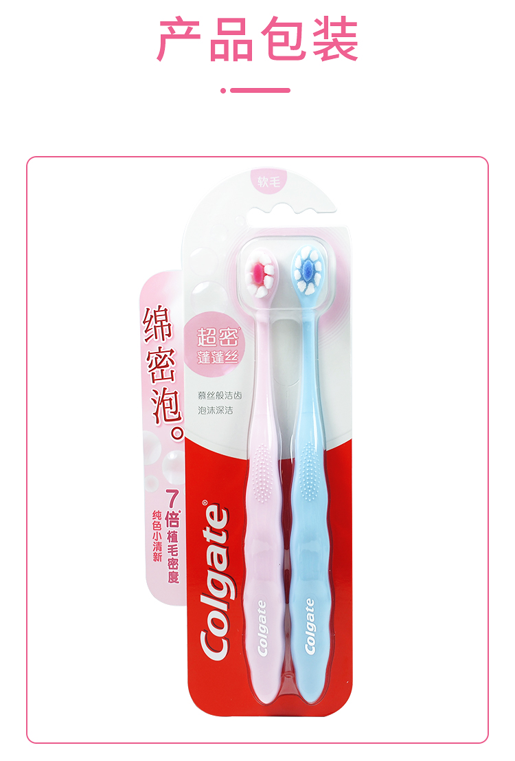 【品牌直发】包邮:高露洁超密蓬蓬丝牙刷情侣软毛2支装