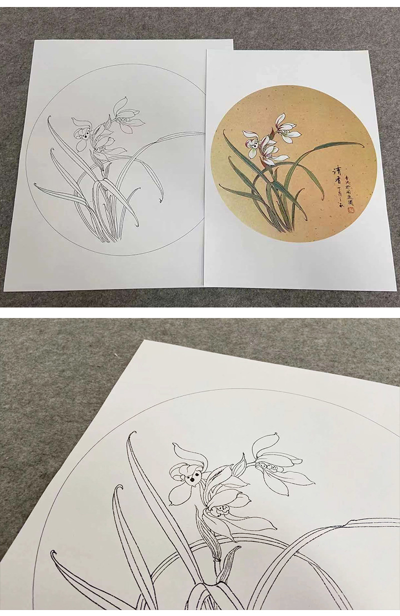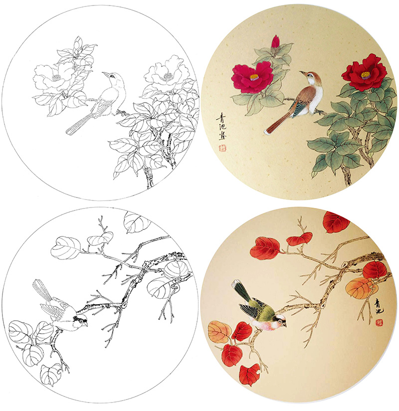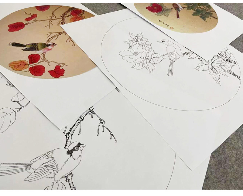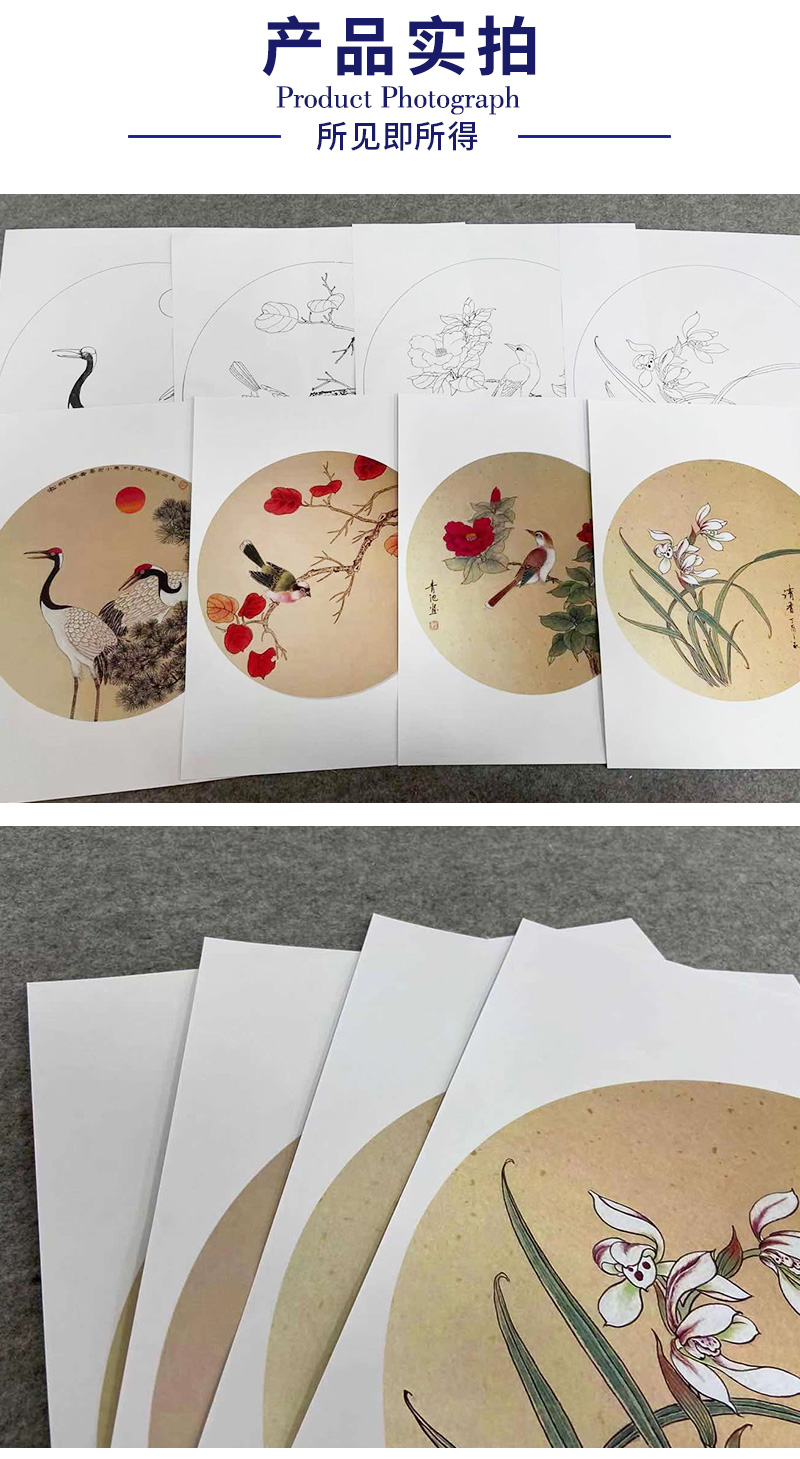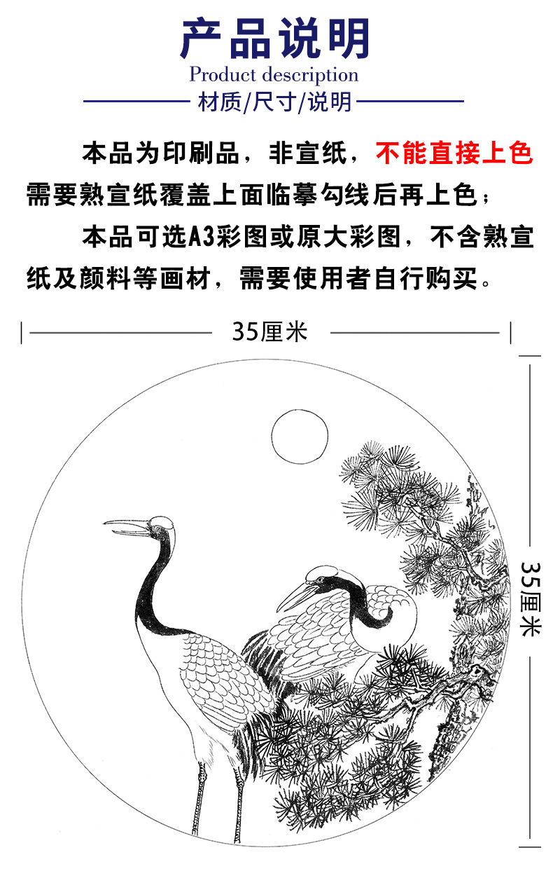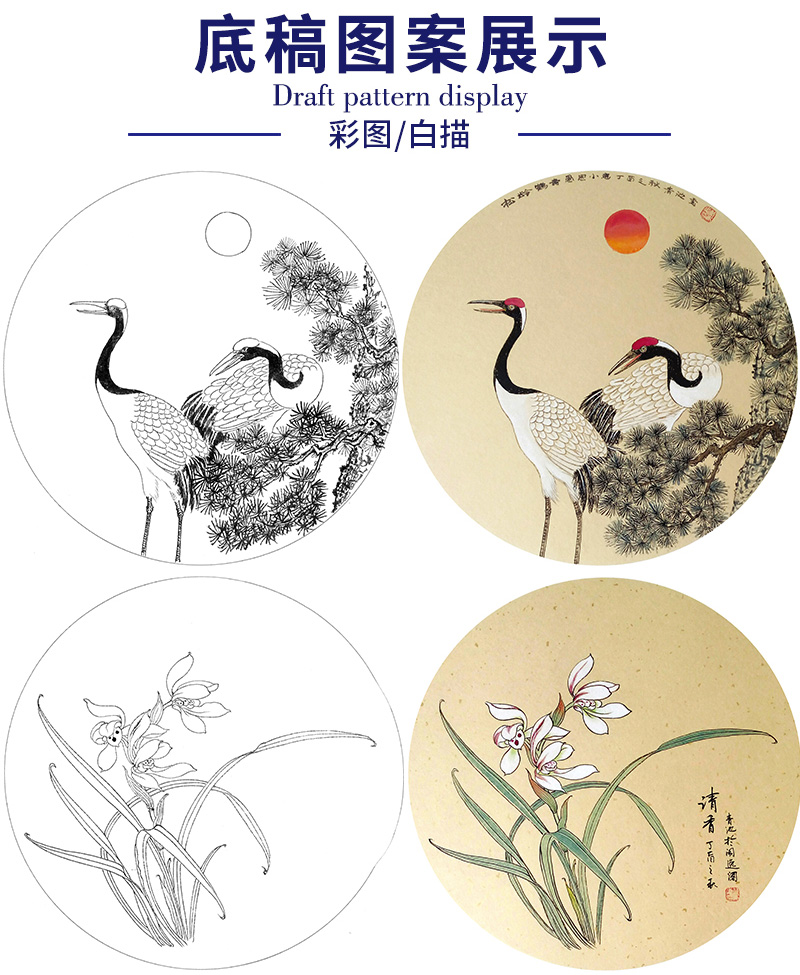 戴青池工笔画白描底稿松龄鹤一套四幅初学者尺寸35×35厘米TD02