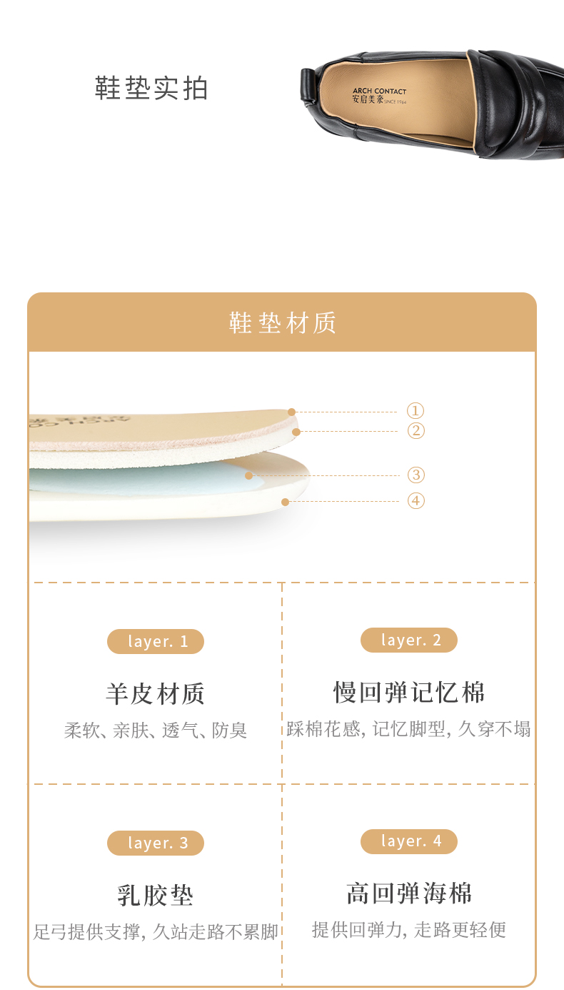 ARCHCONTACT安启美奈羊皮低跟面包乐福鞋52859