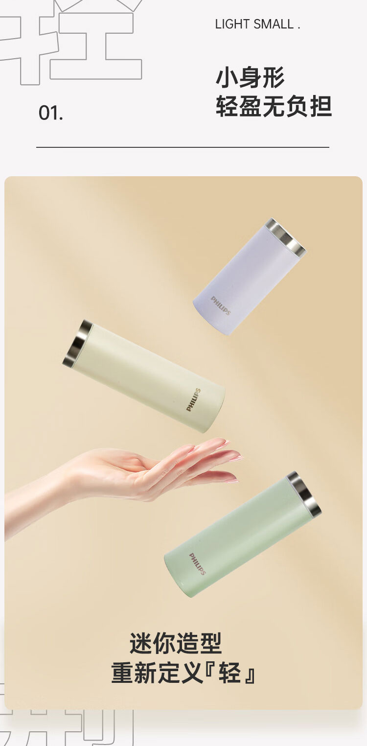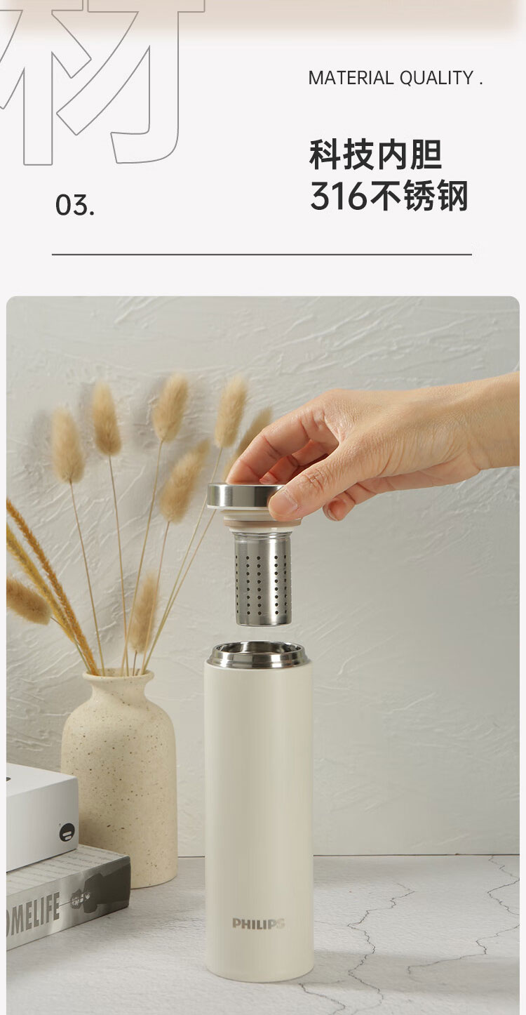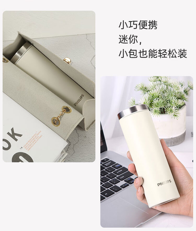 飞利浦PHILIPS保温杯316不锈钢随身杯便携杯茶水分离口袋杯办公300ml AWP2565 2564