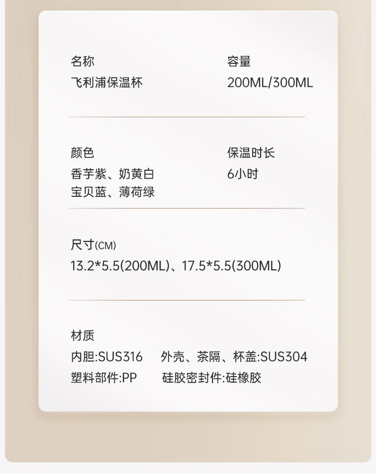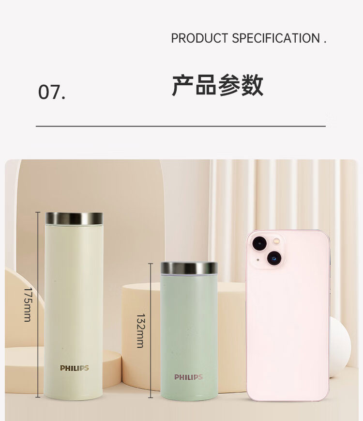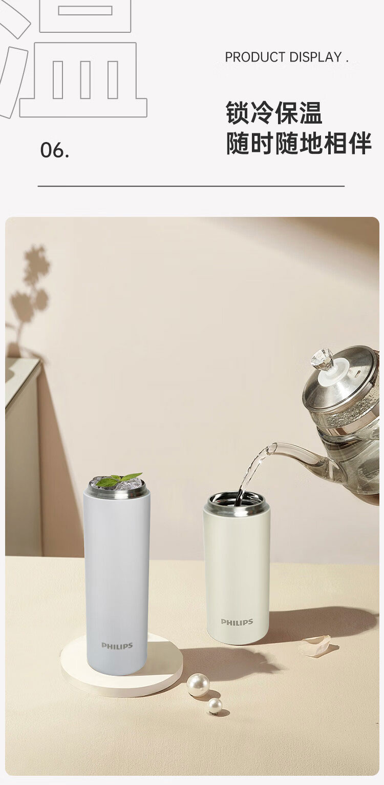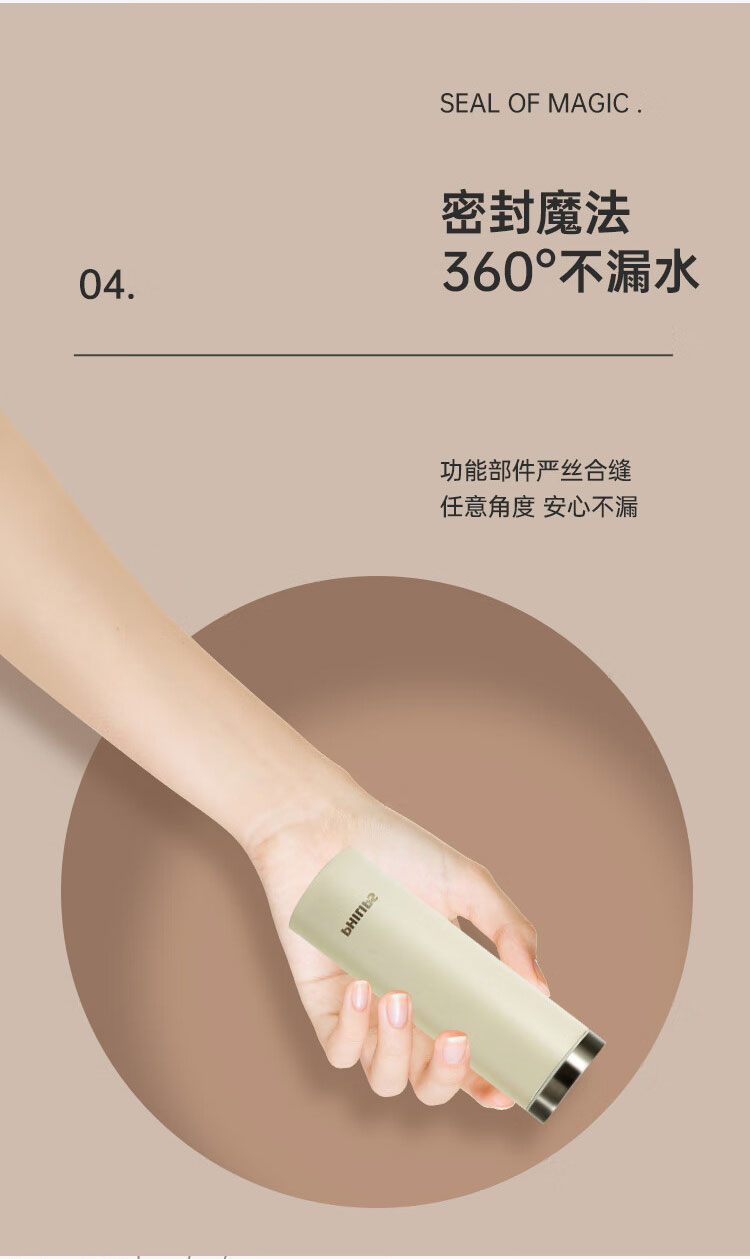 飞利浦PHILIPS保温杯316不锈钢随身杯便携杯茶水分离口袋杯办公300ml AWP2565 2564