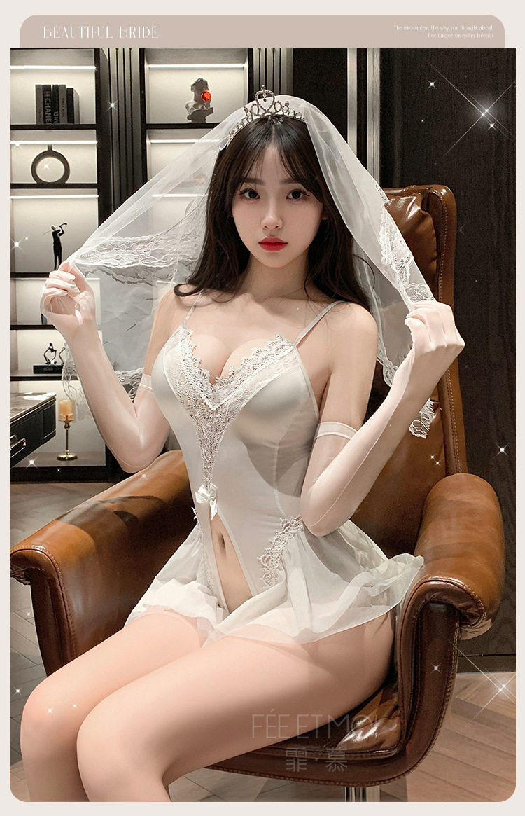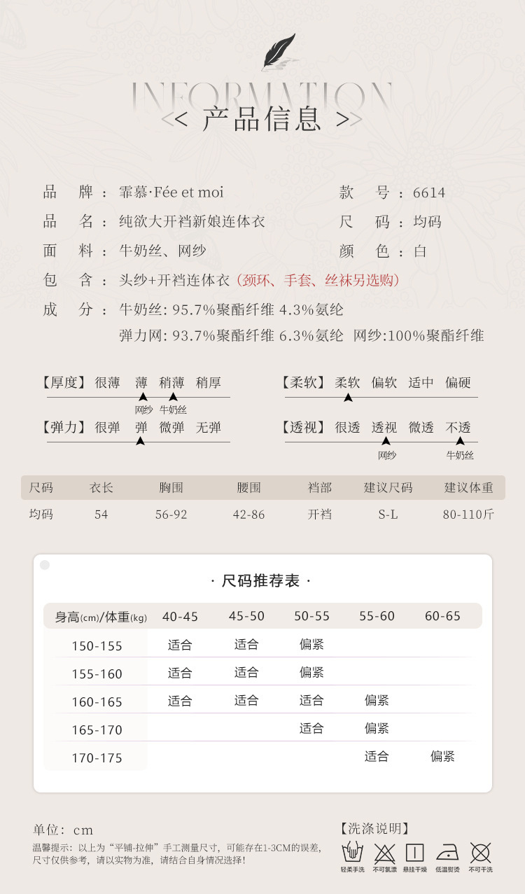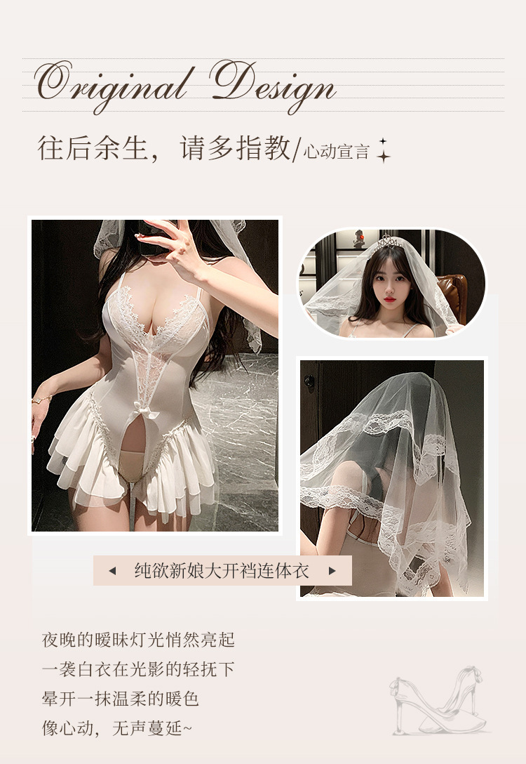 【新娘装】霏慕 情趣内衣 纯欲大开裆新娘连体衣6614