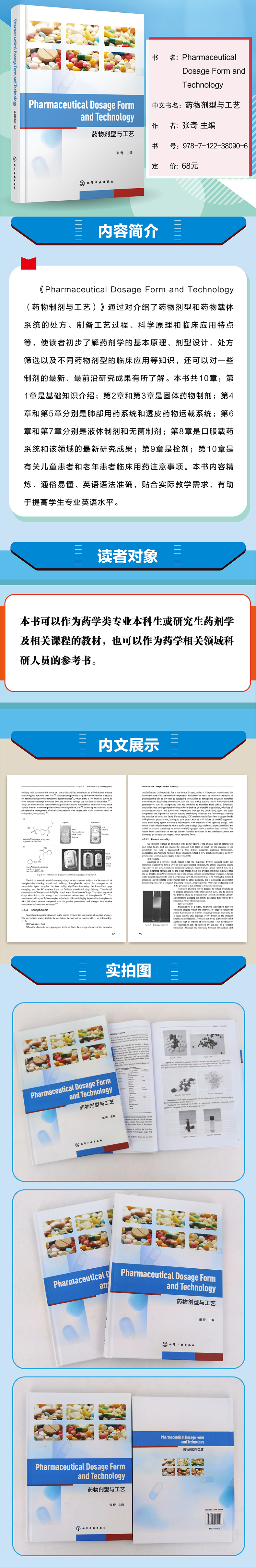 药物剂型与工艺 Pharmaceutical Dosage Form and Technology 英文 张奇 药物剂型药物载体制备工艺流程 本科研究生药学专业教材
