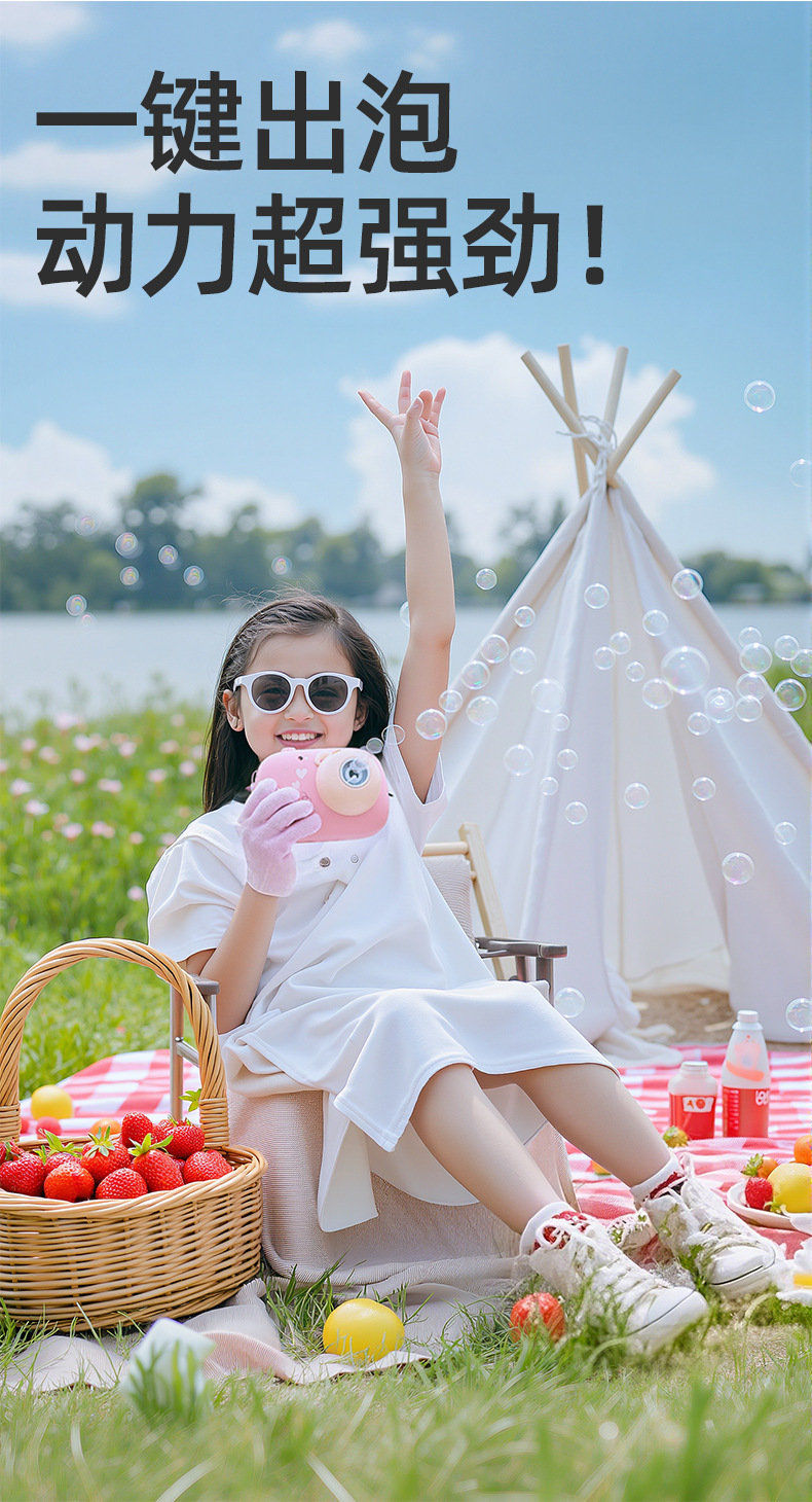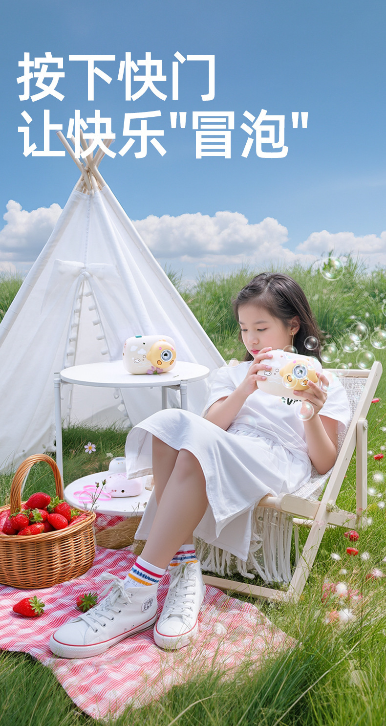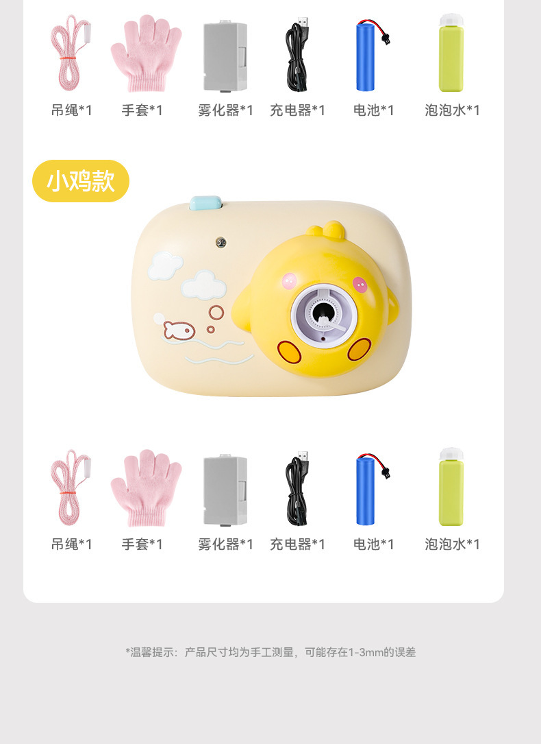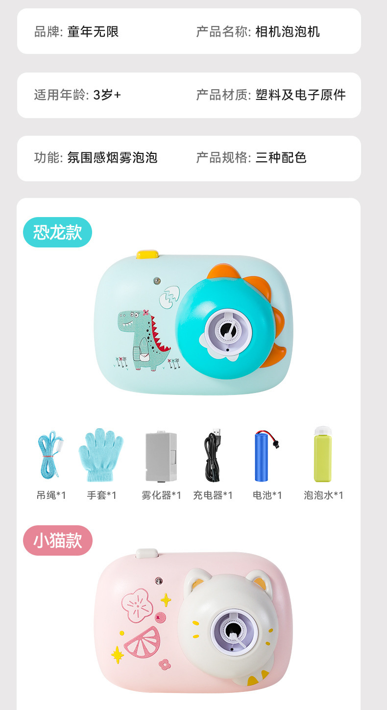 onshine照相机造型泡泡机儿童手持烟雾全自动充电女孩六一儿童节礼物
