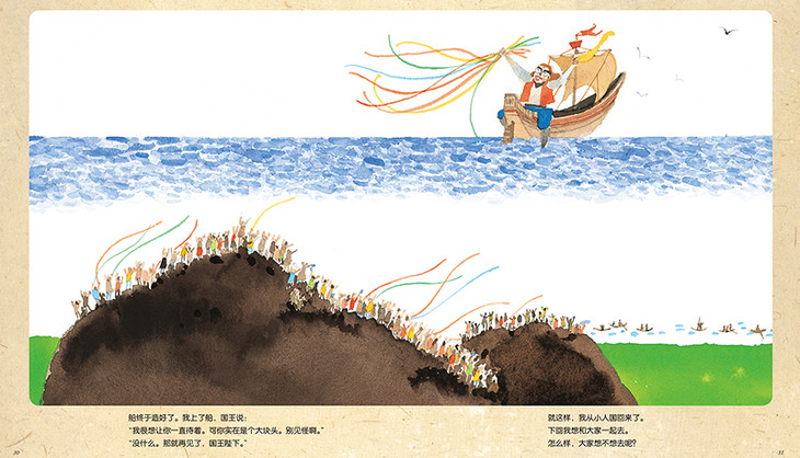 书中将《格列佛游记》中的“格列佛游小人国”改写成绘本故事。