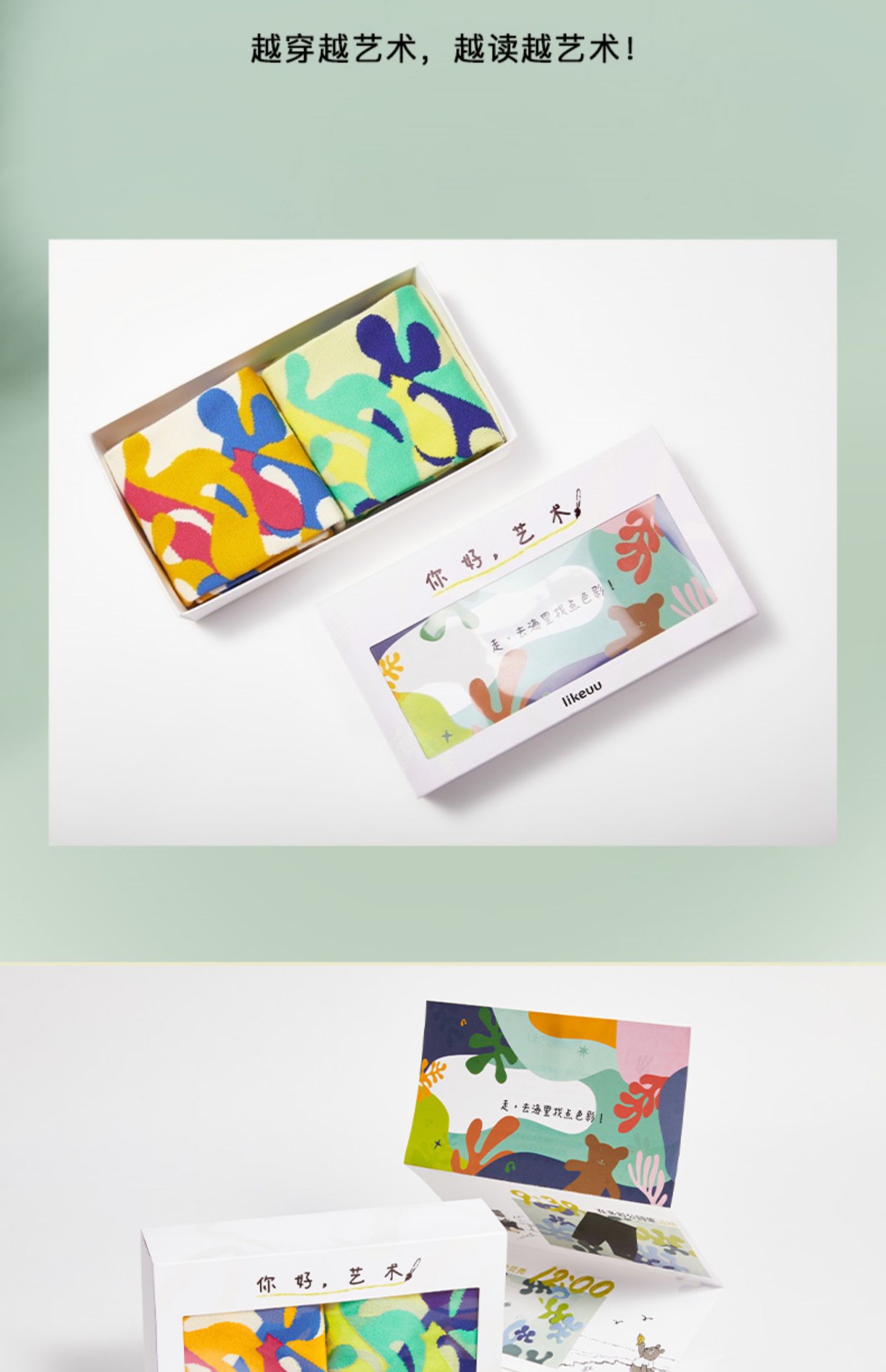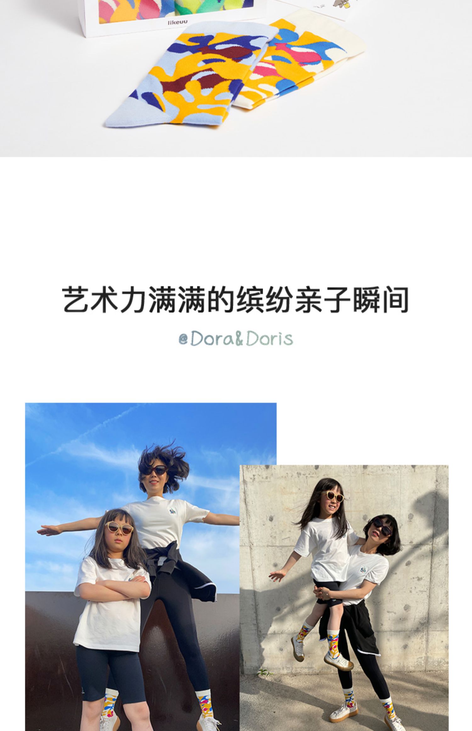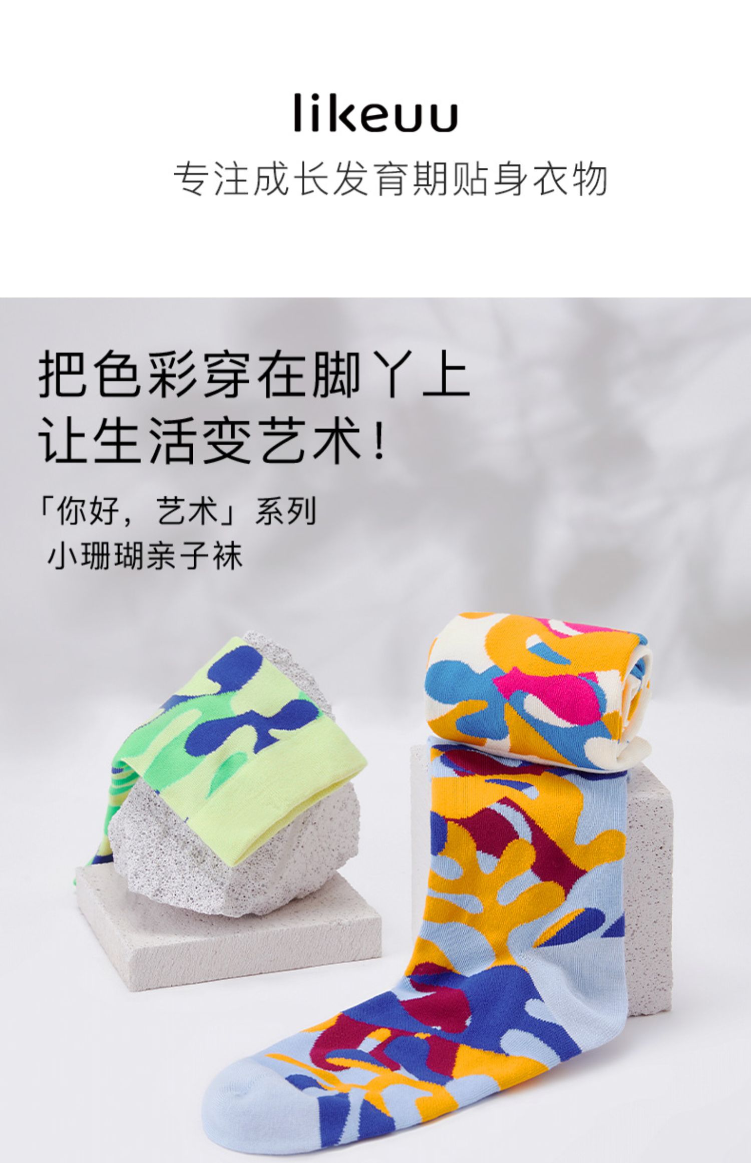 ubras旗下likeuu你好艺术联名款亲子中筒袜儿童精梳棉袜子34-38码