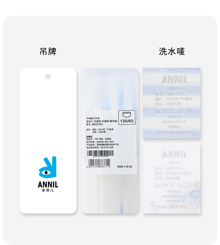 【实体店同款】男童平角裤三件装秋季新款安奈儿童装JB537231