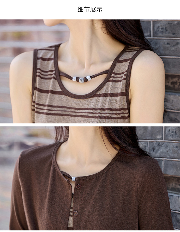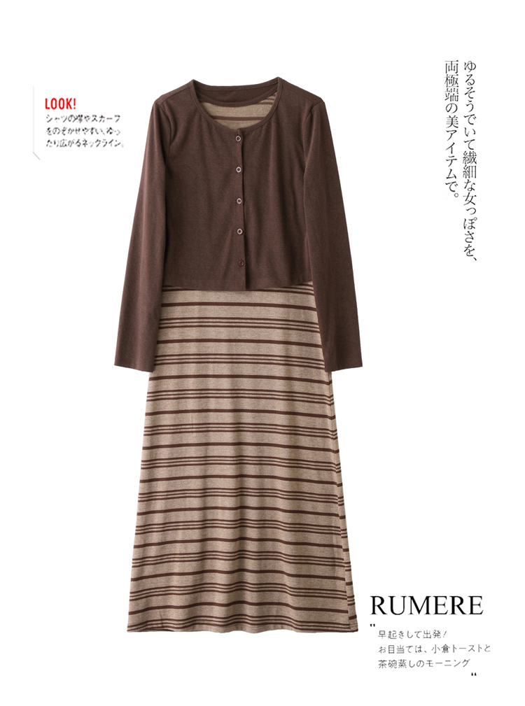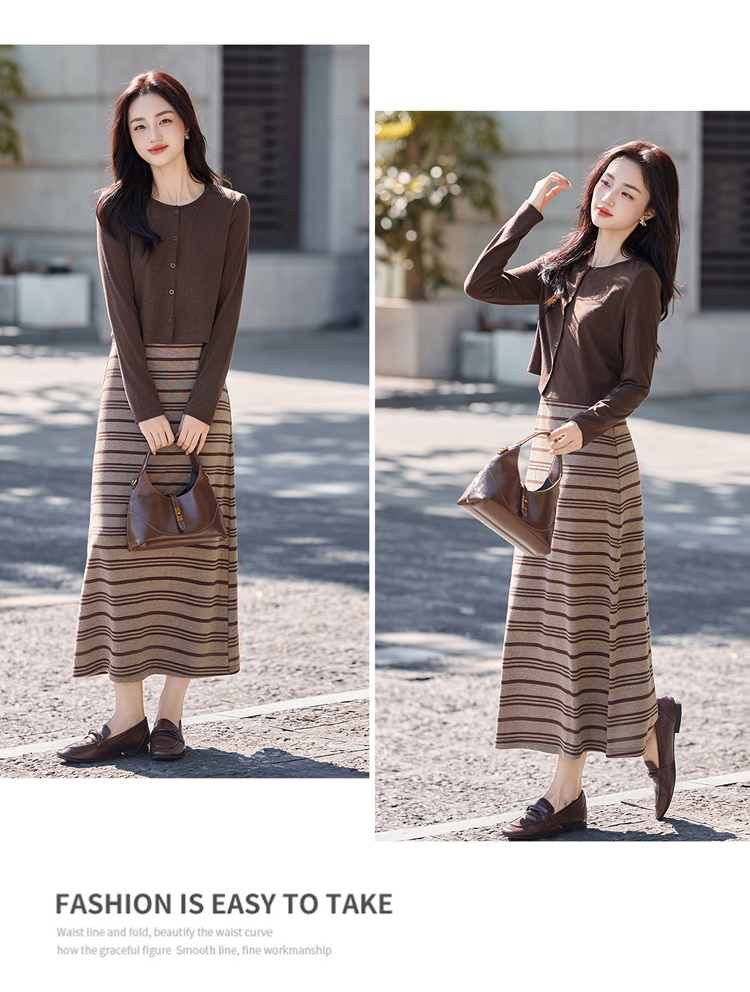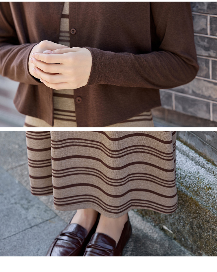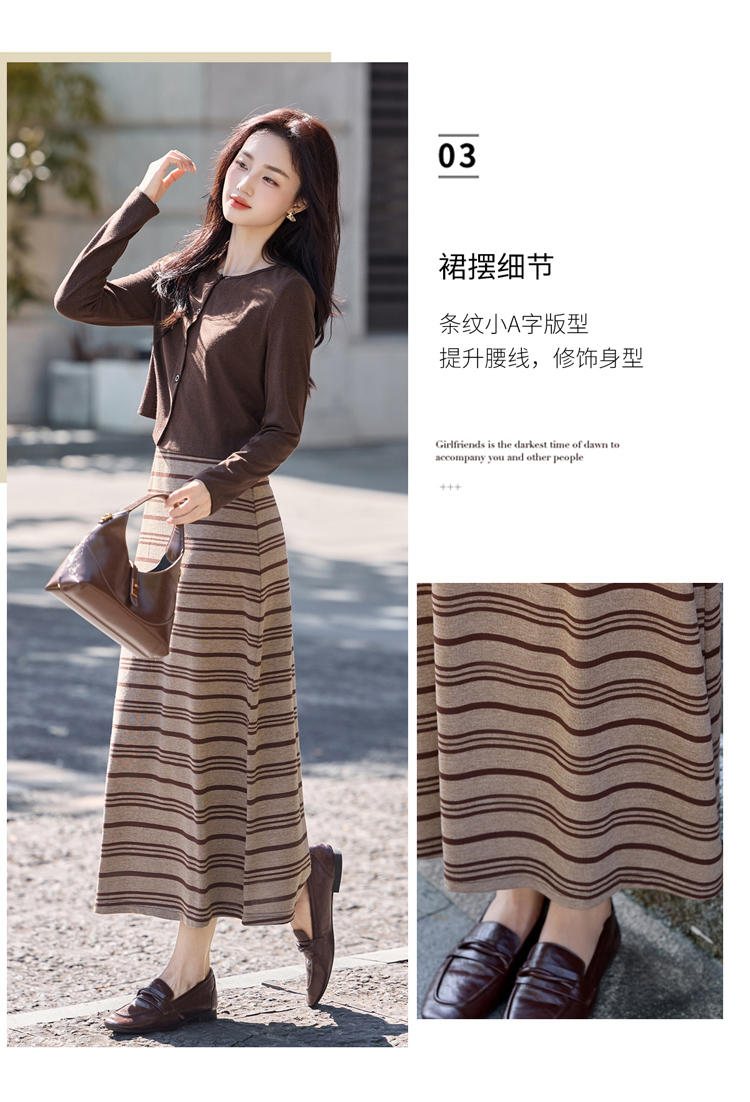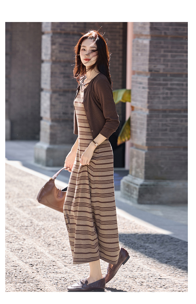 韩系气质条纹连衣裙套装,洋气减龄显瘦开衫背心裙两件套HR-HHYS8677