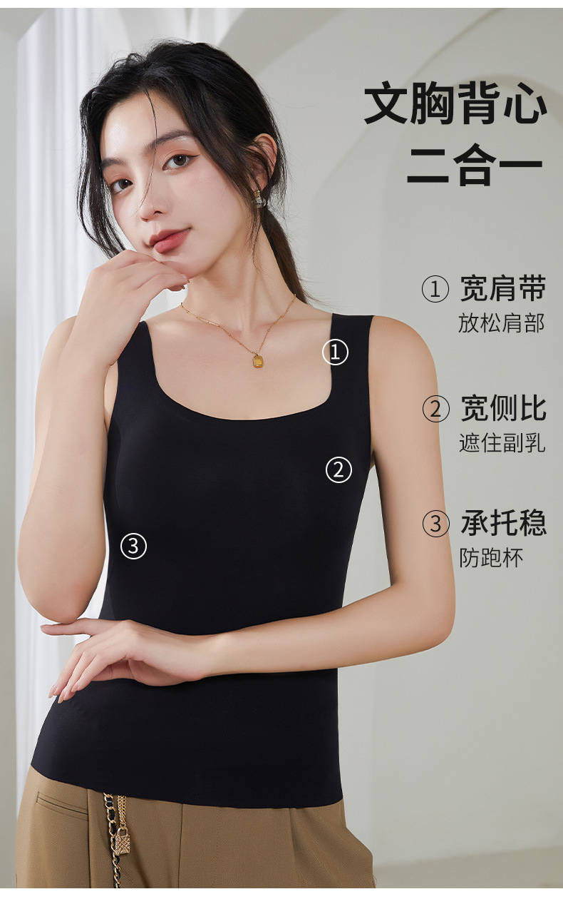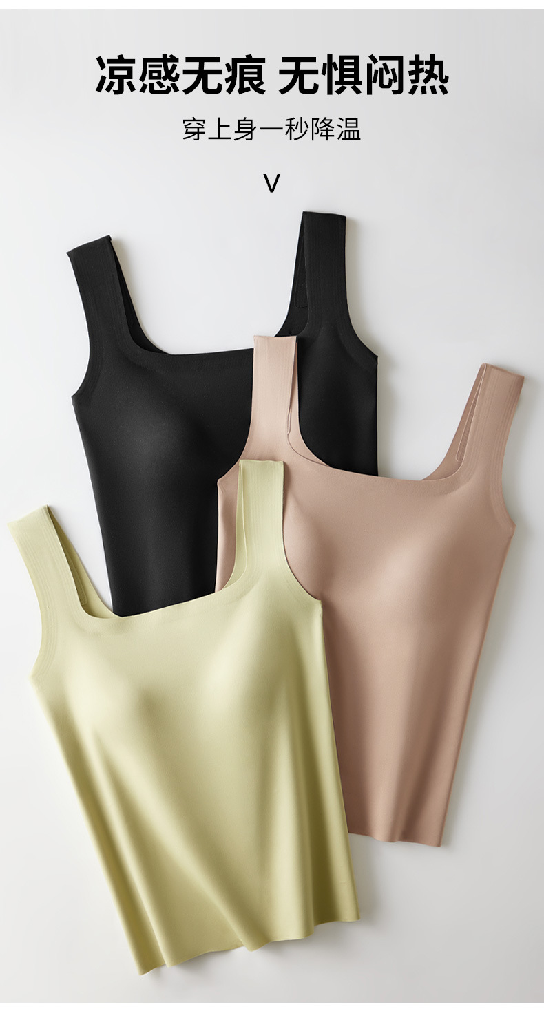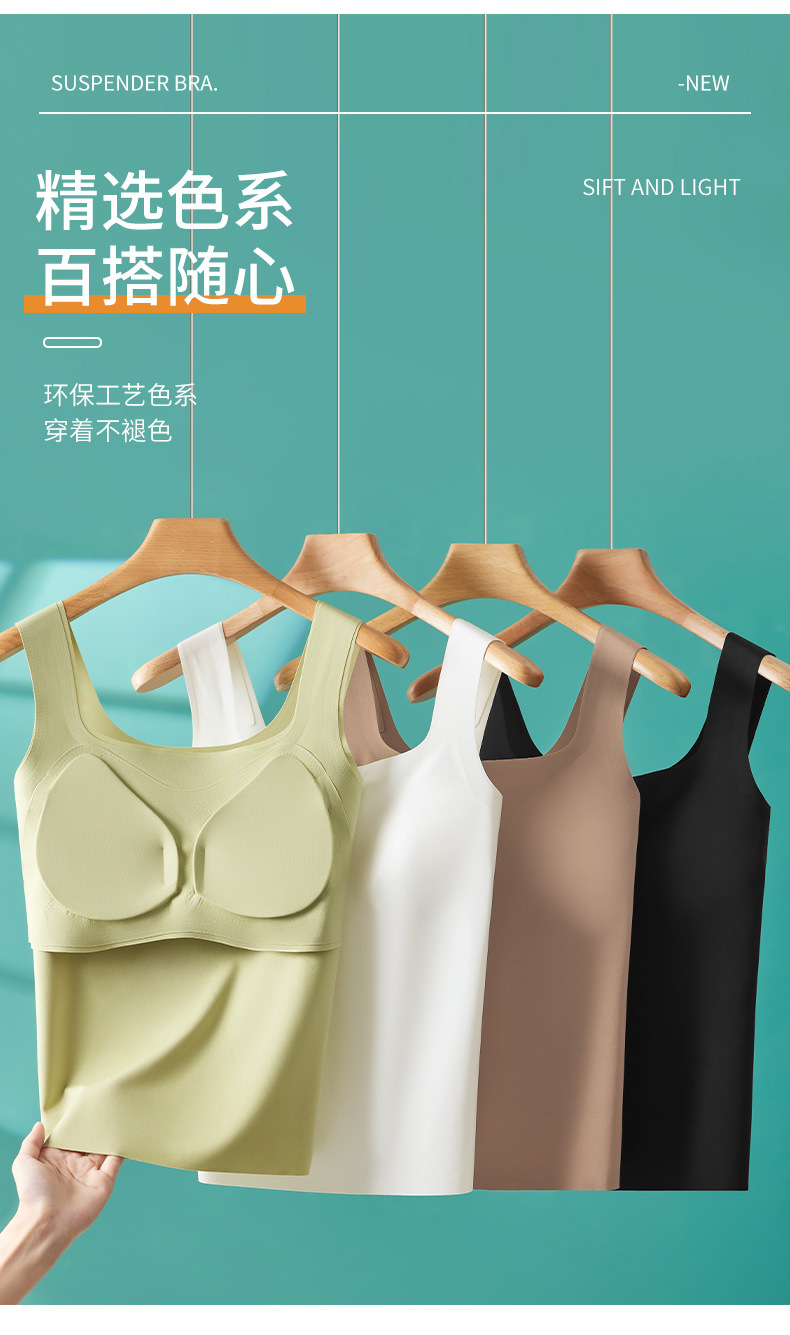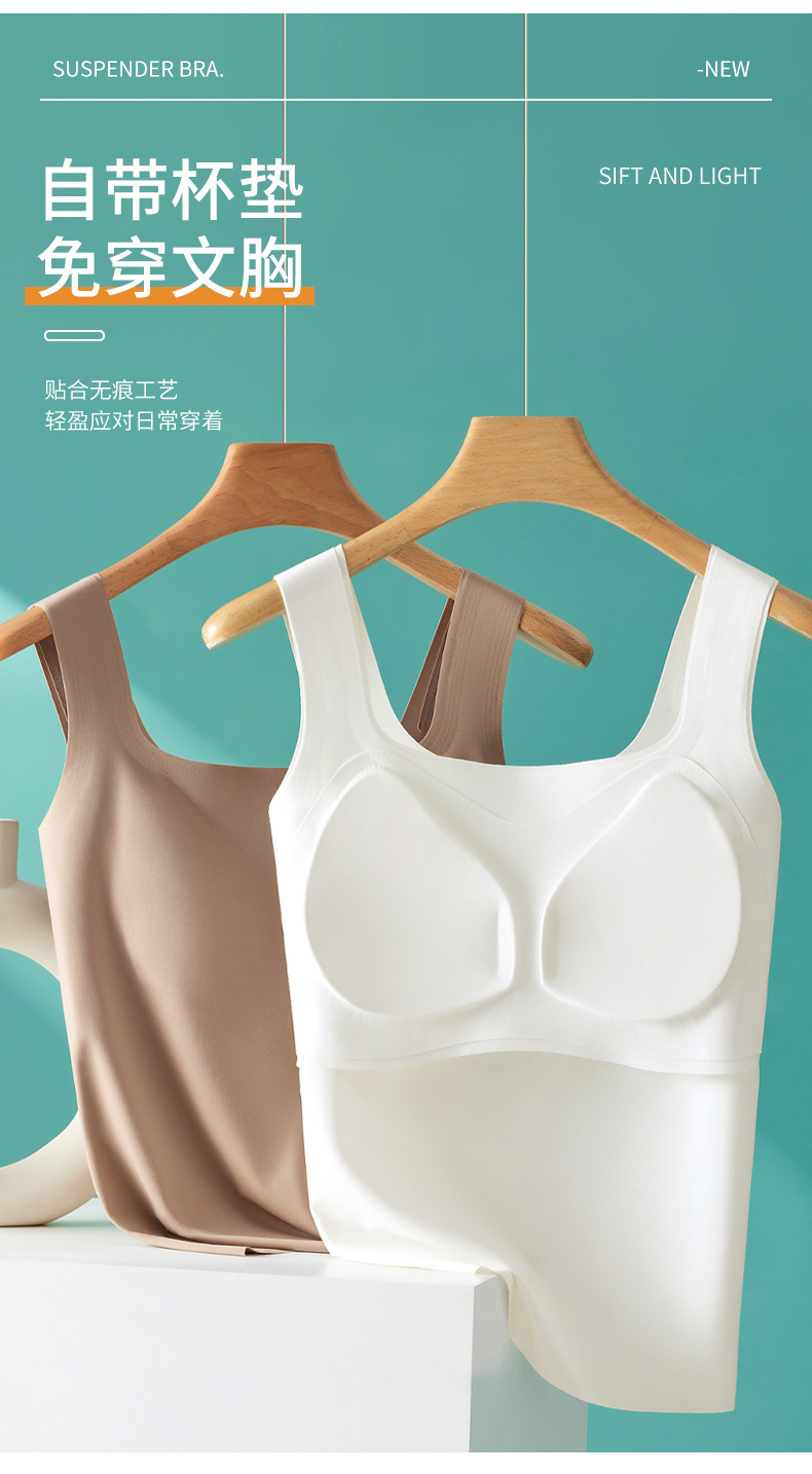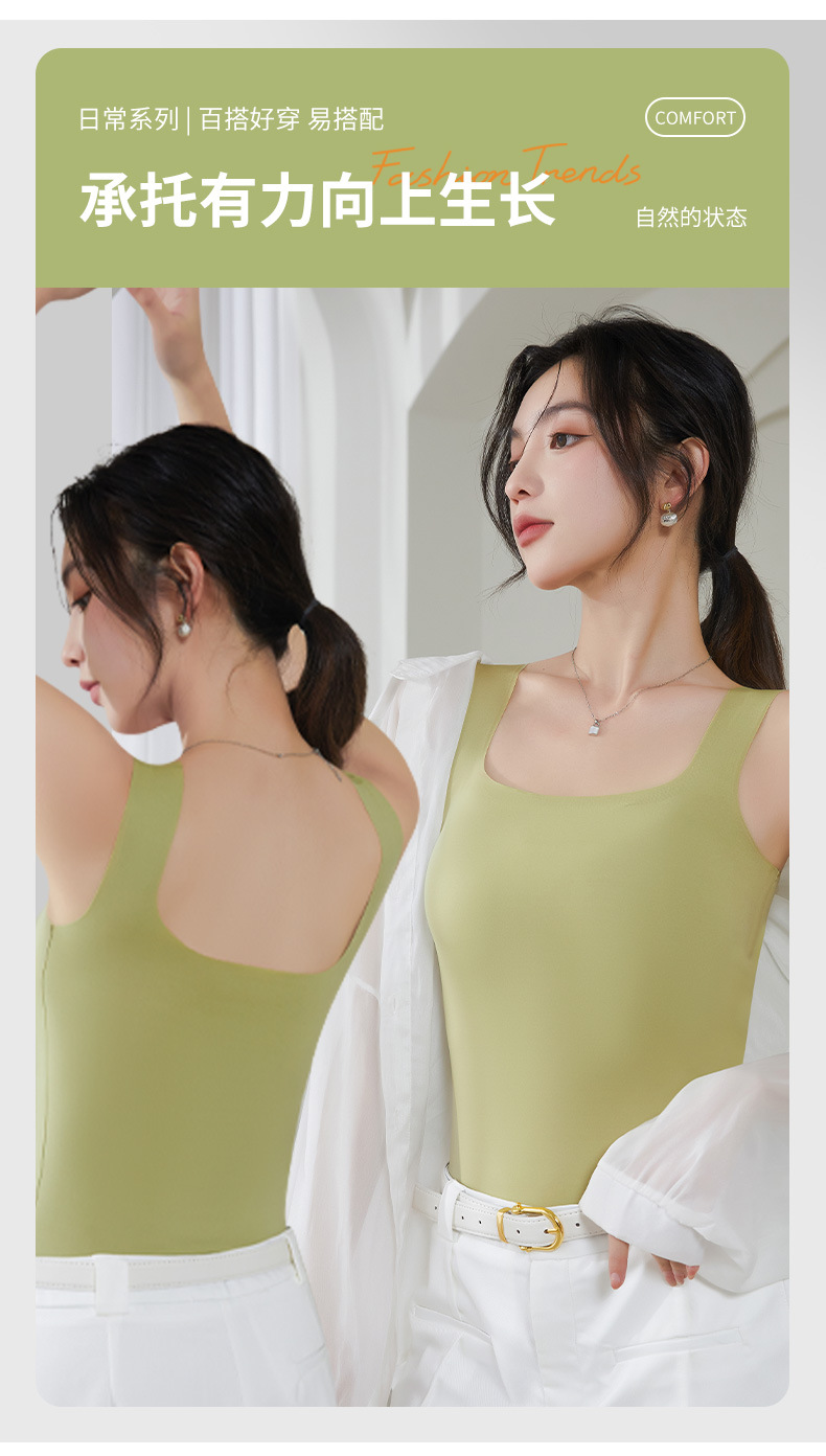 雀说 吊带背心女带胸垫一体宽肩带薄款内搭美背无痕962