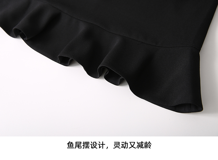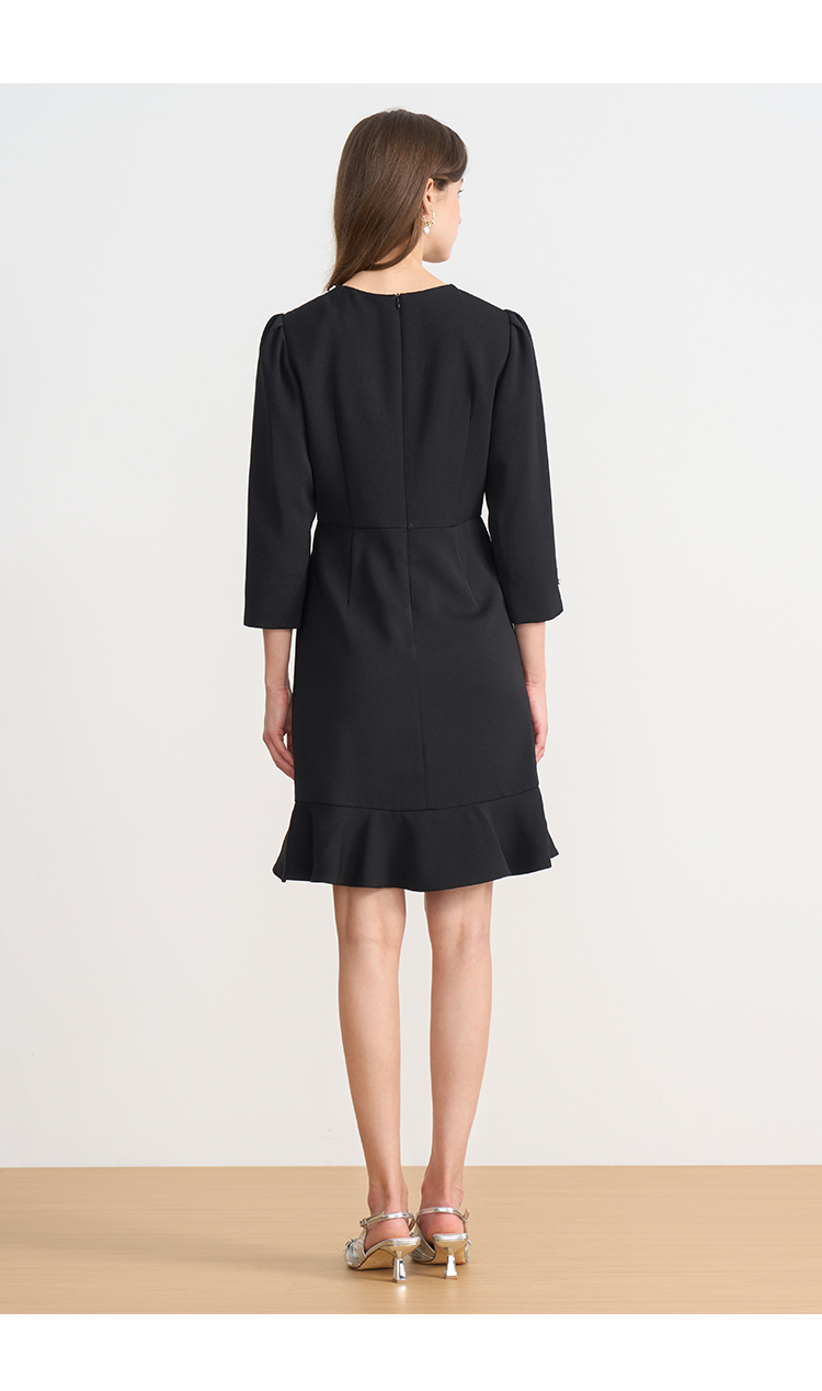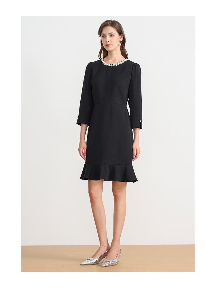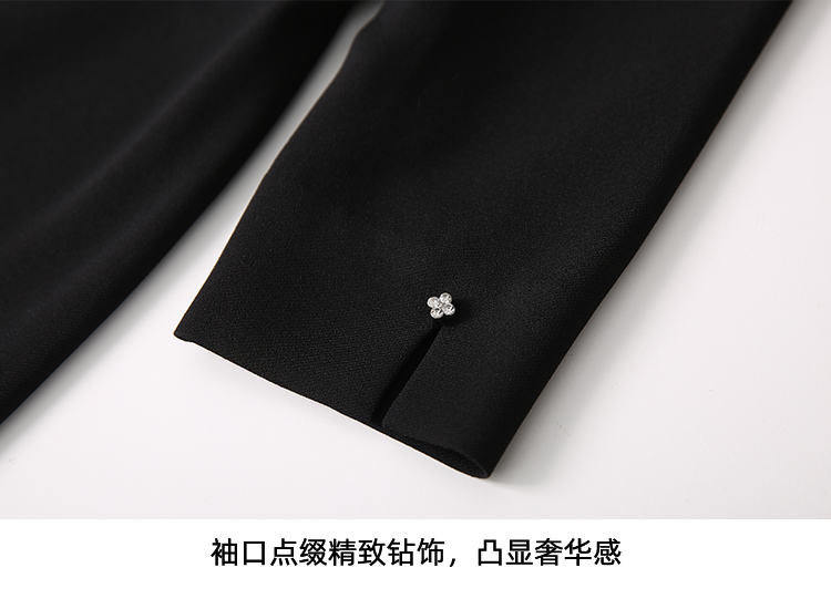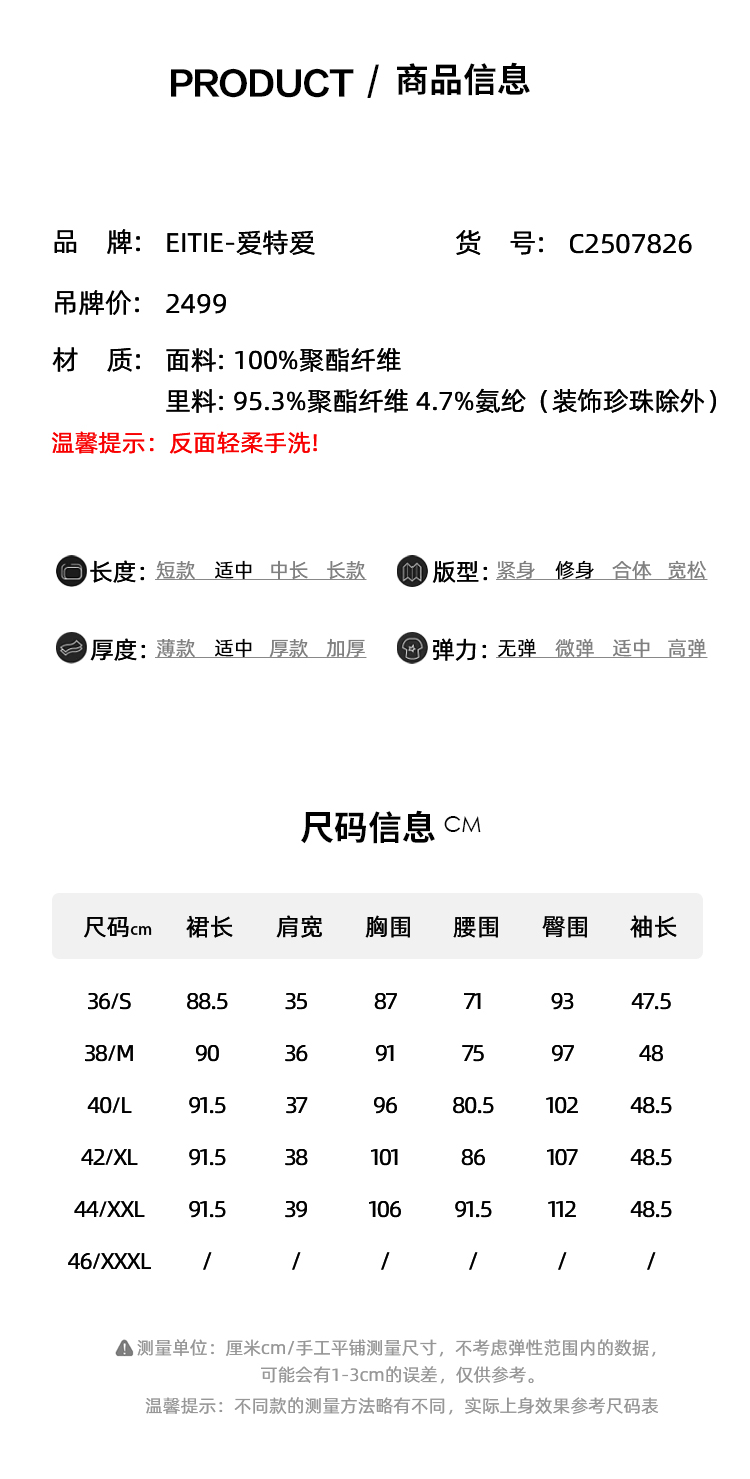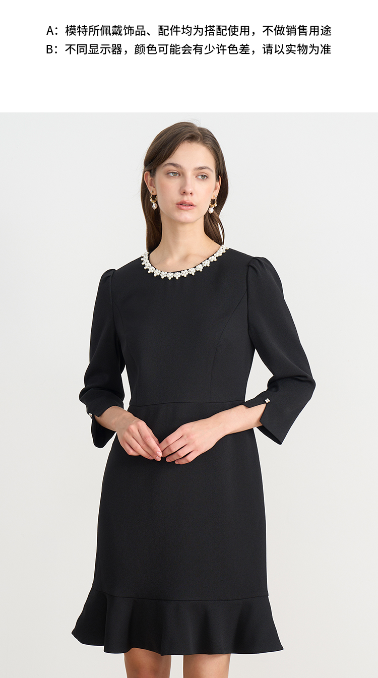 EITIE爱特爱千金气质钉珠圆领小香风鱼尾黑色2025秋季新款连衣裙C2507826