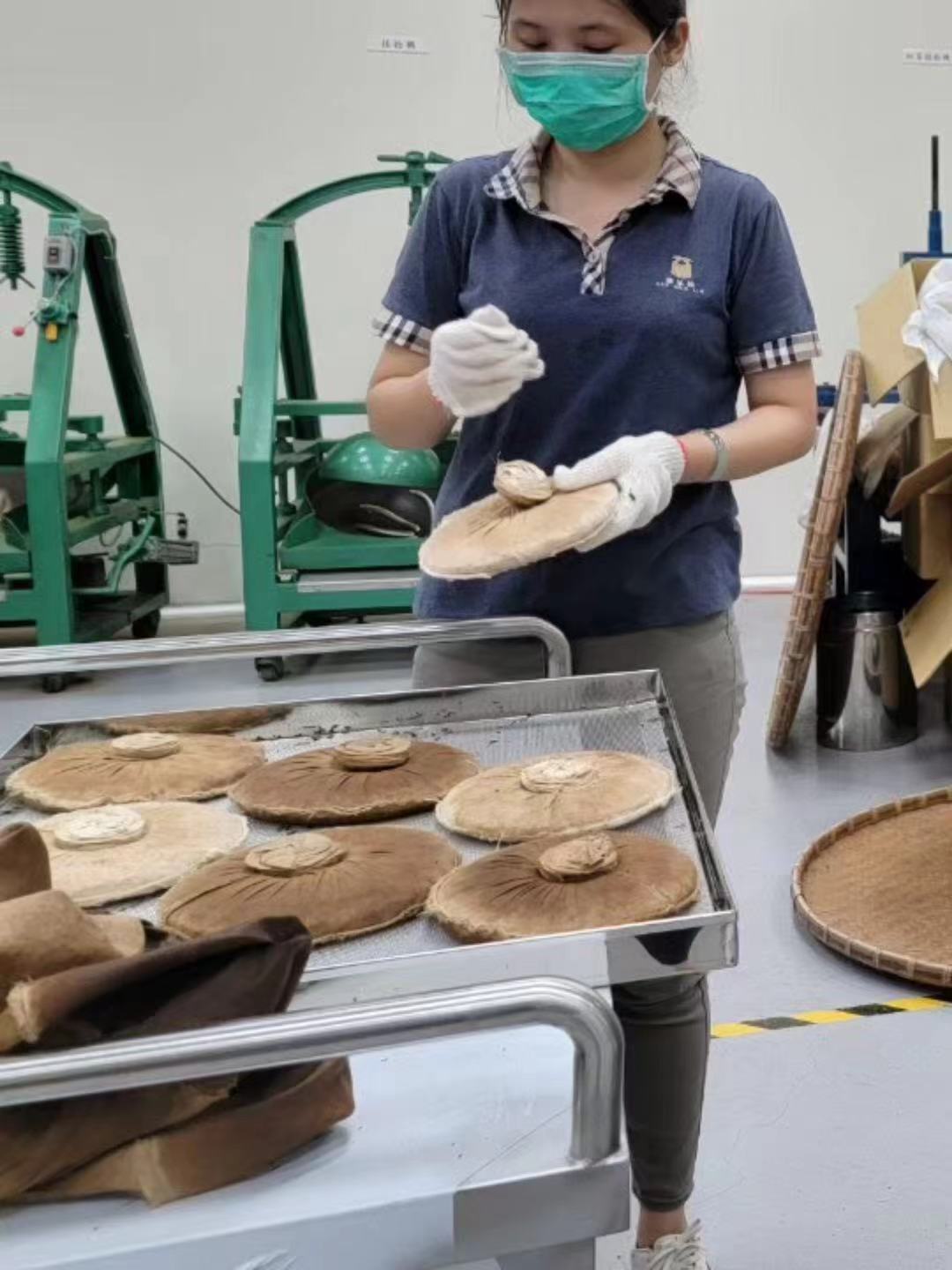 台湾阿里山高山茶乌龙茶饼开始压制、没有用油压机器压制(易压扁缺少活性不利转化内部水分不易干燥排出不利久存)采石头压制、此茶饼干茶翠绿、鲜爽型的原味茶饼花香高昴、低温三次慢干、锁住原茶香、新茶好喝、陈年多了年份茶转化后韵更佳、好工艺下的乌龙茶稳定性佳的是好茶、好茶值得存放当老茶、10月9日台湾寄出、20日寄到、以秋茶压制、不到300饼、秋茶比较便宜、因数量少、冬茶季时会再制冬饼