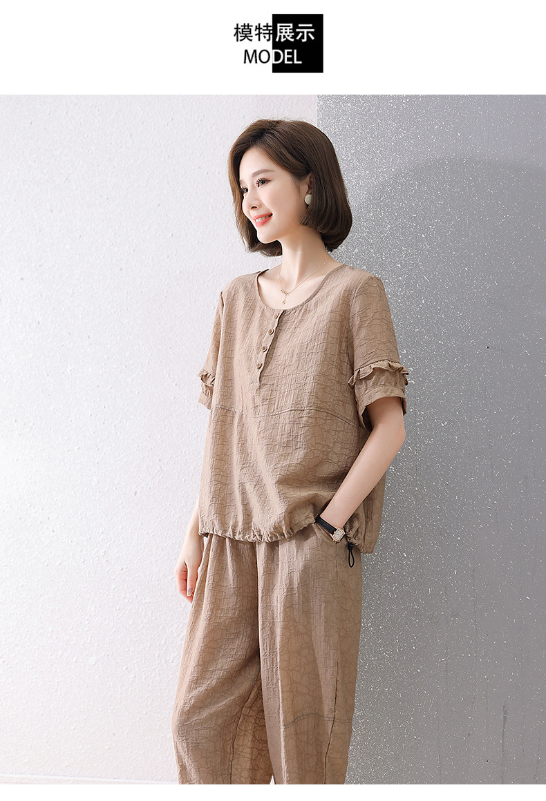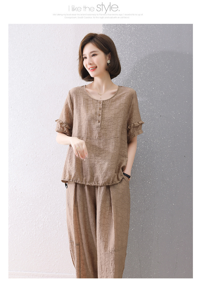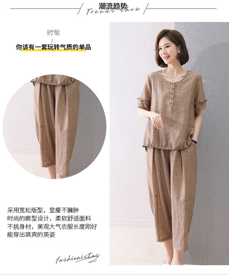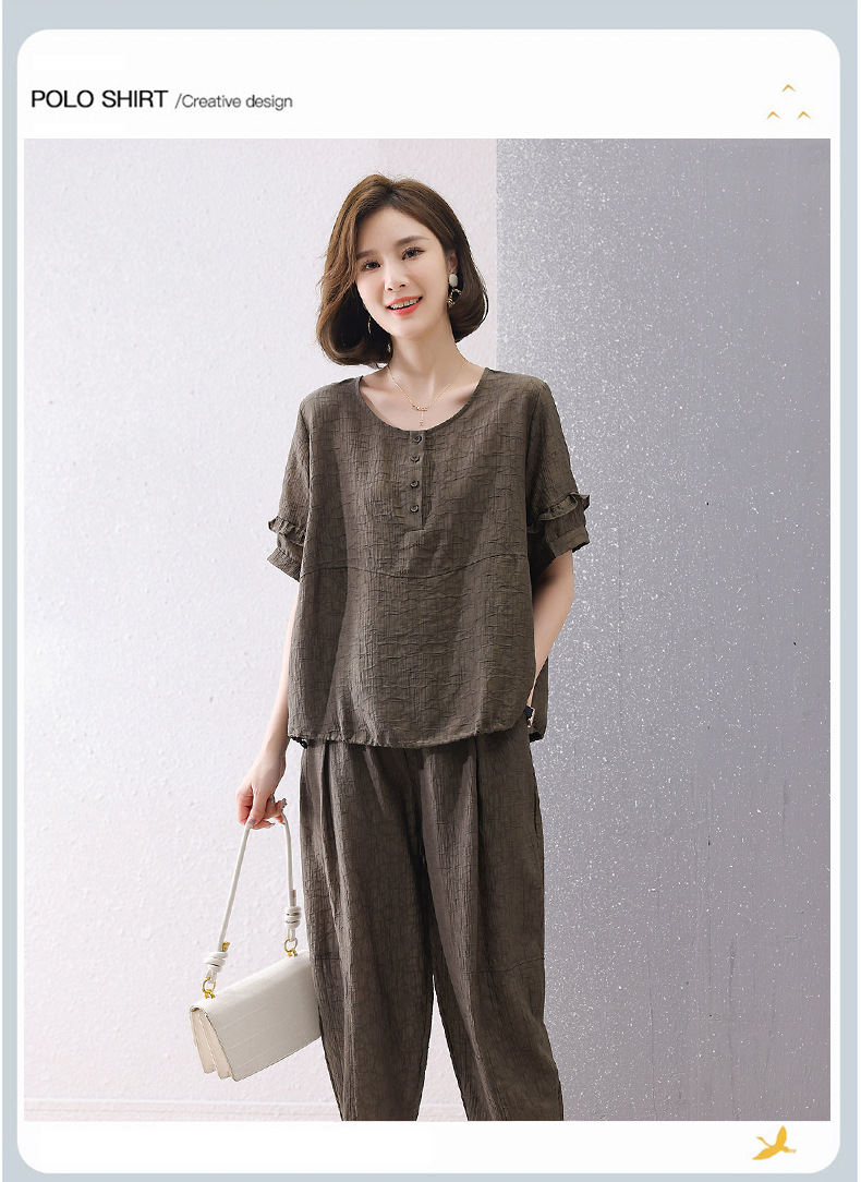 时尚休闲套装女,夏季新款女装韩版时尚气质天丝提花套装两件套HR-SSB2881