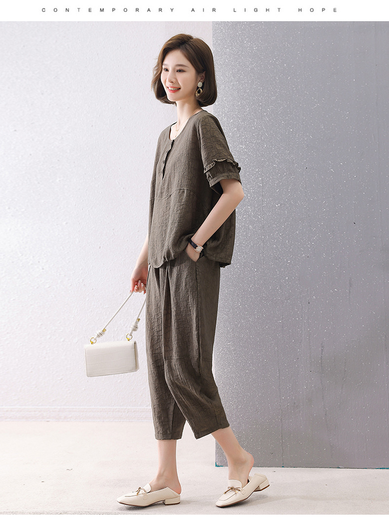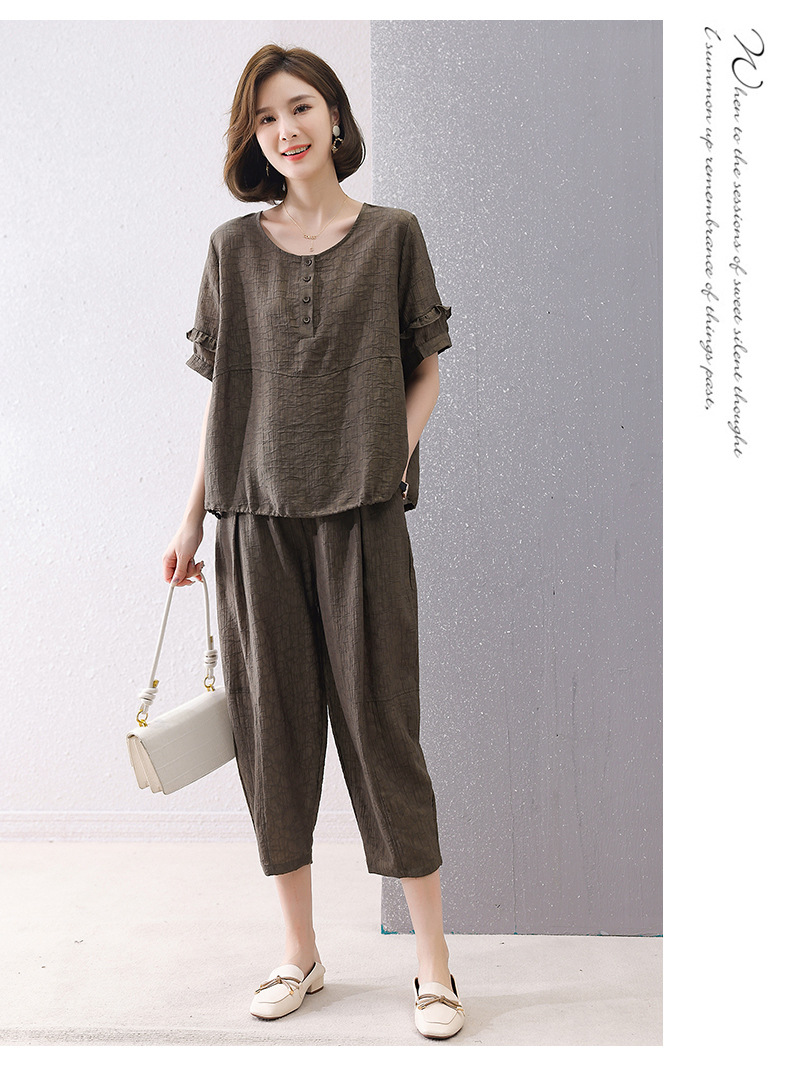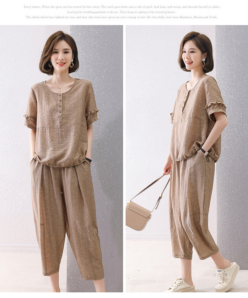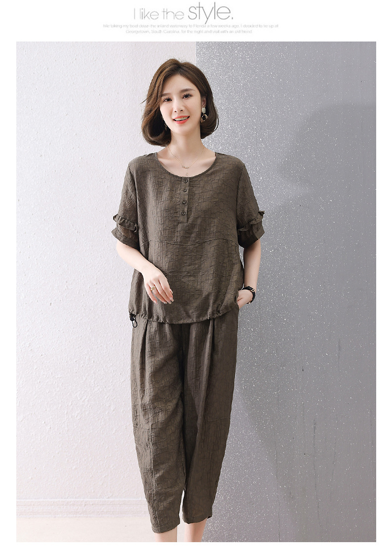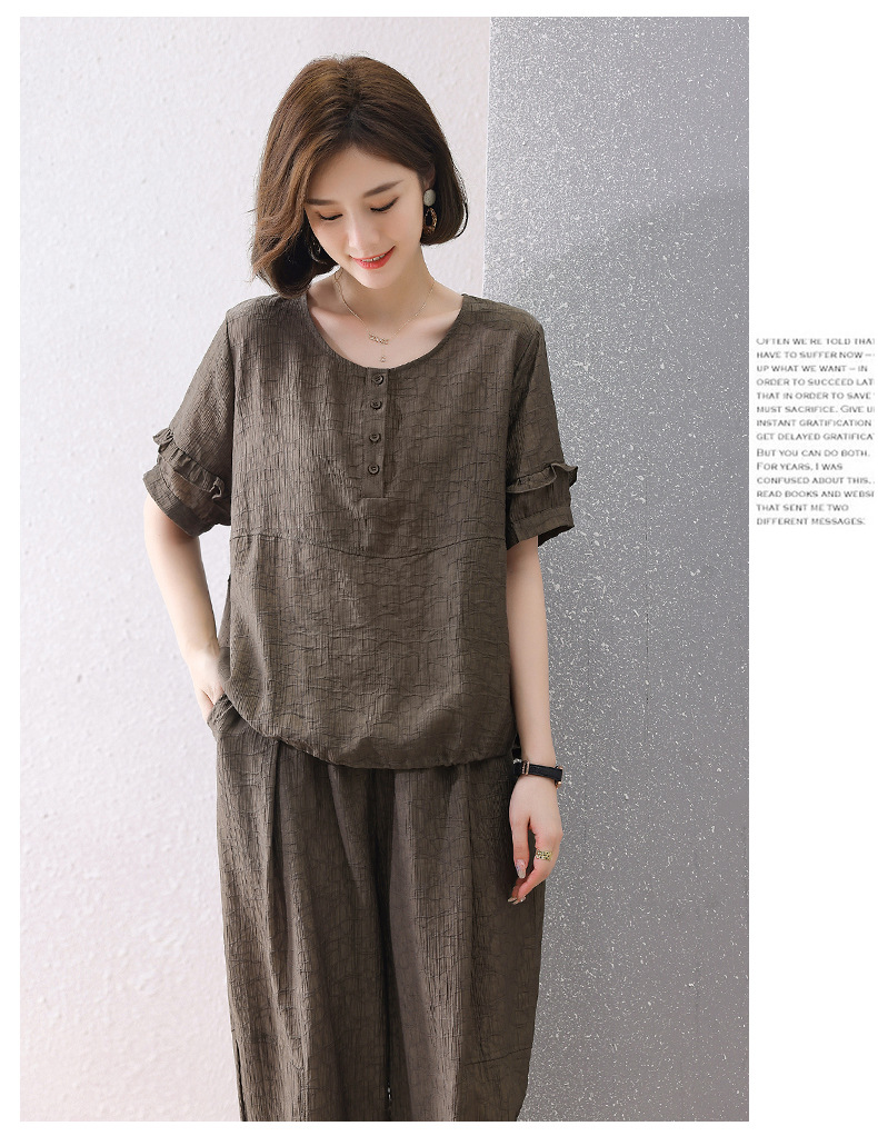 时尚休闲套装女,夏季新款女装韩版时尚气质天丝提花套装两件套HR-SSB2881