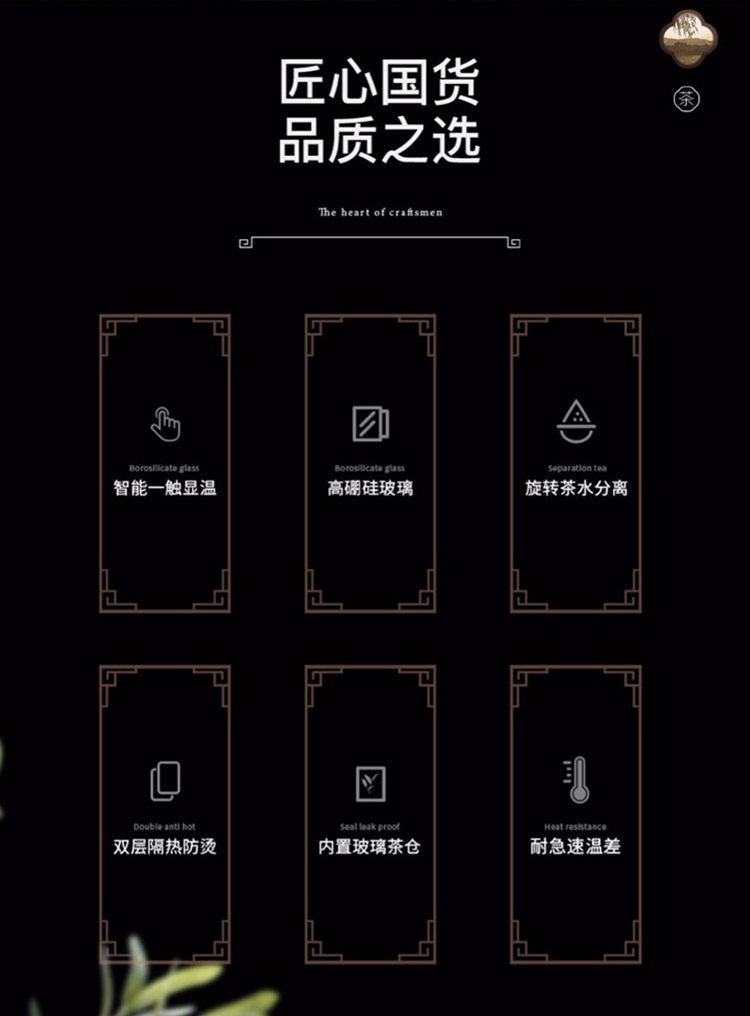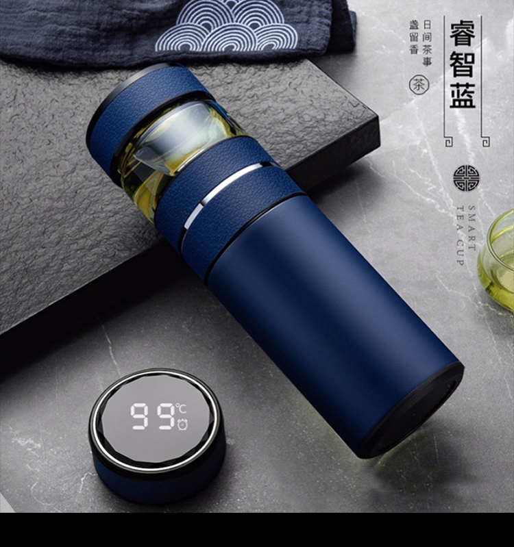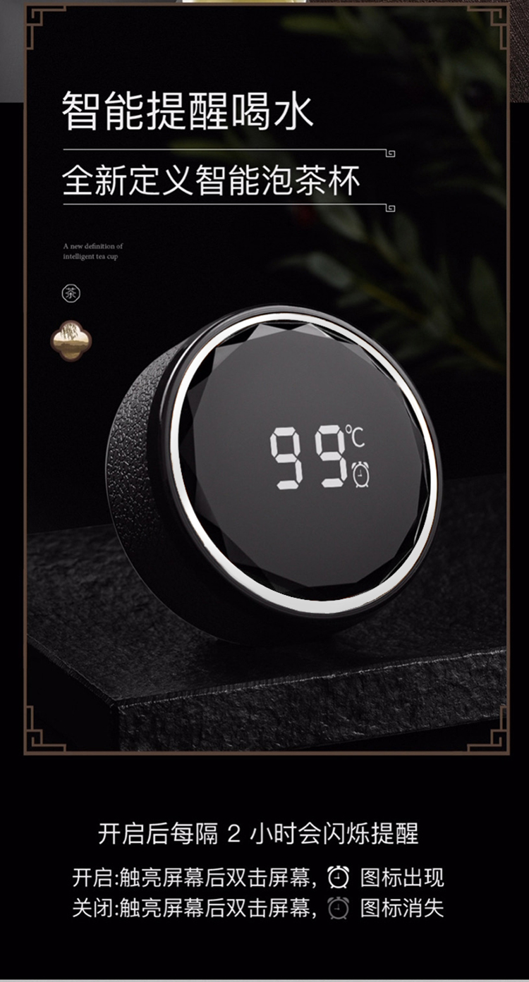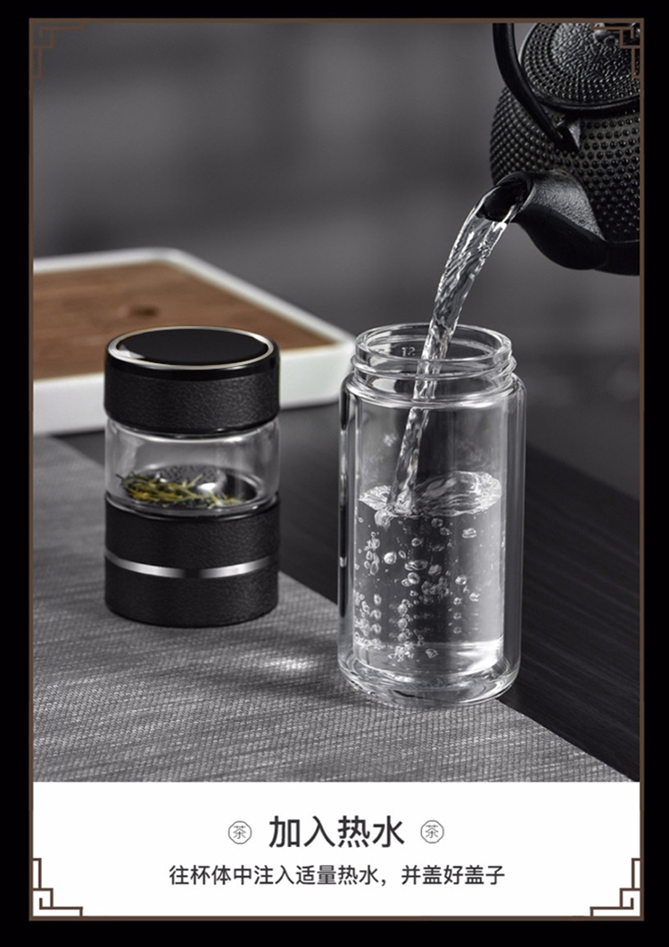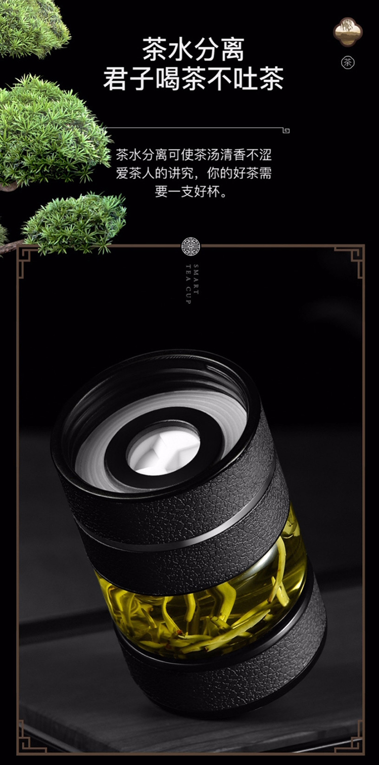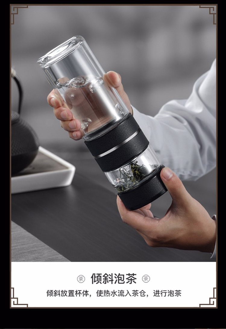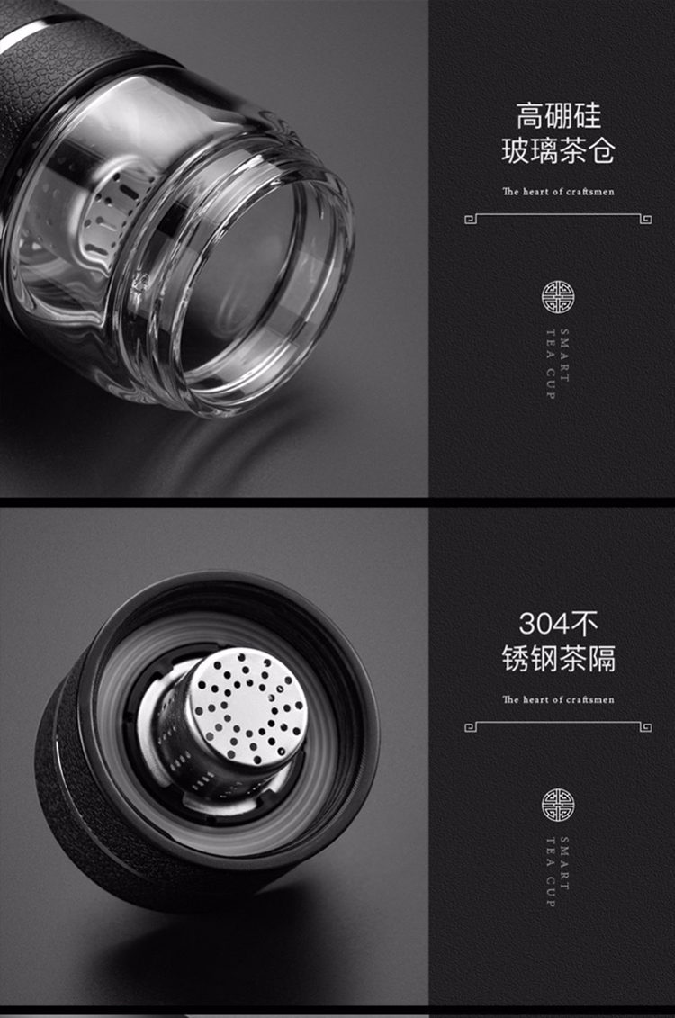 【可定制二代两用茶水分离杯套装】室内办公泡茶水杯 大容量触盖显温保温杯玻璃杯