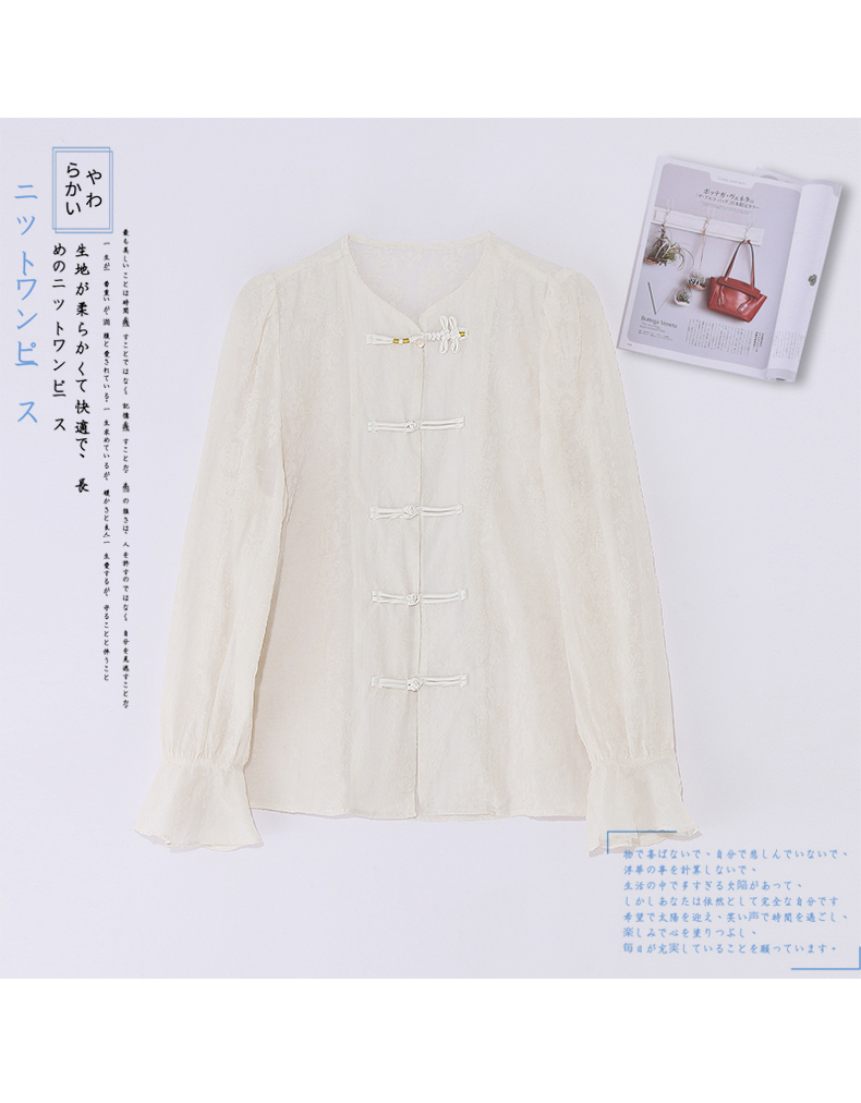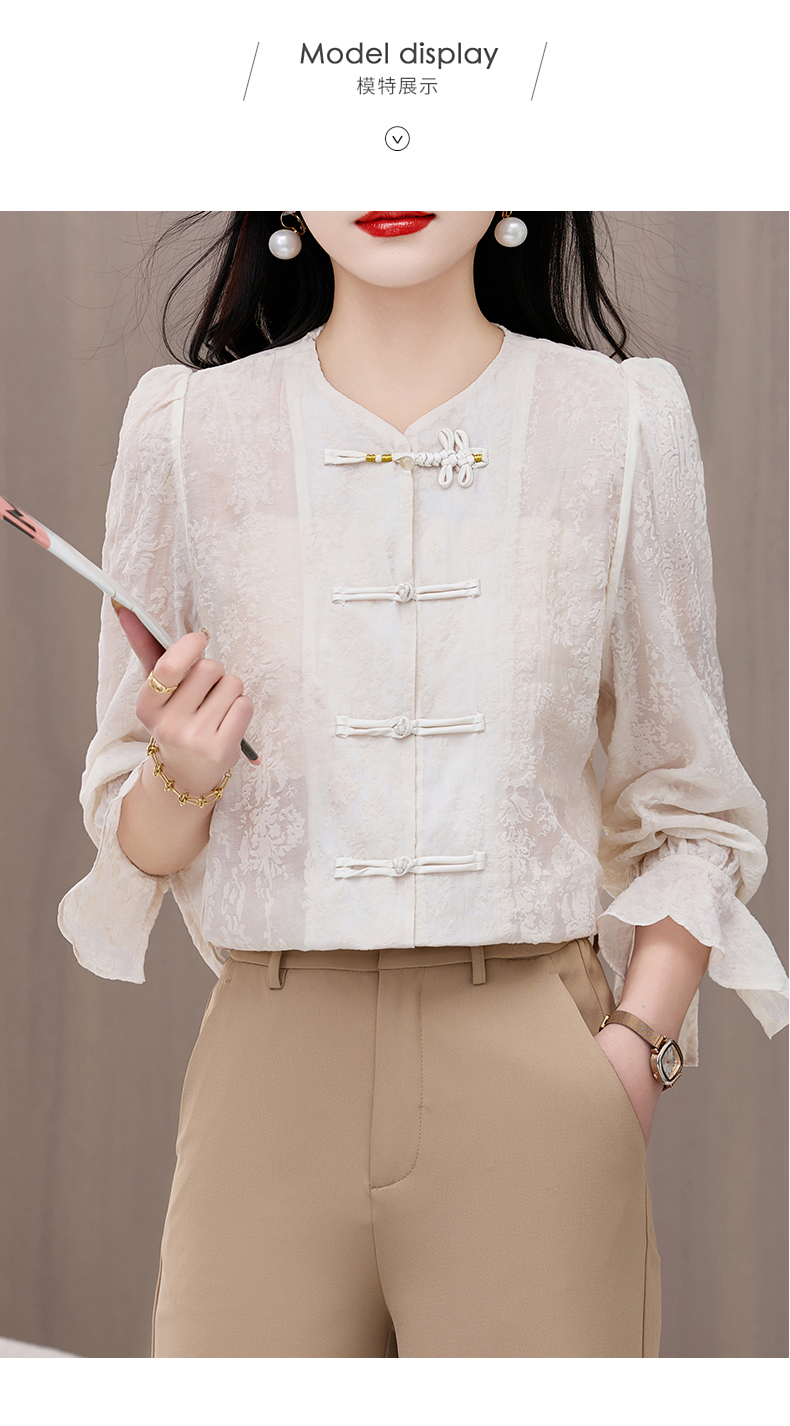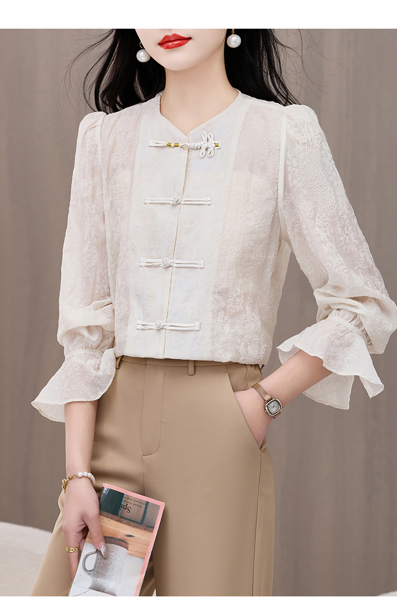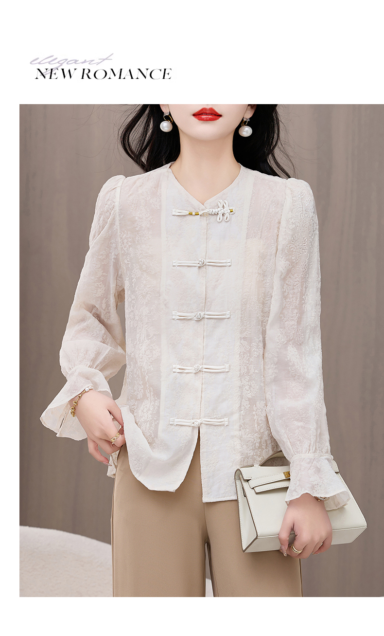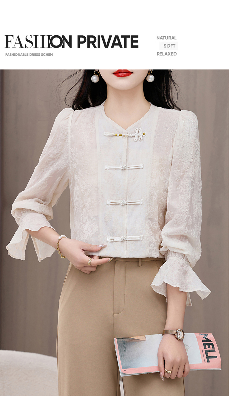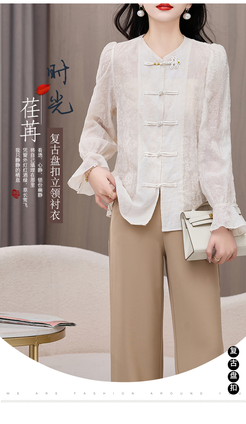 复古设计感,娃娃领长袖衬衫女小众春季新款宽松衬衣HR-HRYZ9615