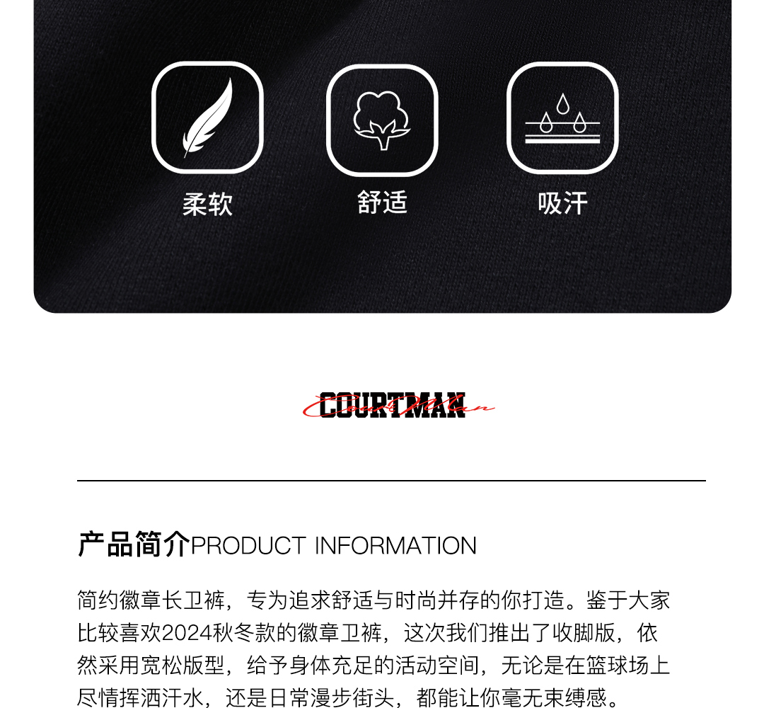 COURTMAN野球帝 运动束脚徽章宽松针织裤跑步训练篮球休闲卫裤男