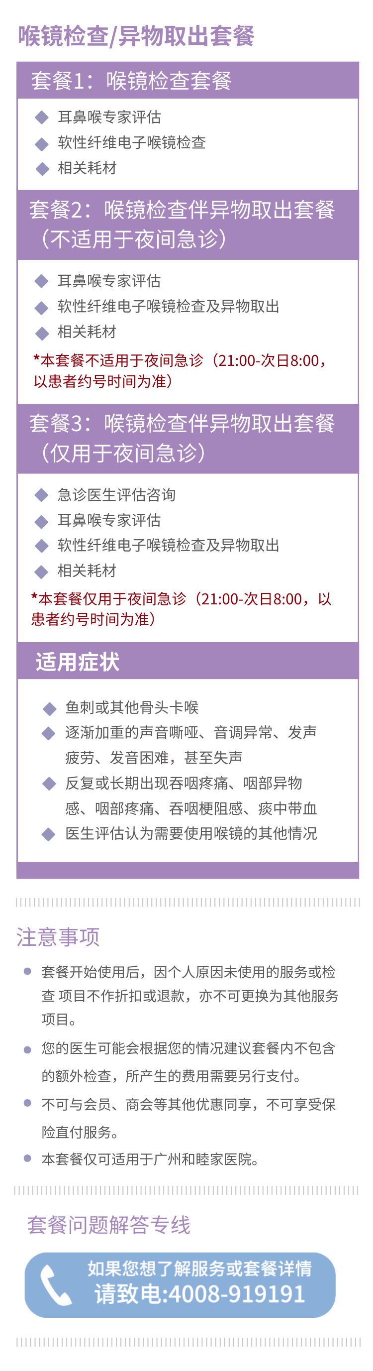喉镜检查/异物取出套餐(鱼刺卡喉/声音嘶哑/吞咽疼痛)_耳鼻喉科