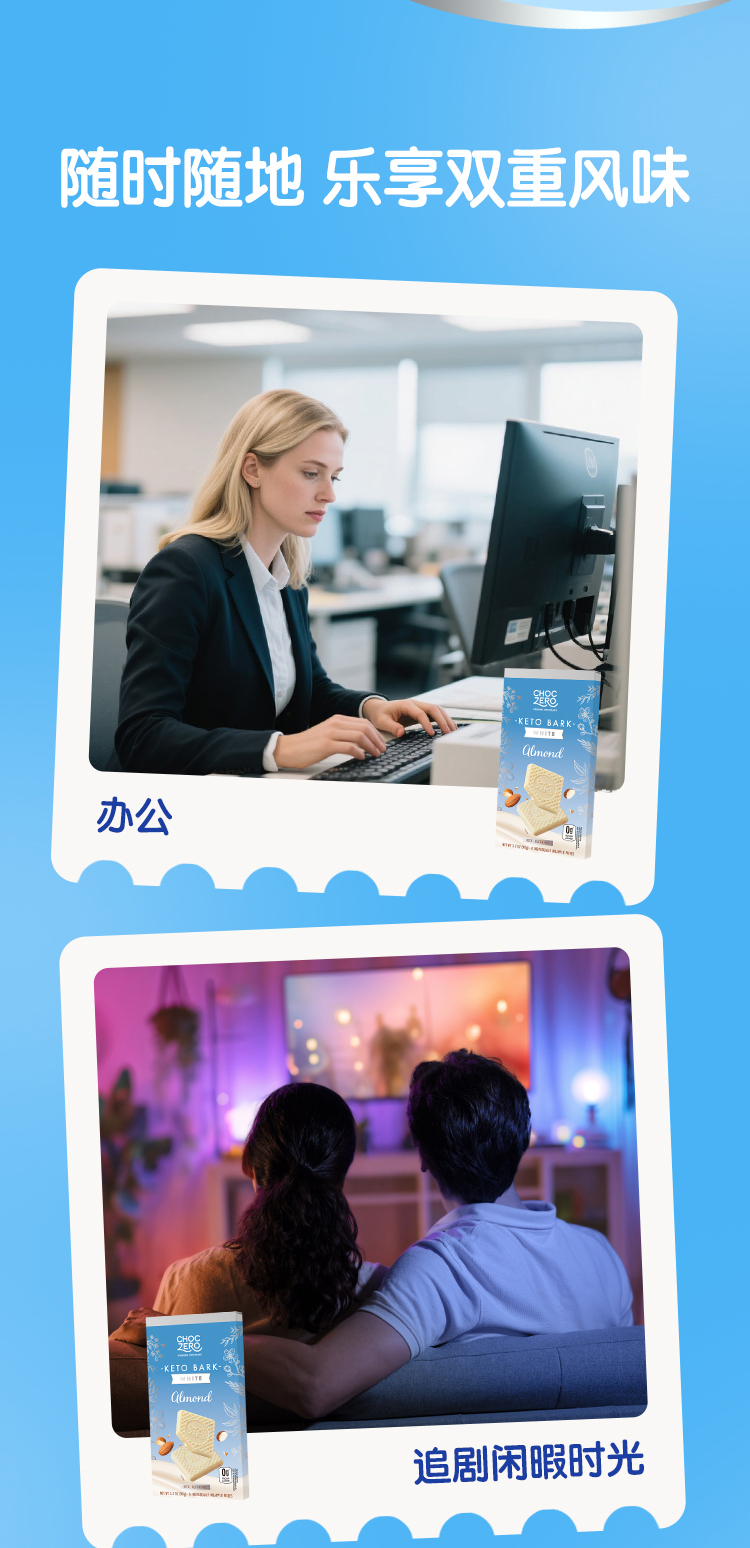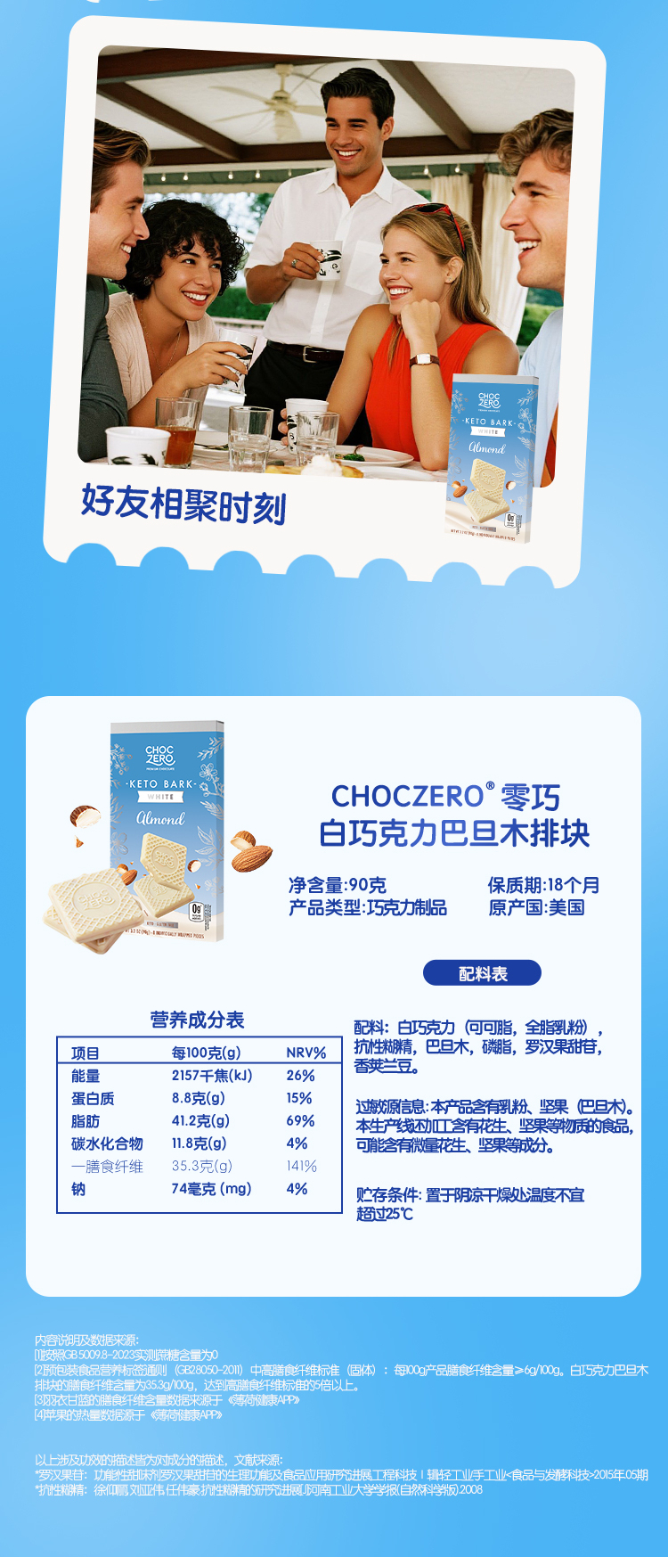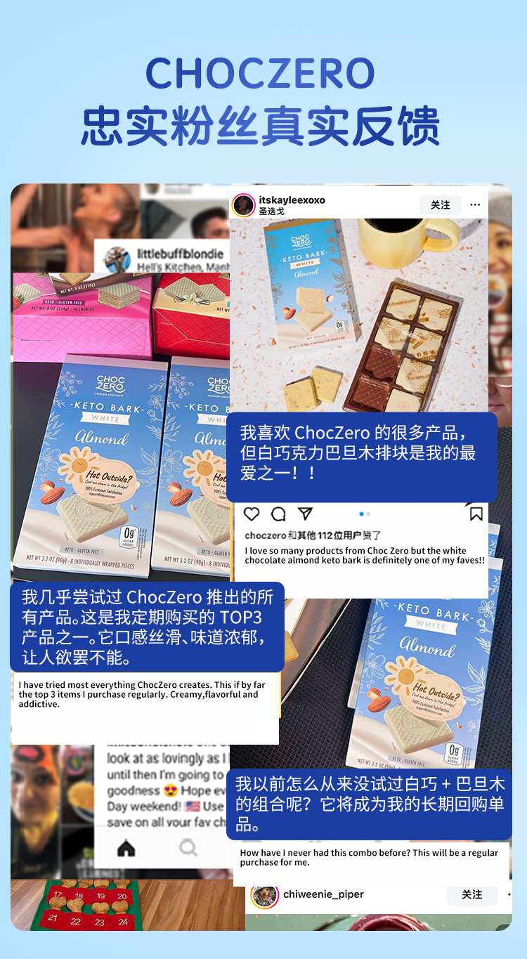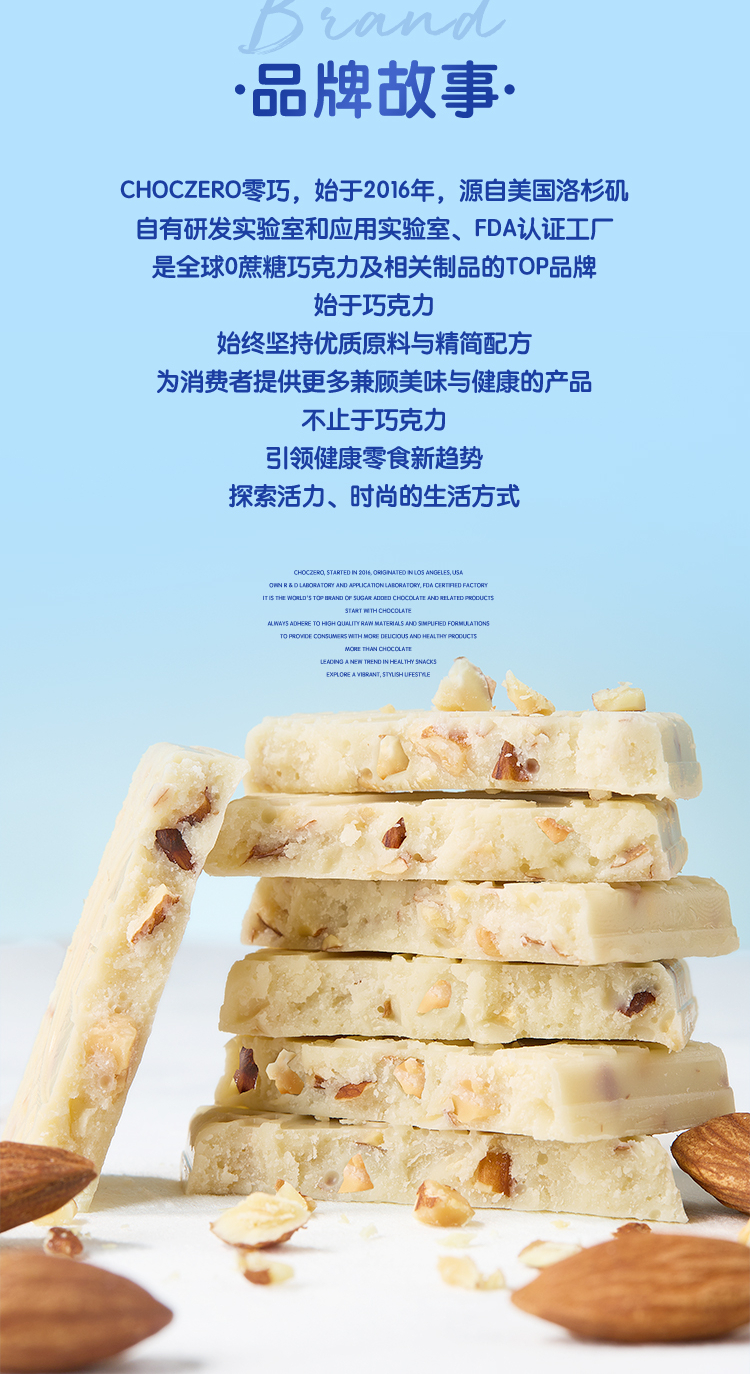 ChocZero 零巧白巧克力巴旦木方块0蔗糖纯可可脂美国进口 90g