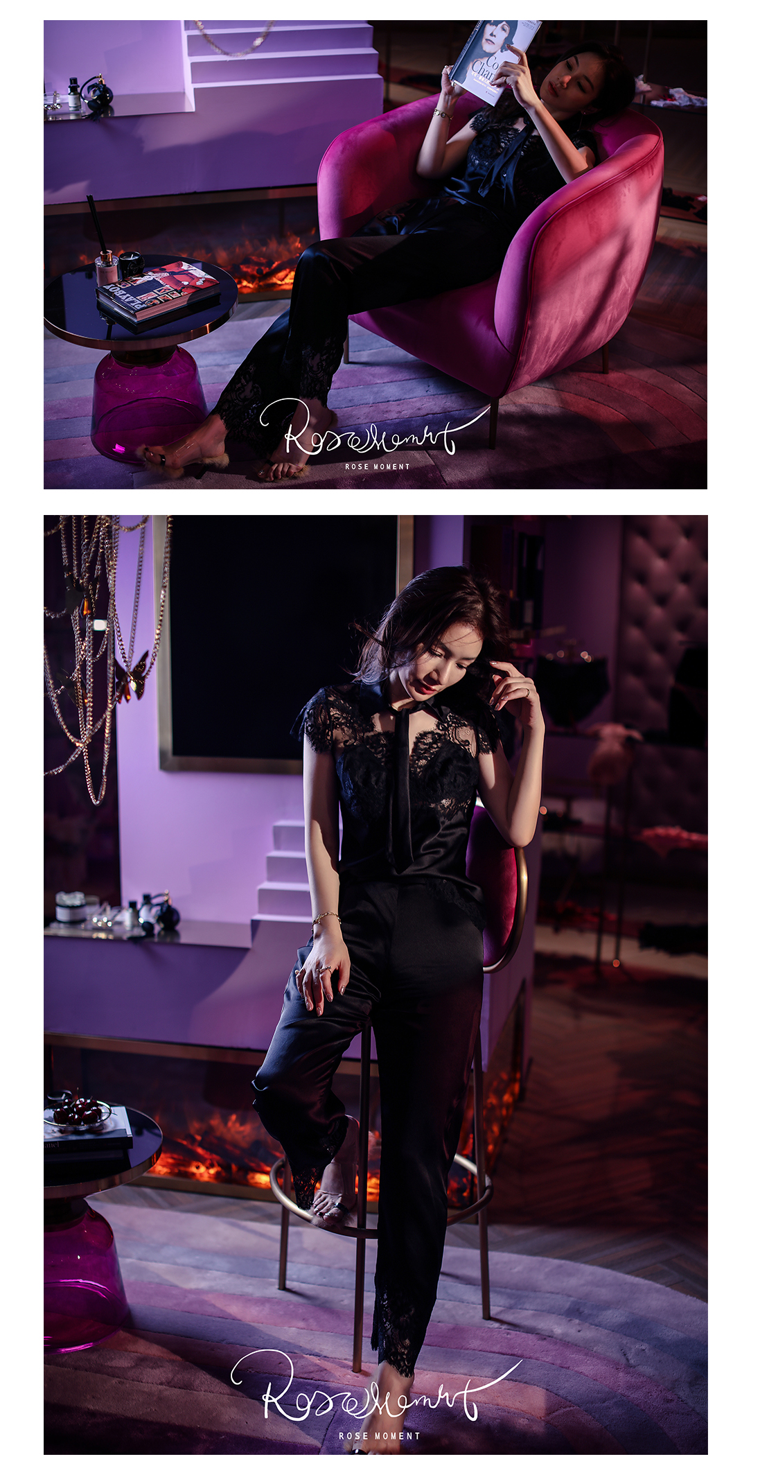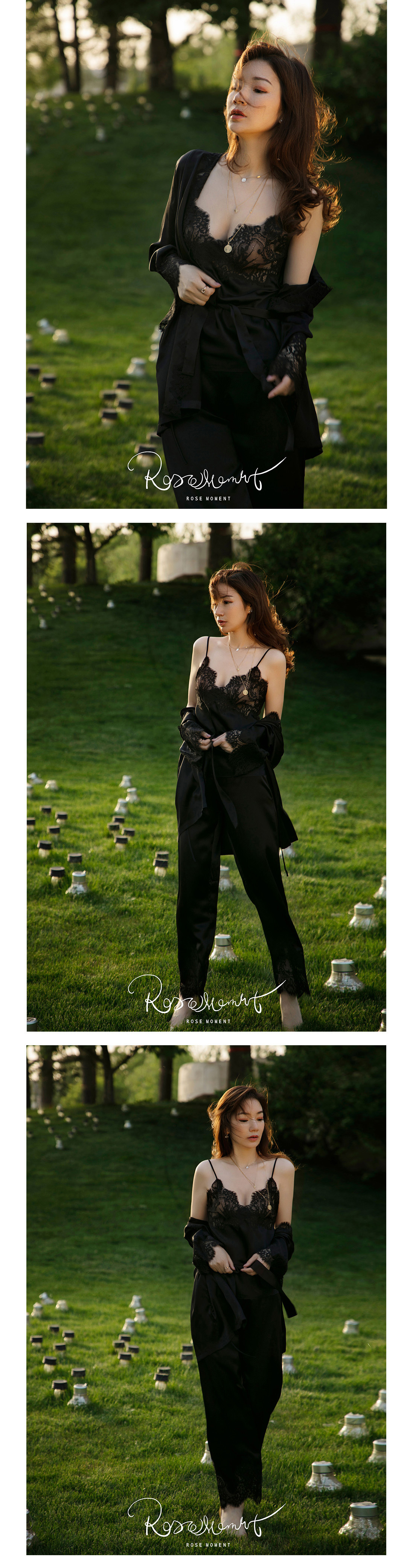 彩色蕾丝露背中款真丝吊裙睡袍 A22102