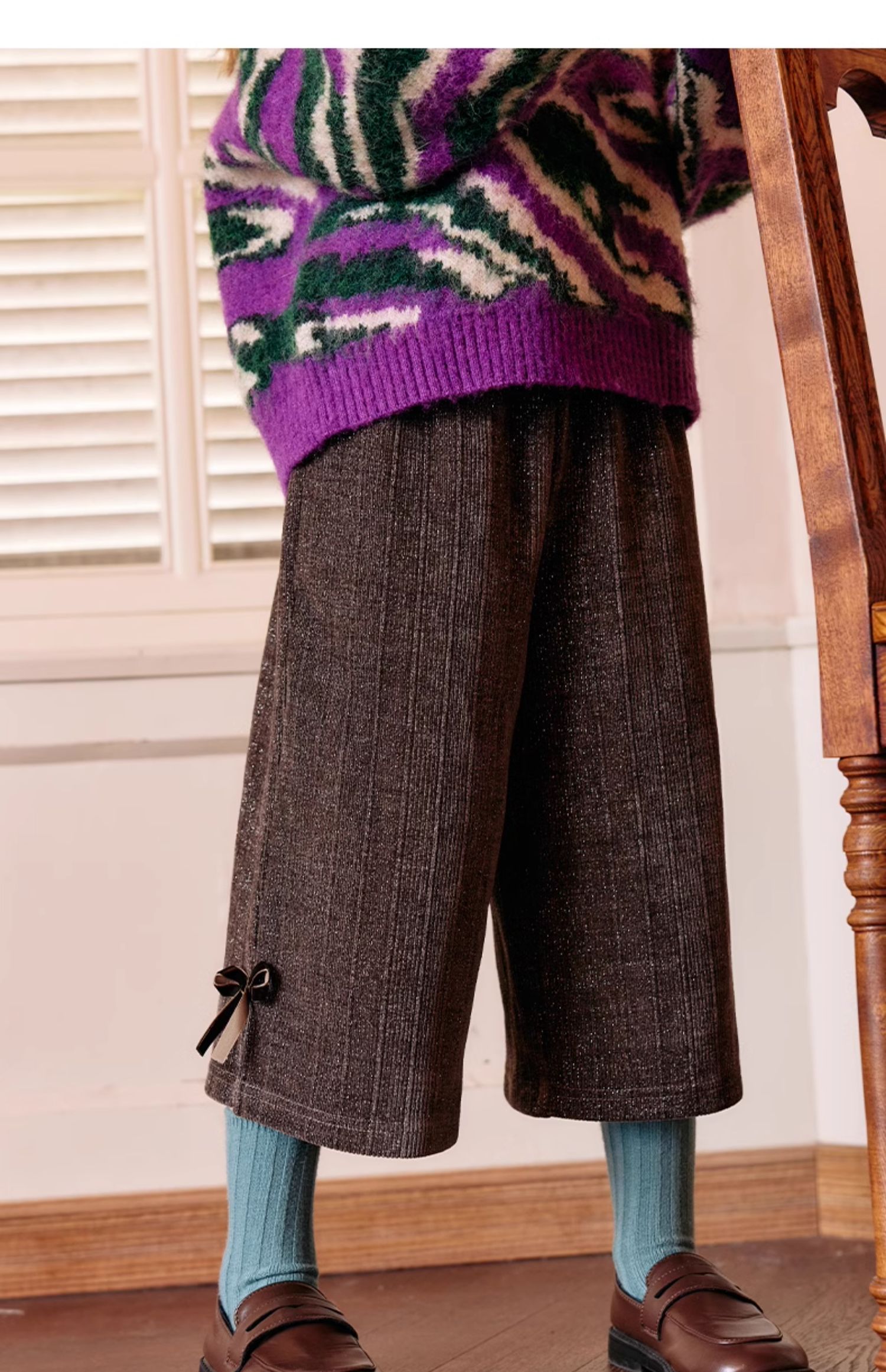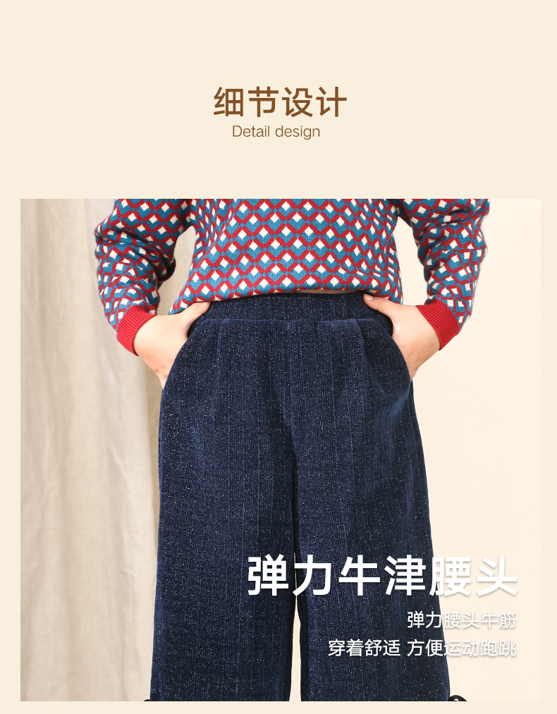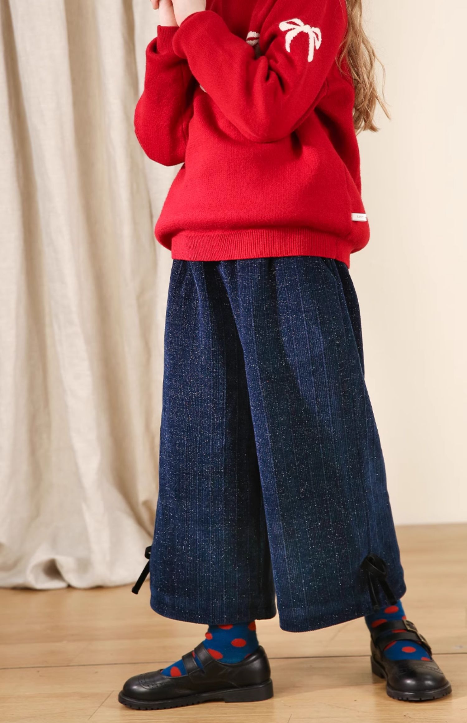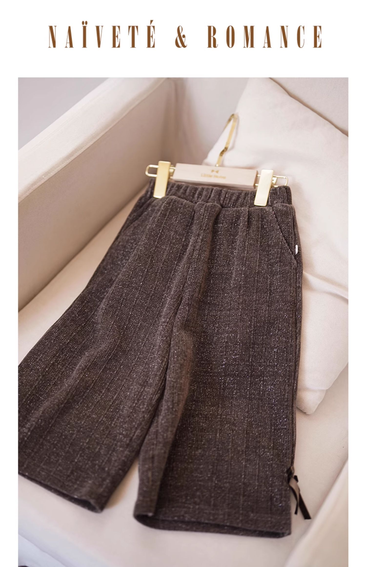 LittleNaive秋冬款女童阔腿裤宽松蝴蝶结七分裤子亮丝儿童休闲裤