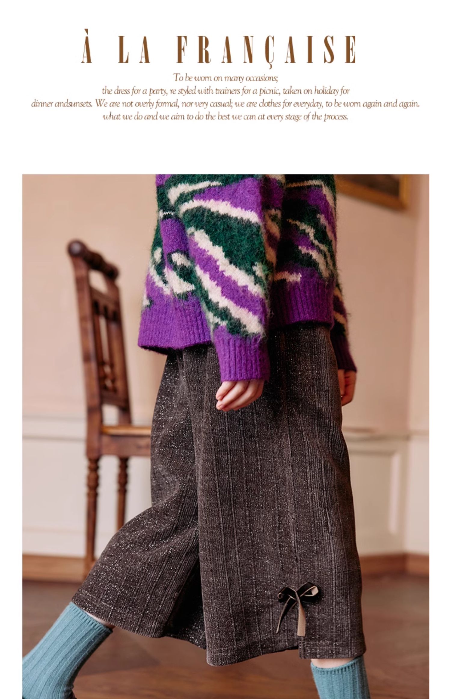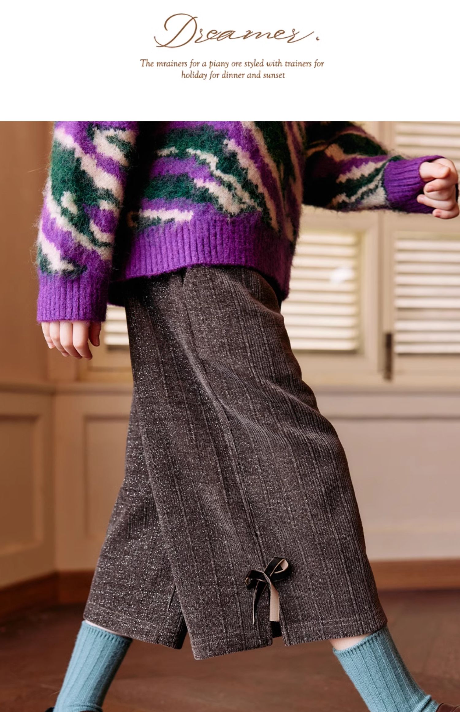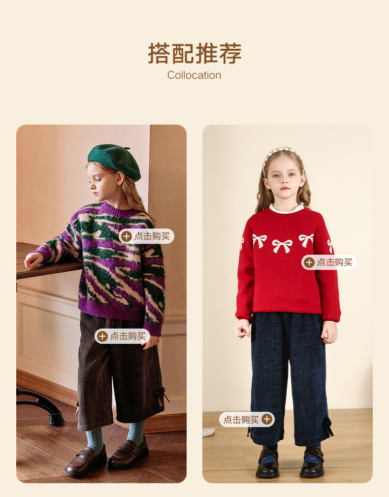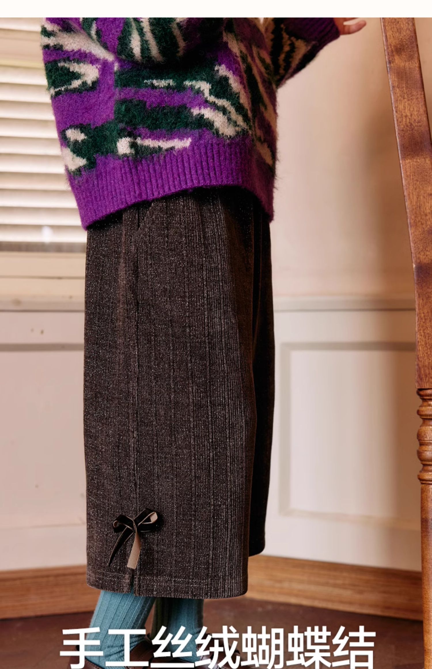 LittleNaive秋冬款女童阔腿裤宽松蝴蝶结七分裤子亮丝儿童休闲裤