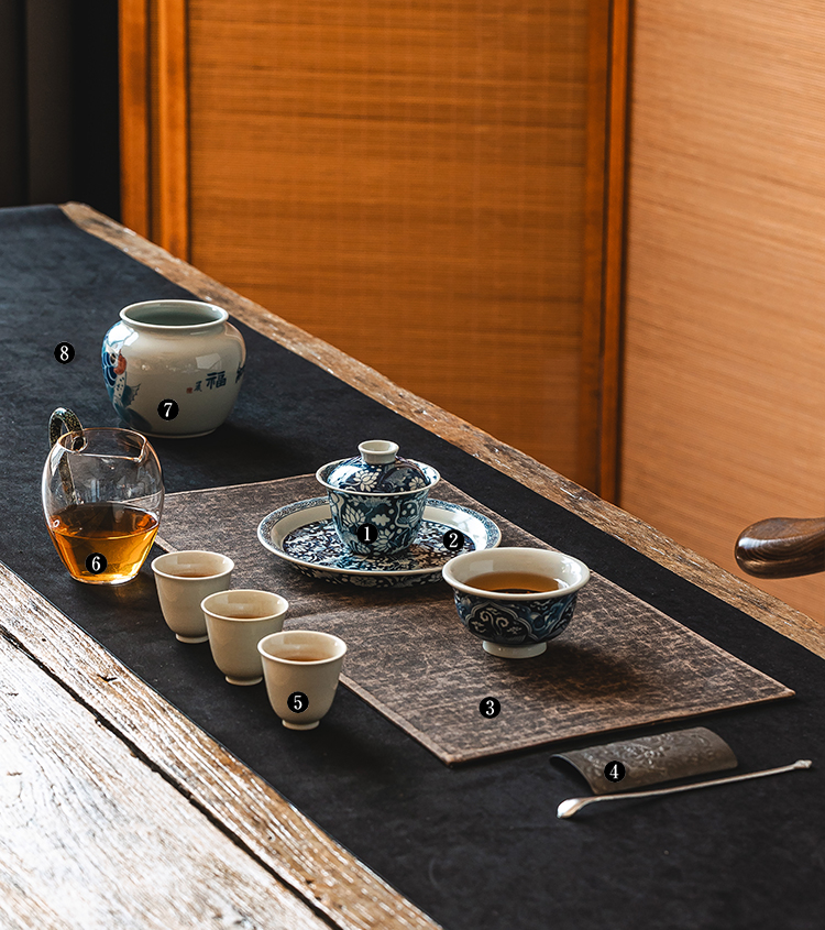 茶香记元古胤造一路连科岩茶卧足盖碗110ml陶瓷茶碗岩茶专用典雅耐看